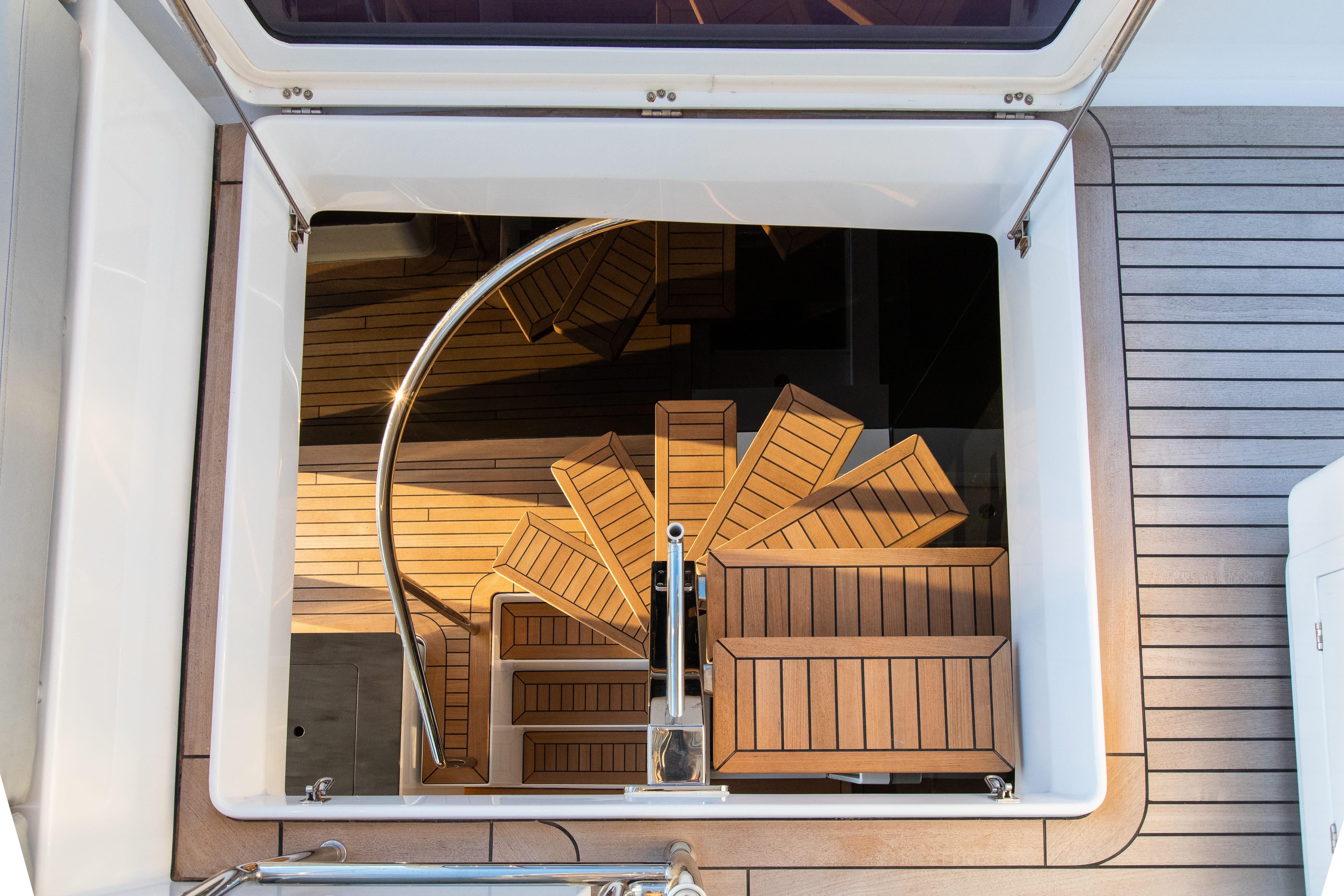 With over 230 square metres of interior and exterior living space, Mr. Si delivers an open, airy atmosphere throughout. Expansive glazing and intelligent layout choices flood the yacht with natural light while maintaining a strong sense of privacy and comfort. Her deck arrangement is particularly generous, featuring a large flybridge, an expansive aft cockpit ideal for dining and socializing, and a well-proportioned foredeck designed for relaxation at anchor or underway.
