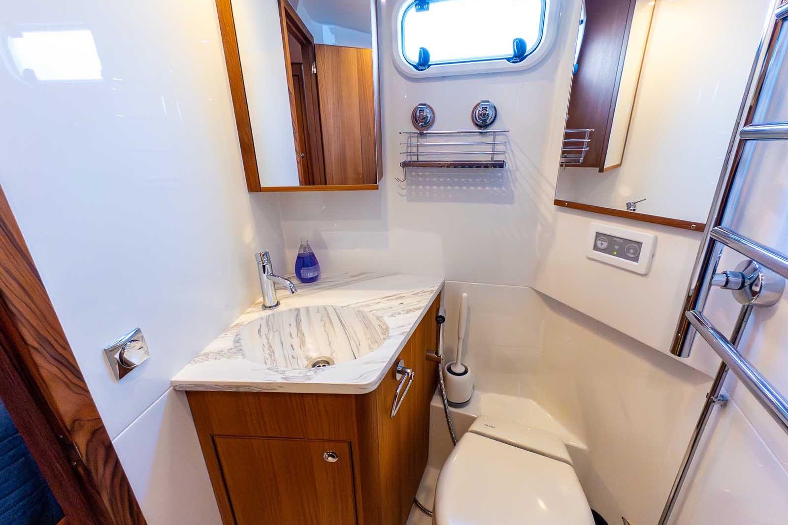 Accommodating two well-appointed cabins and two heads, the interior offers a perfect blend of luxury and functionality. The electric windlass adds convenience for anchoring, making your adventures hassle-free. With a cruising range of 350 miles, this Targa 46 is ready to take you on unforgettable journeys across the water.