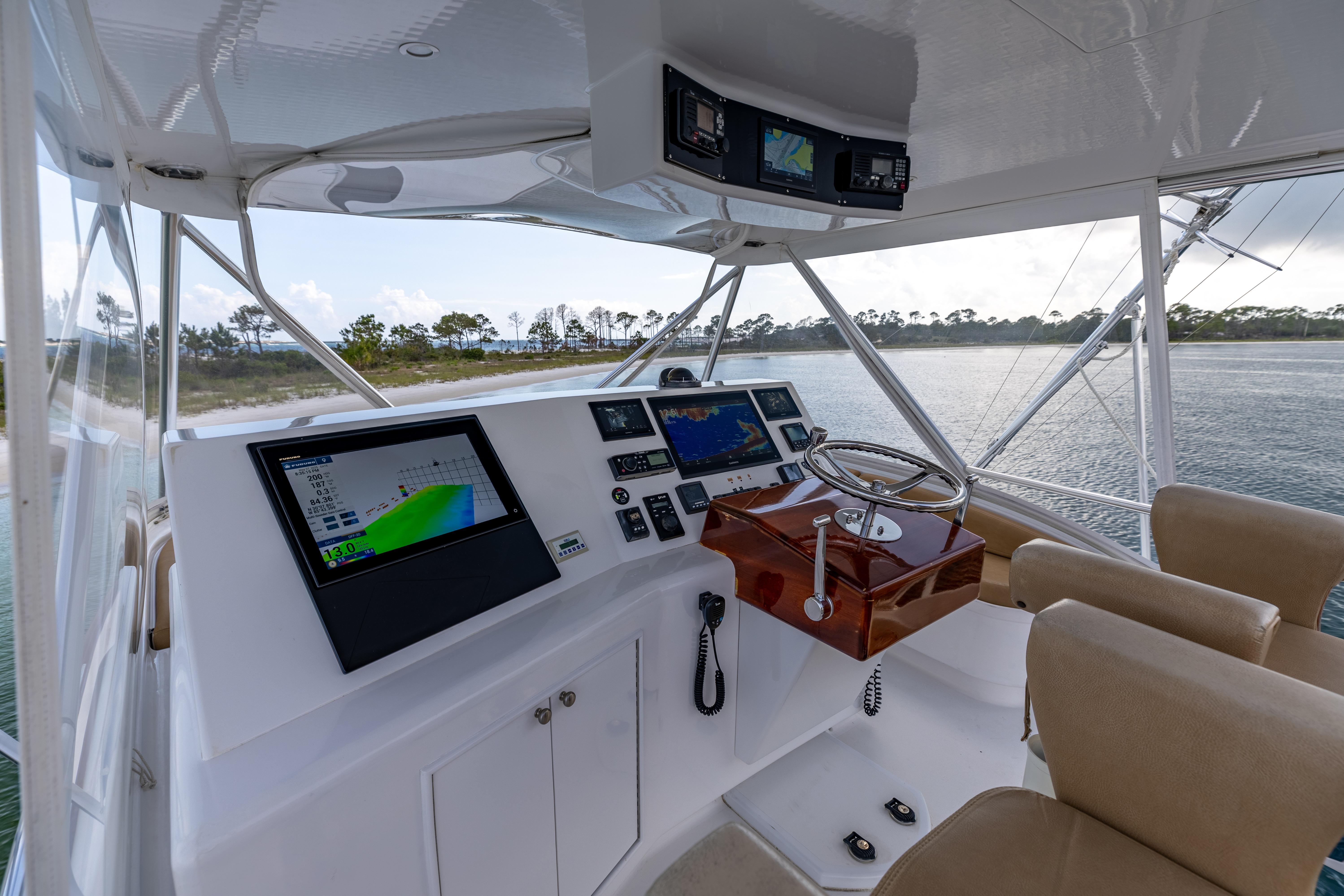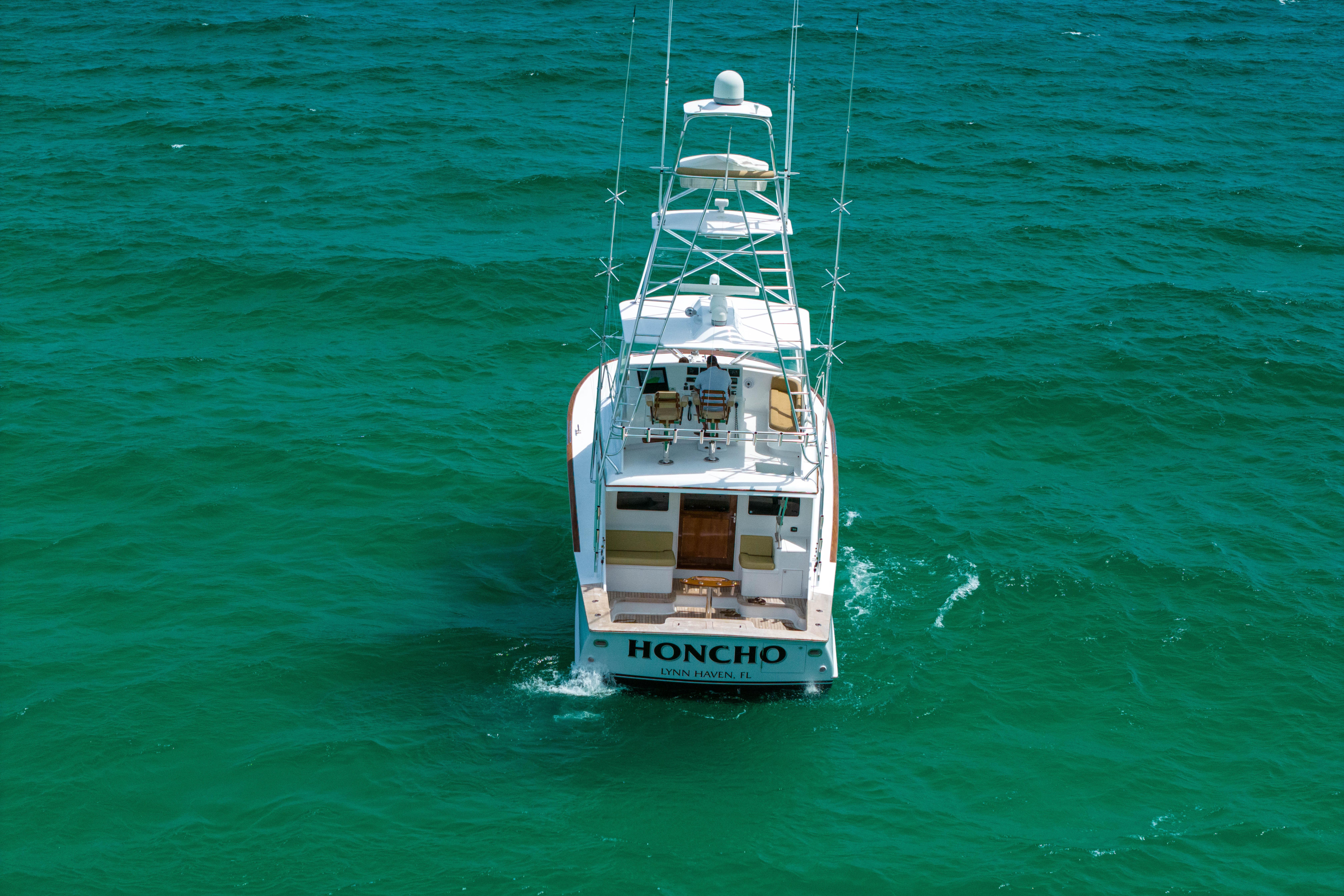 The interior features generous salon seating, an oversized head with separate shower, companionway day bunks, and a forward master stateroom. For a 50’ class boat, Honcho is well-equipped with KVH DirecTV and TracPhone, Eskimo ice maker, watermaker, and fully redundant electronics, making her ideal for tournament fishing or extended cruising.