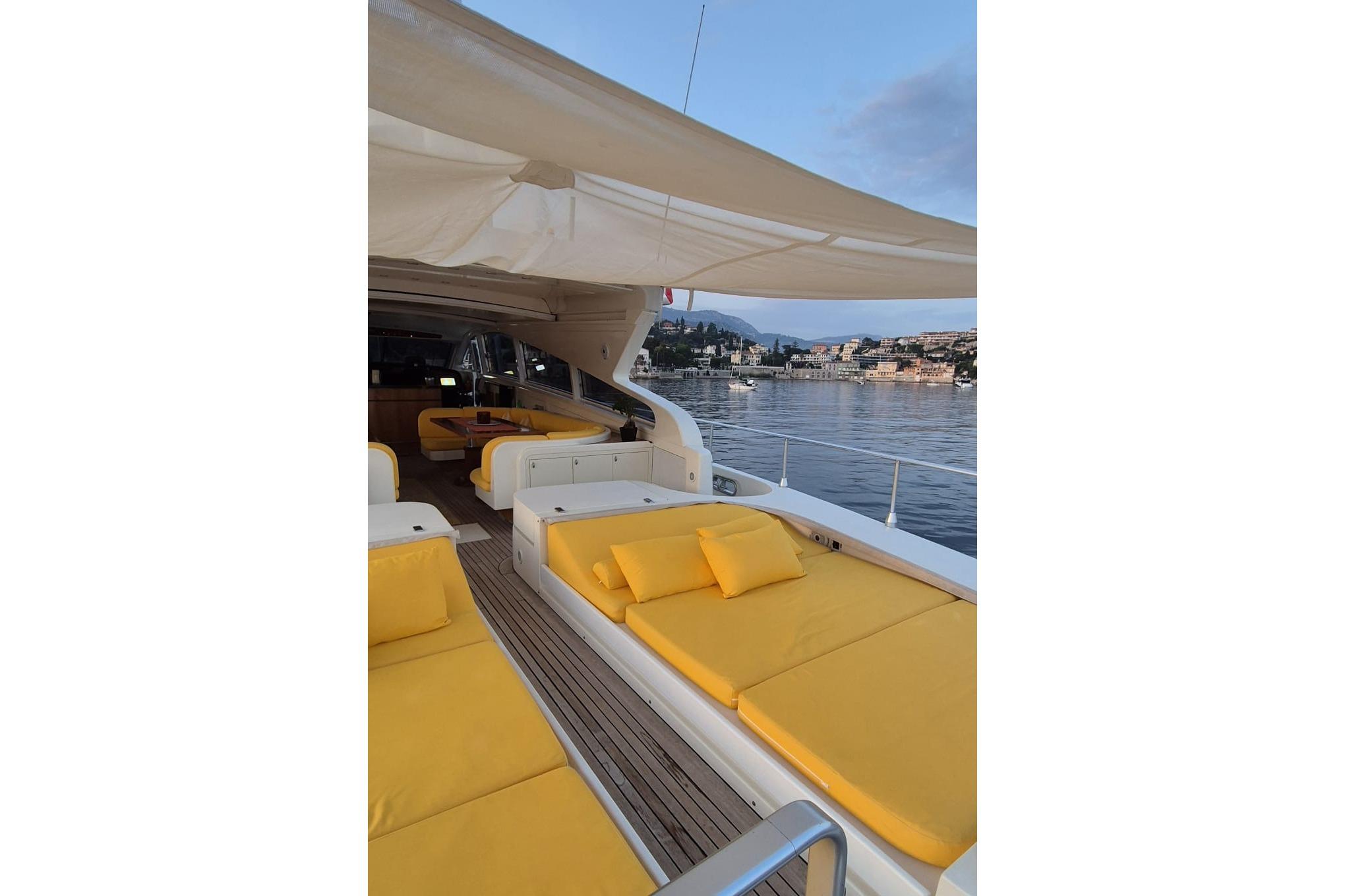 The yacht boasts spacious and well-designed exterior areas, a cozy interior with a classic feel, and the reliability of expert Italian craftsmanship.