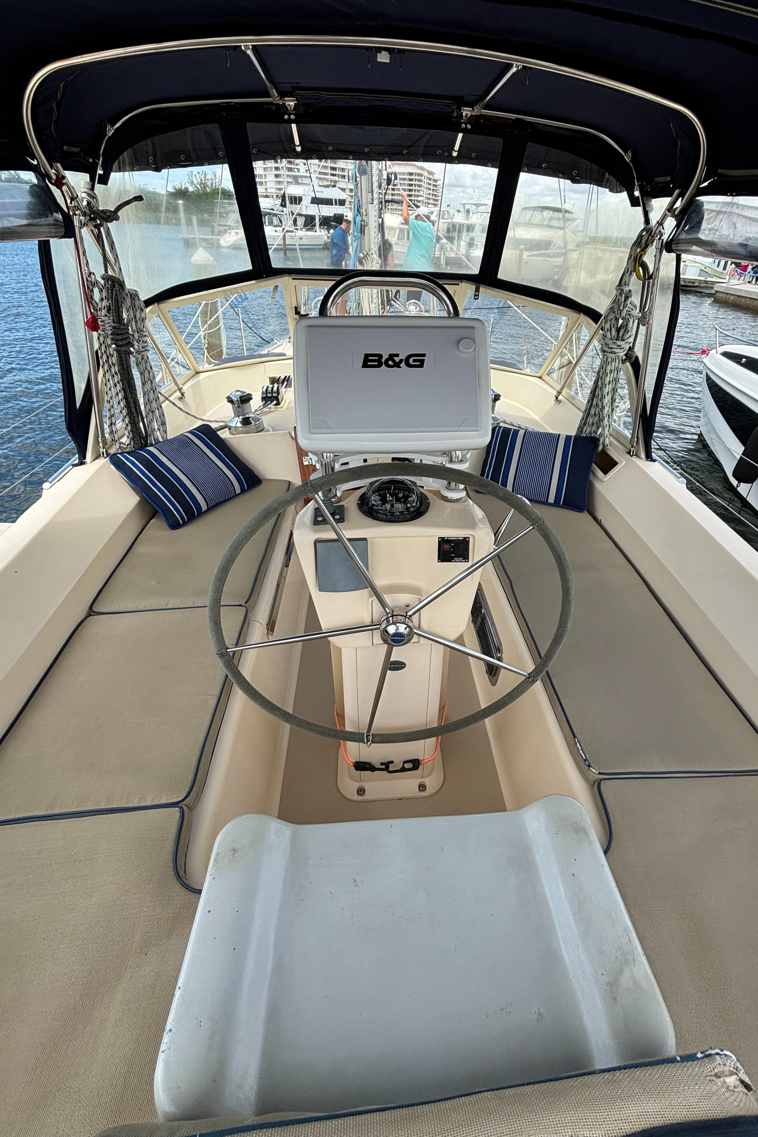 All sail control lines lead aft to cockpit