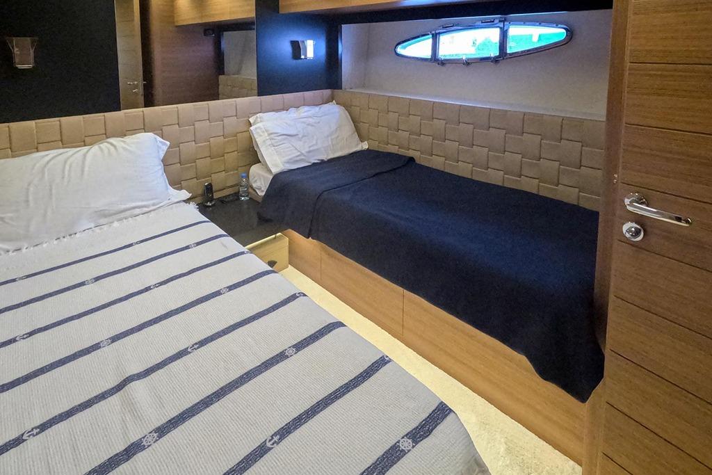 She accommodates four guest cabins, offering both comfort and performance, delivering exceptional enjoyment whether cruising at high speed or relaxing at anchor.
