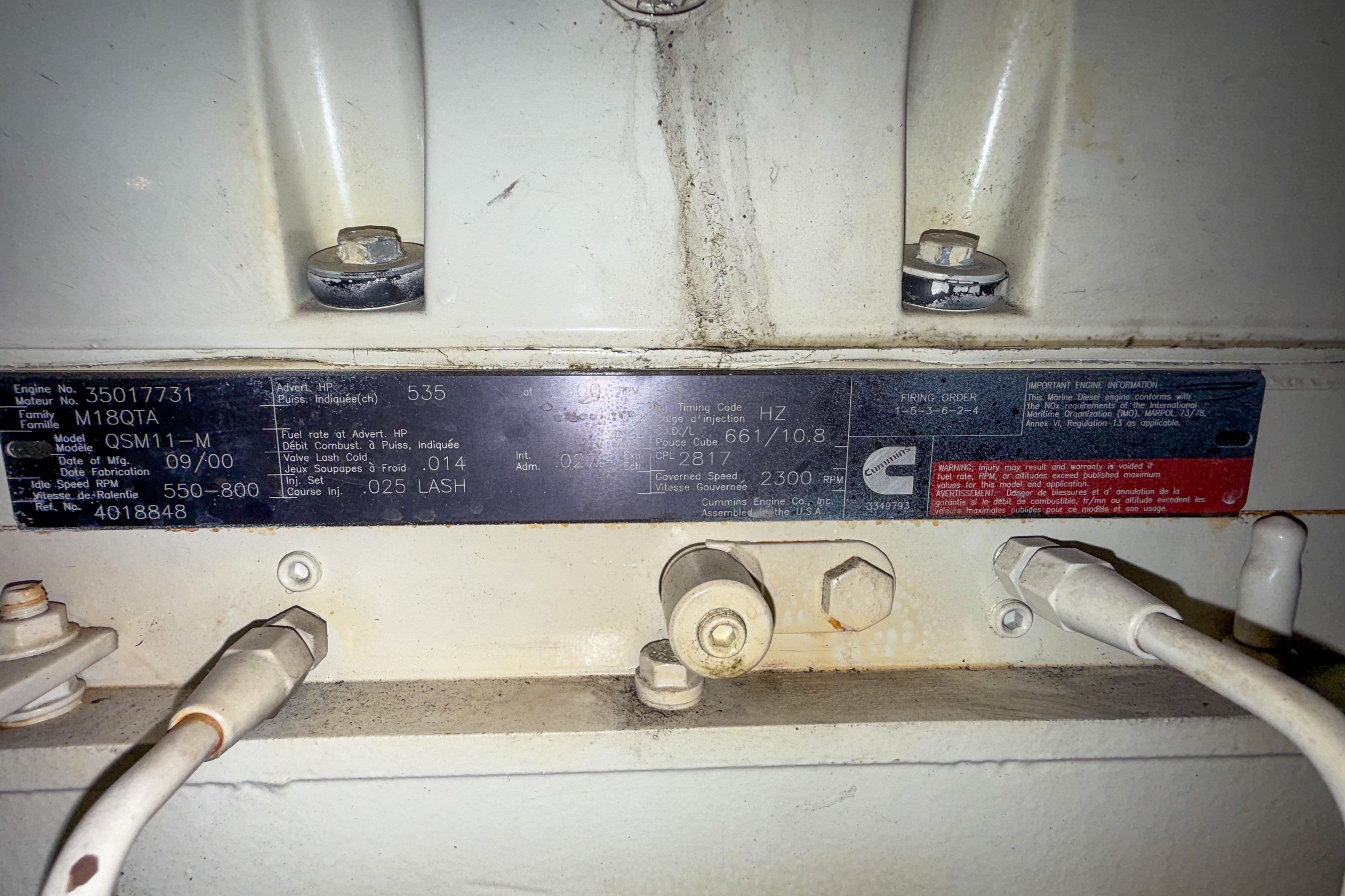 Introducing the 2001 Carver 570 Voyager Pilothouse, a stunning motor yacht that combines elegance with performance. With an impressive overall length of 59.17 feet, this vessel boasts a semi-displacement fiberglass hull, ensuring a smooth and stable ride on the water. Powered by twin Cummins QSM-11 inboard engines, each delivering 535 horsepower, this yacht is designed for both power and efficiency, with a direct drive system that enhances maneuverability. With only 1800 hours of use, these engines are ready for new adventures. The interior features two heads, providing convenience for guests and crew alike. This yacht is perfect for entertaining or relaxing, with ample space to enjoy the open water. The Carver 570 Voyager Pilothouse is not just a boat; it's a gateway to unforgettable experiences on the sea.
