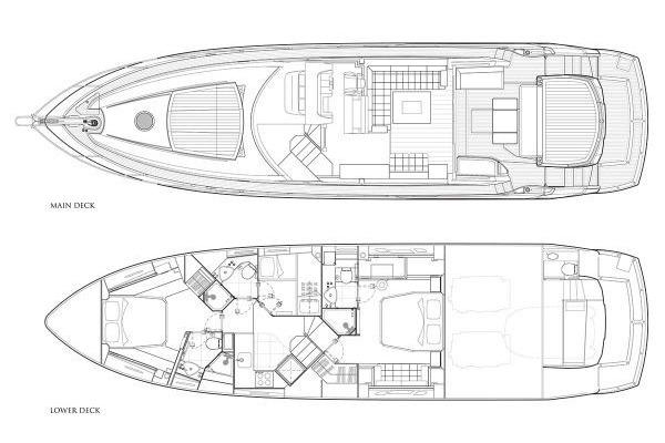 - Full‑beam master stateroom aft with en‑suite
