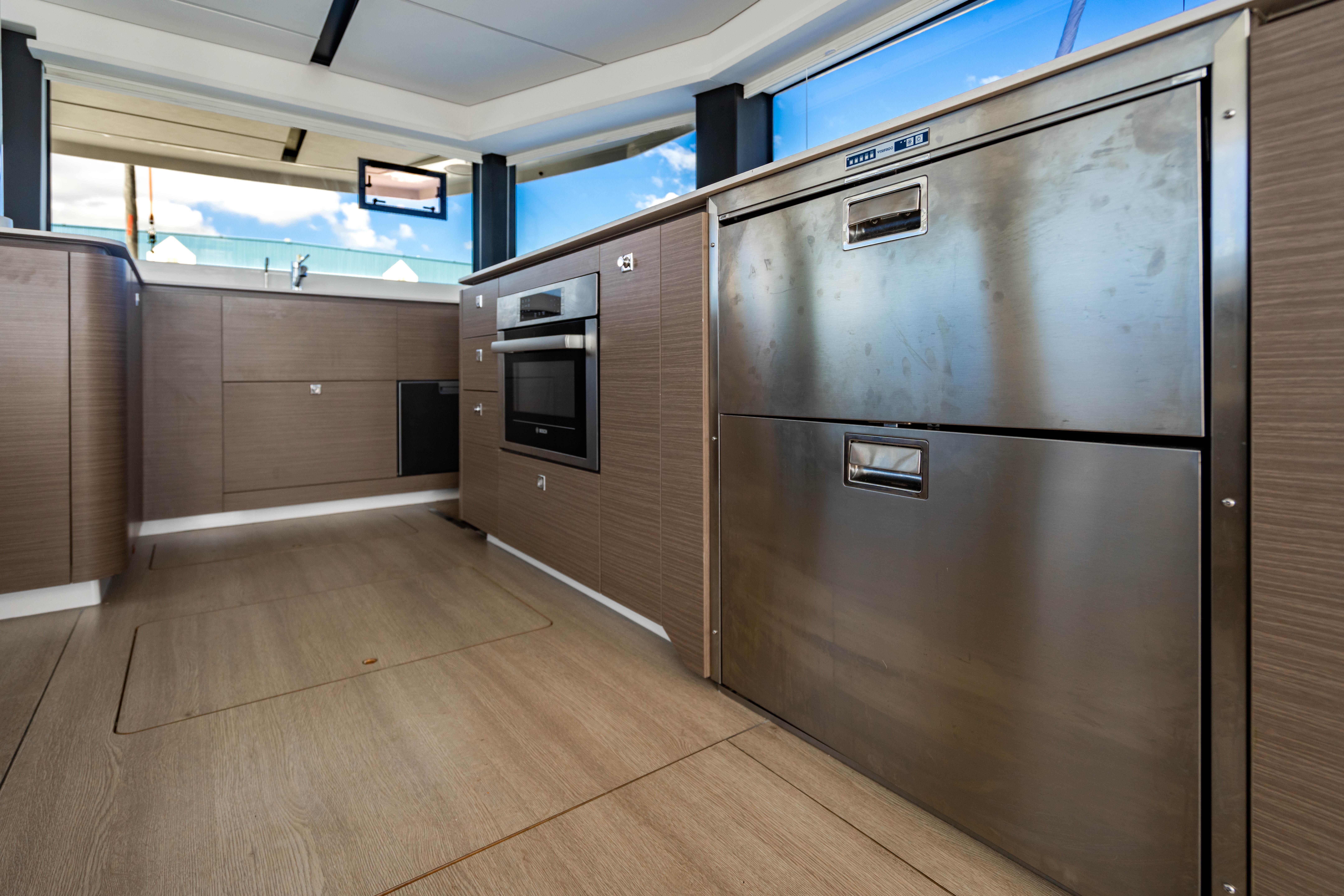 While retaining the core elements that made the Leopard 45 so popular, the Leopard 46 introduces numerous innovations to enhance comfort, convenience, and sustainability. The layout has been refined to provide a seamless integration between the aft cockpit and saloon, allowing for flexible living spaces. The elimination of the skipper cabin has made way for more spacious accommodations, including a choice of three cabins plus a utility room, a four cabin layout, or five double cabins, all with ensuite head/showers.