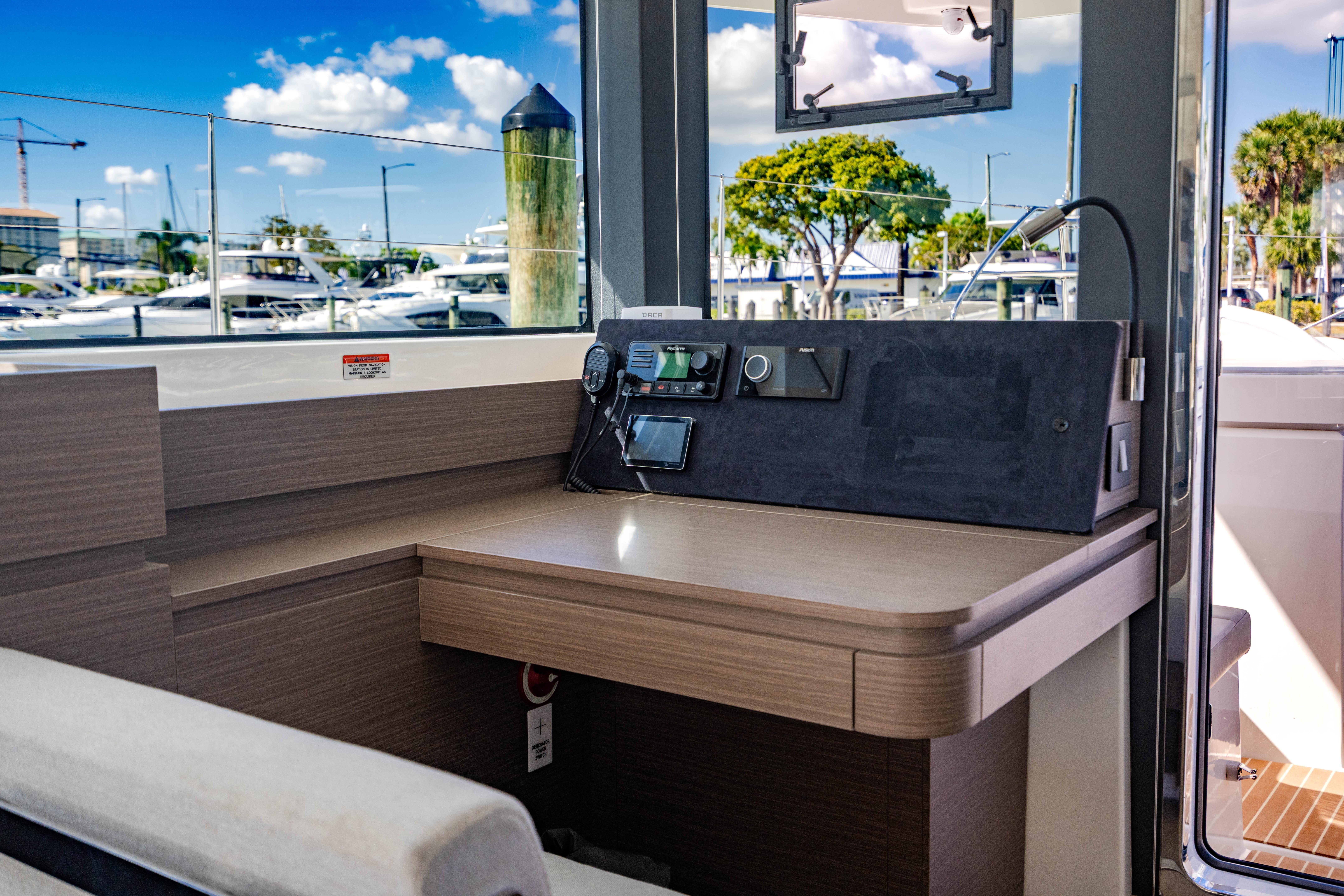 - Raymarine Base Pack: Includes Ray 73 VHF (Multizone with AIS receiver) at Nav desk & additional VHF handset at helm, p70s autopilot display and AXIOM12 Multifunction display in lieu of AXIOM7 Multifunction display at Helm station. With retractable depth & speed, plus wind transducers