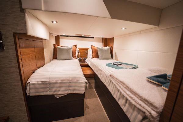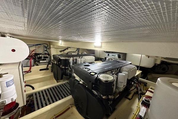 She’s had over $100,000 in upgrades including teak deck hydraulic swim platform, aft deck retractable sunshade, transom grill, aft deck refrigerator, satellite TV, 3000 watt inverter with independent battery bank and new custom plush mattresses in master and guest.