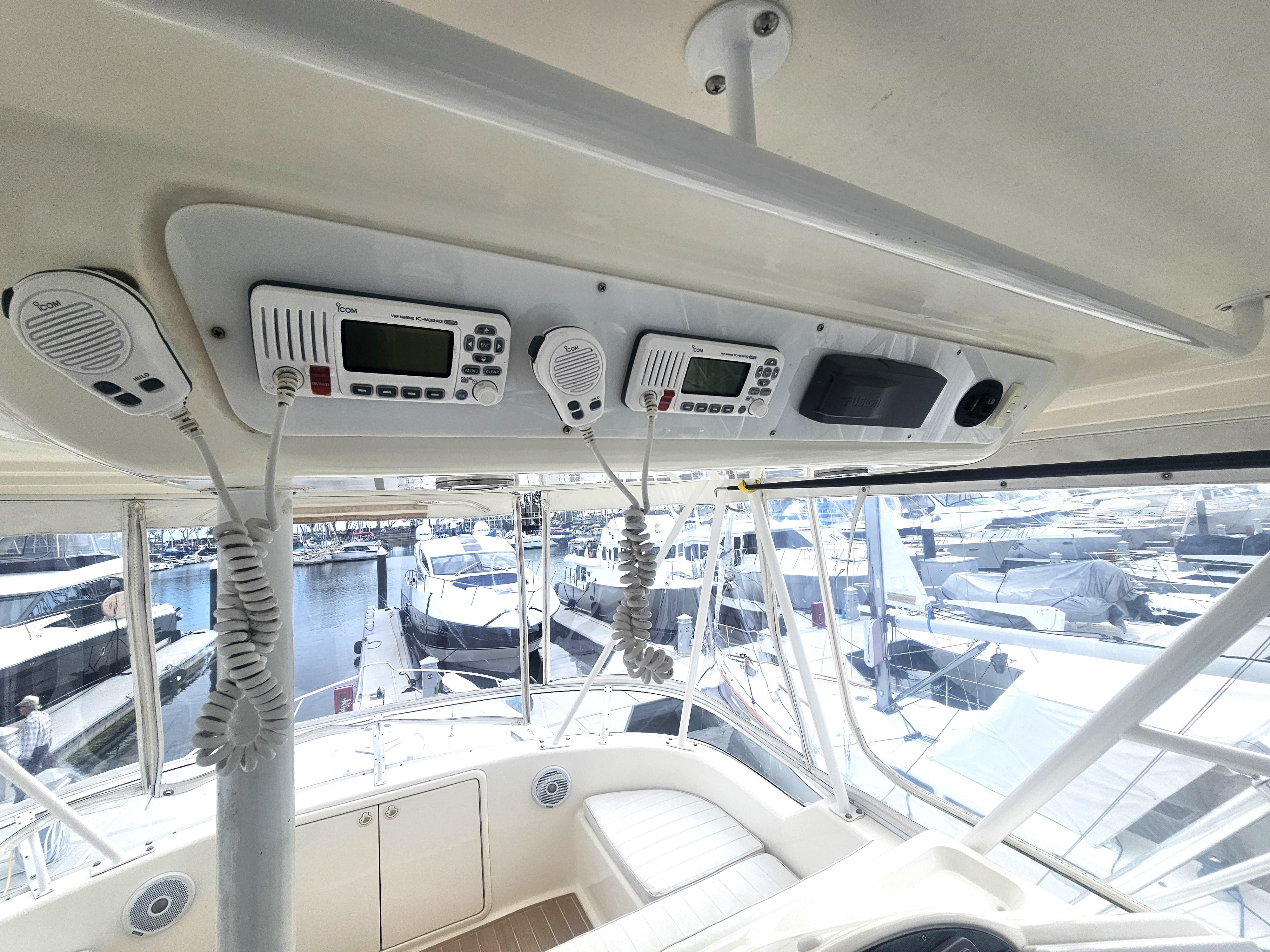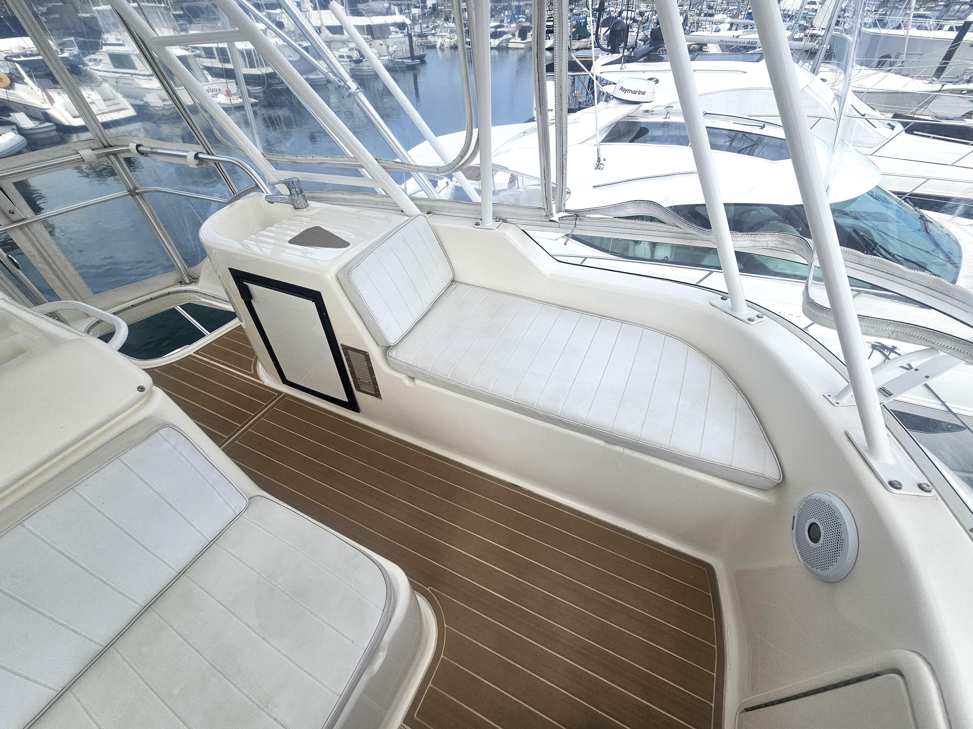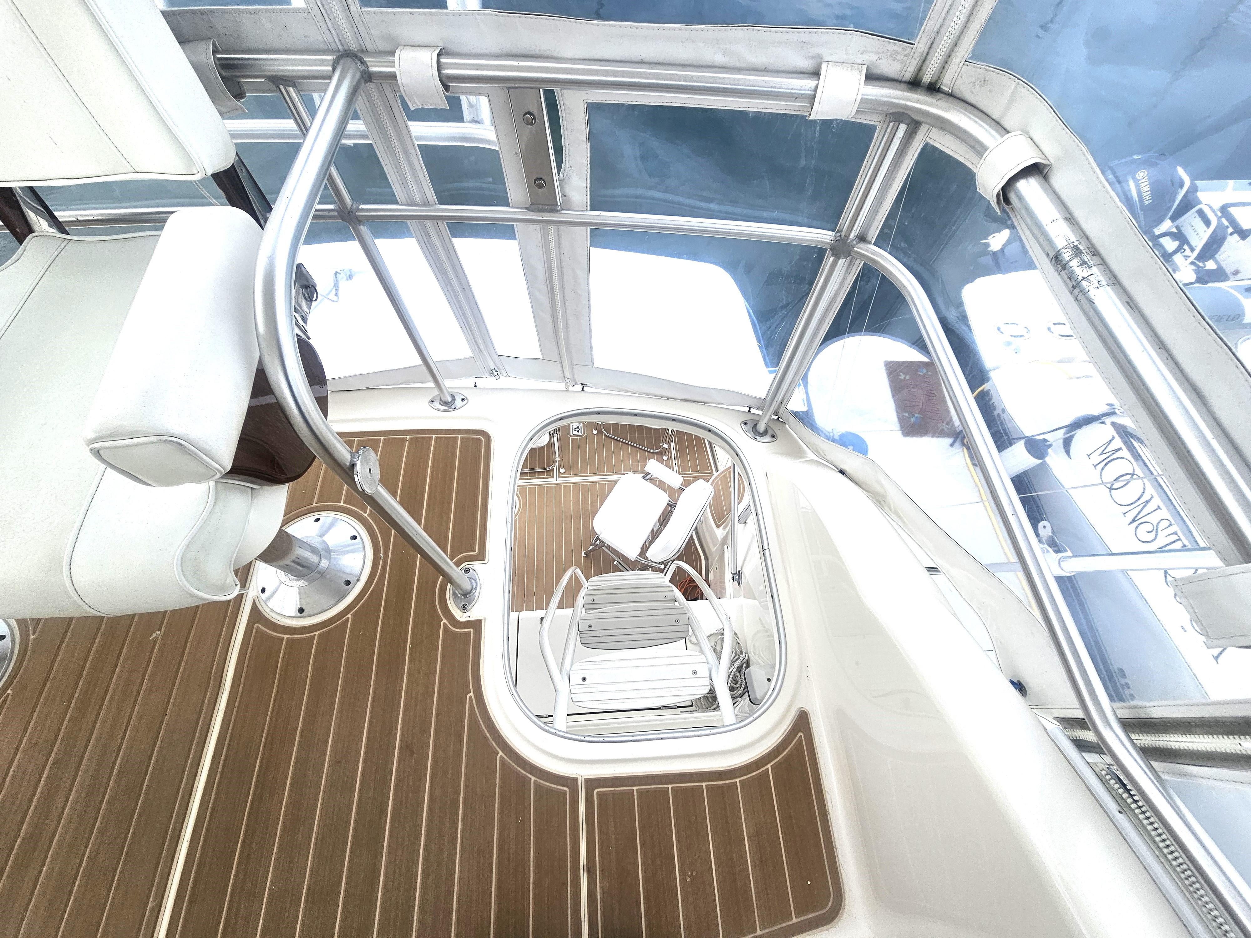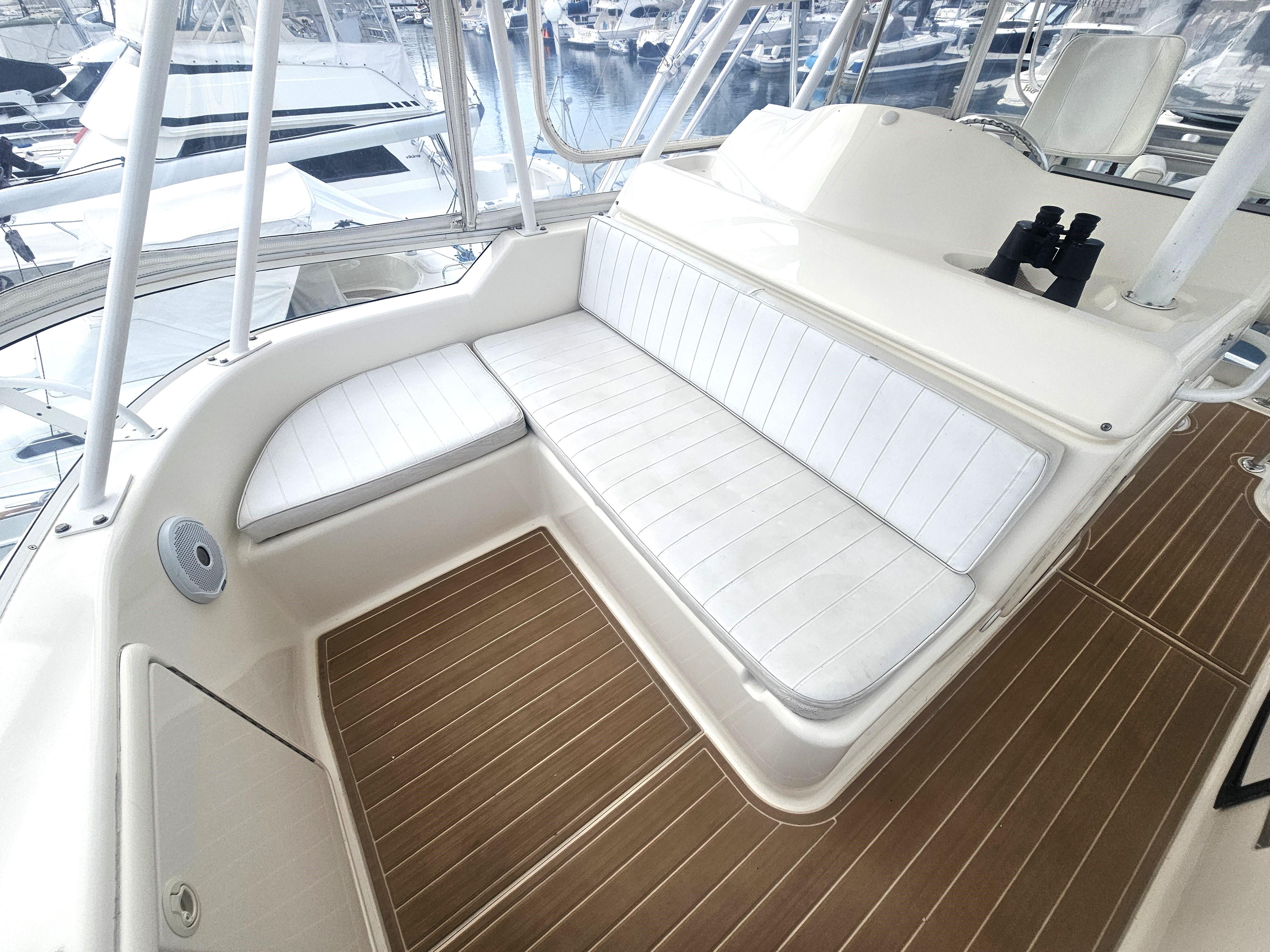 Spacious Flybridge – Fully enclosed helm with great visibility, seating for guests, and upgraded electronics.