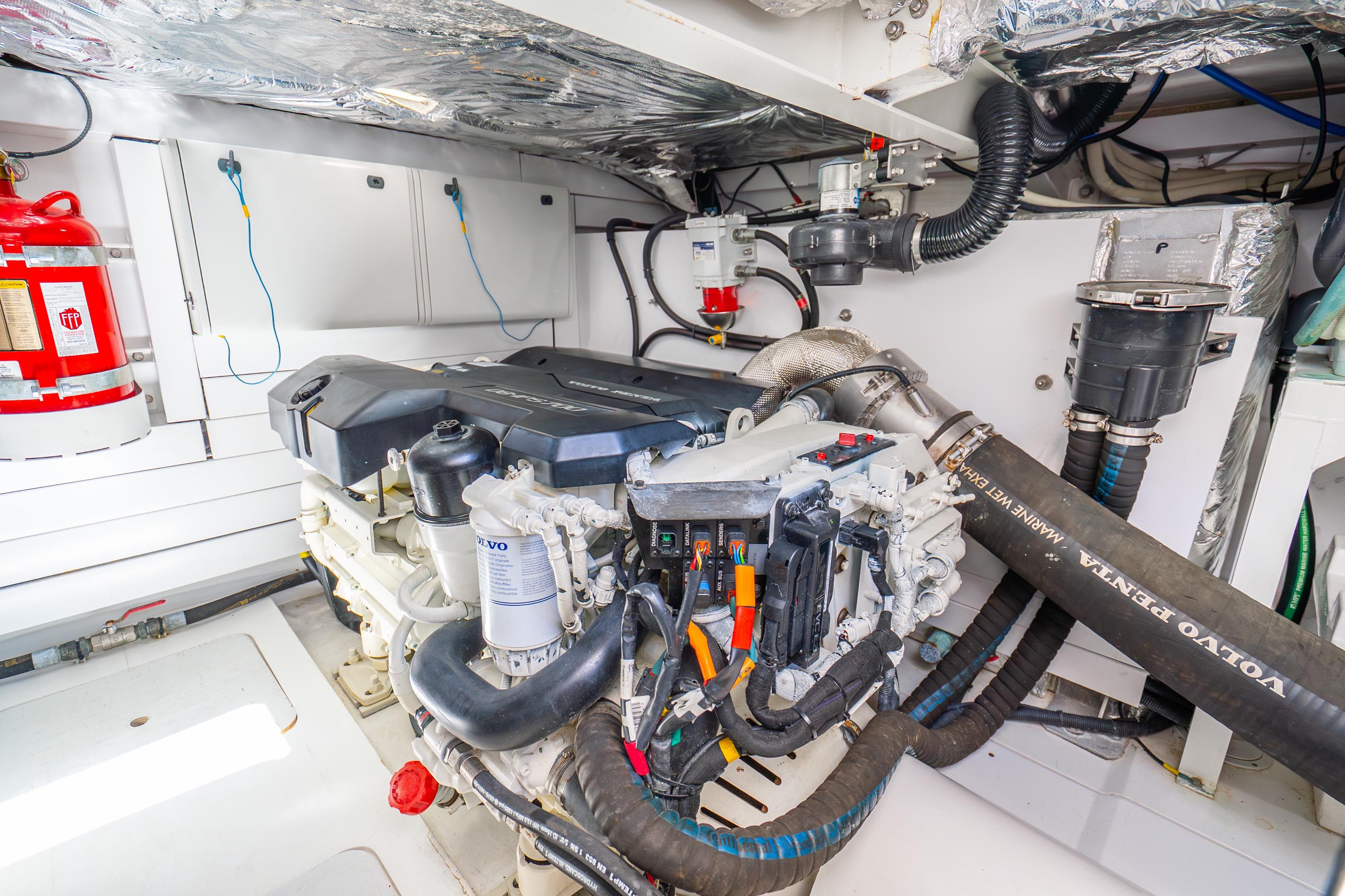 - Automatic/manual override fire extinguishers in engine room with warning system at both helm positions