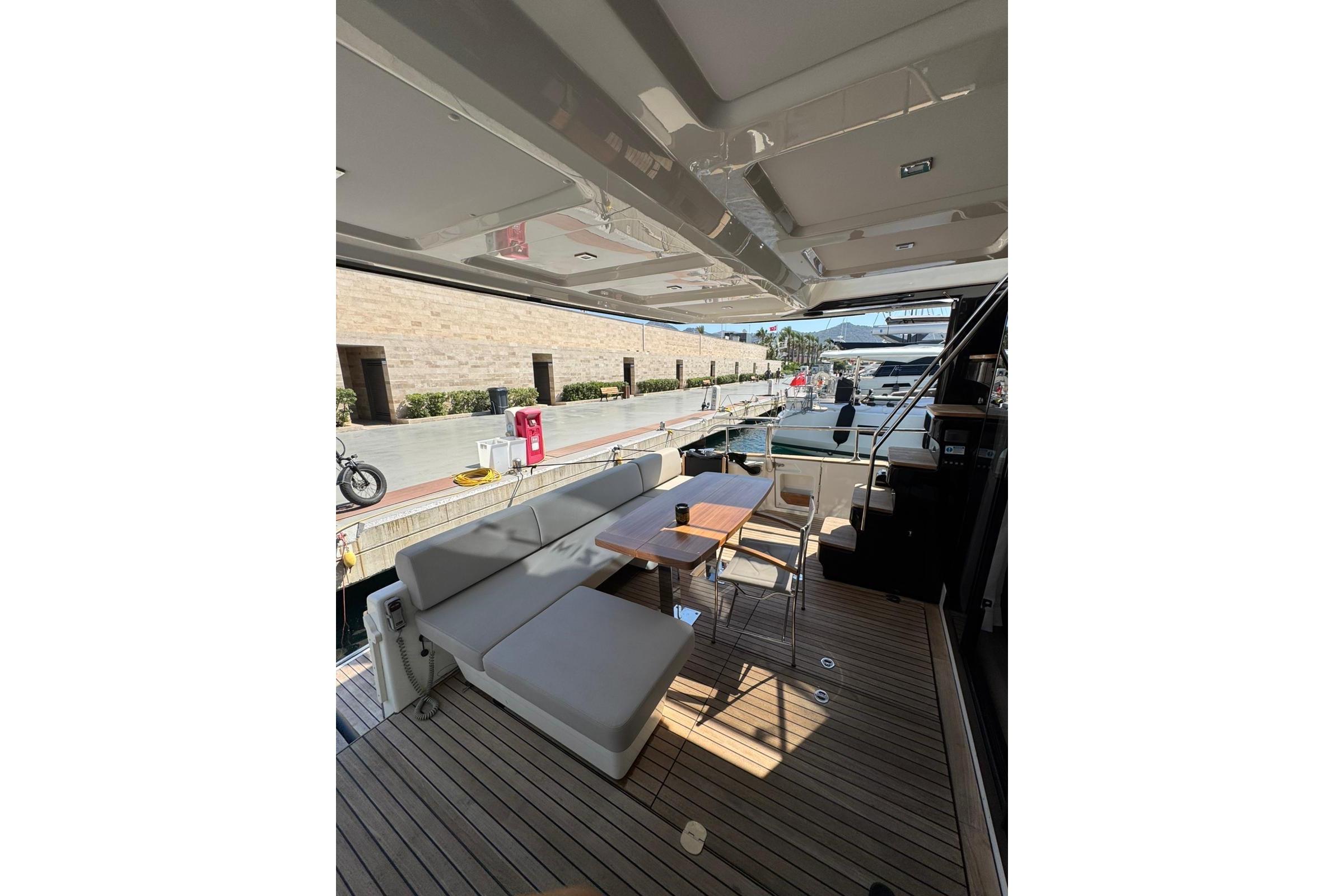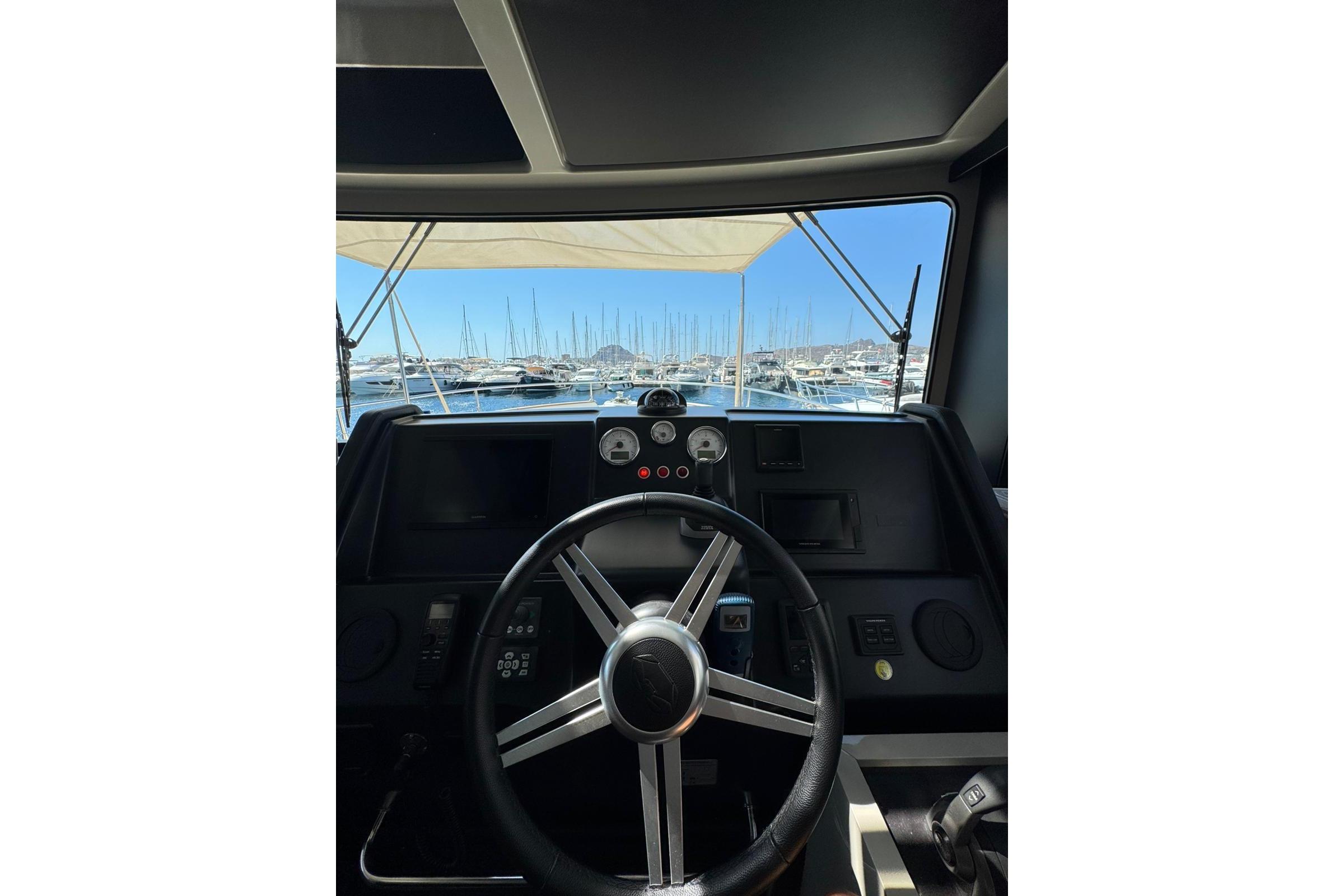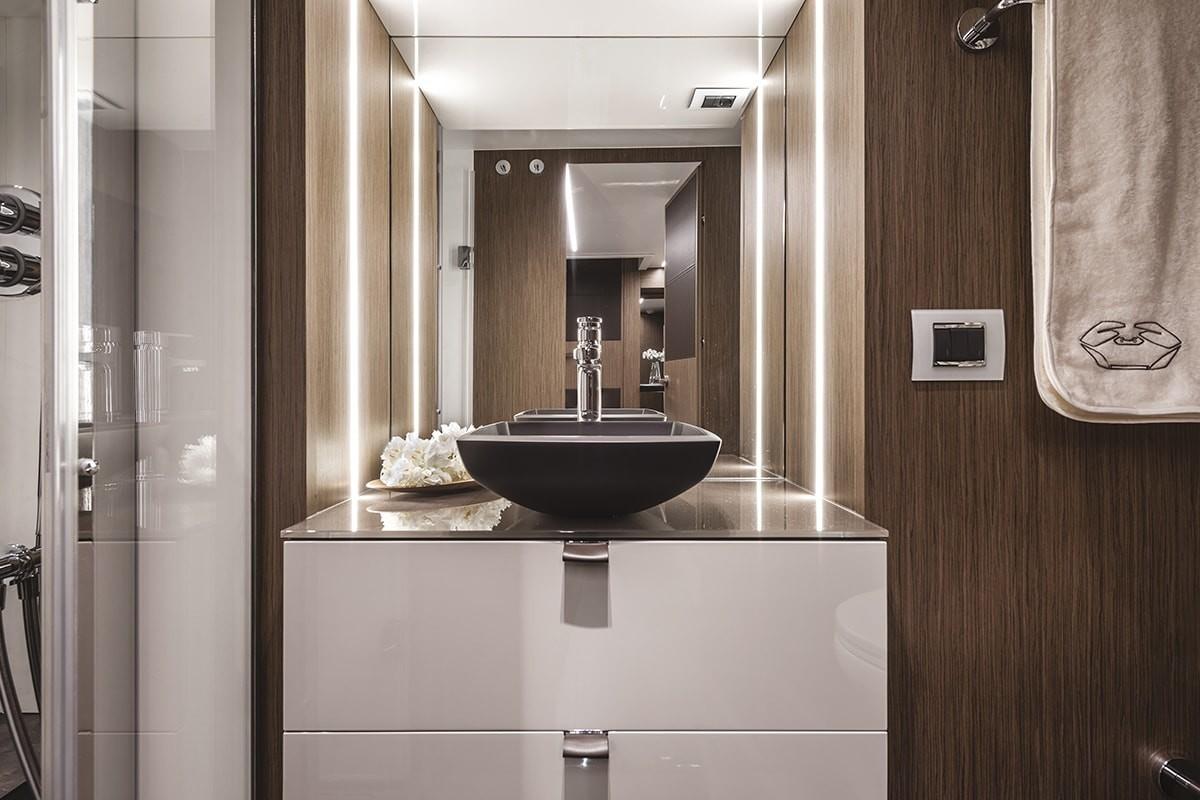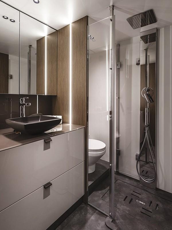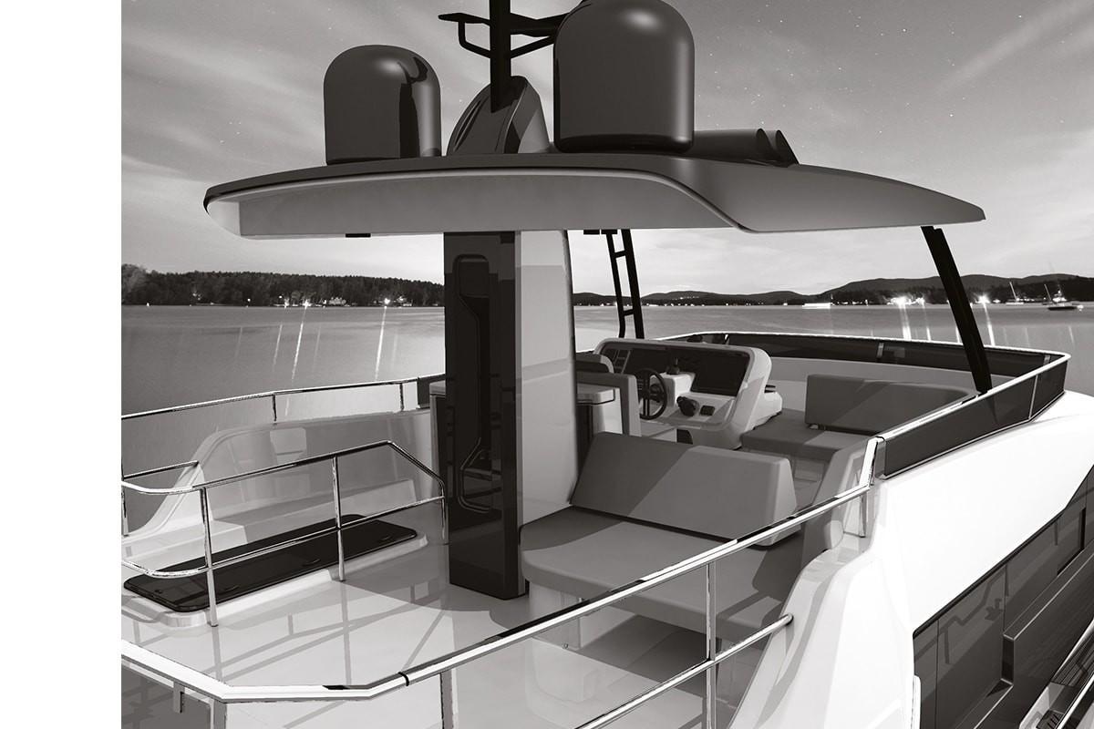 The T-TOP, a concentrate of well-designed and technological materials, offers shade and shelter. Composed of a mix of fibre glass and carbon fibres, the convertible roof cover means you can enjoy shade and shelter whenever you need and it also includes a removable awning to shade the bow lounge area. The column is also equipped with compartments and lockers which are useful for general life on board and it also leaves space for an extremely functional shower.