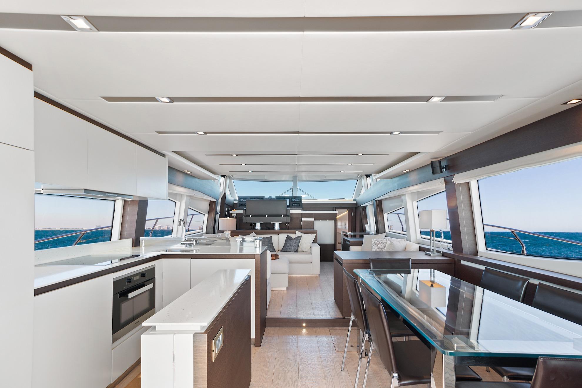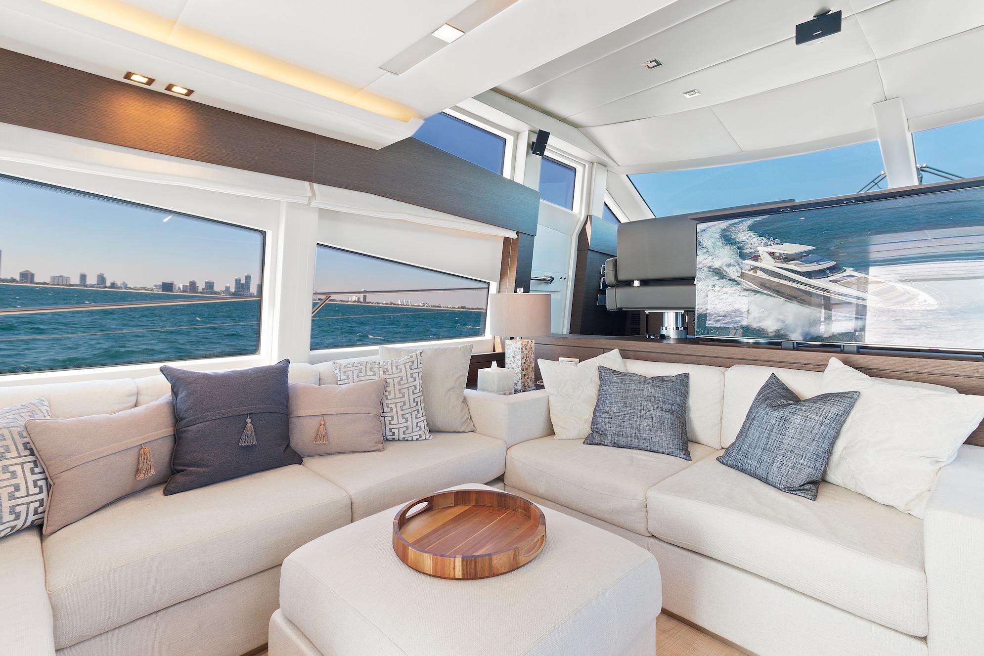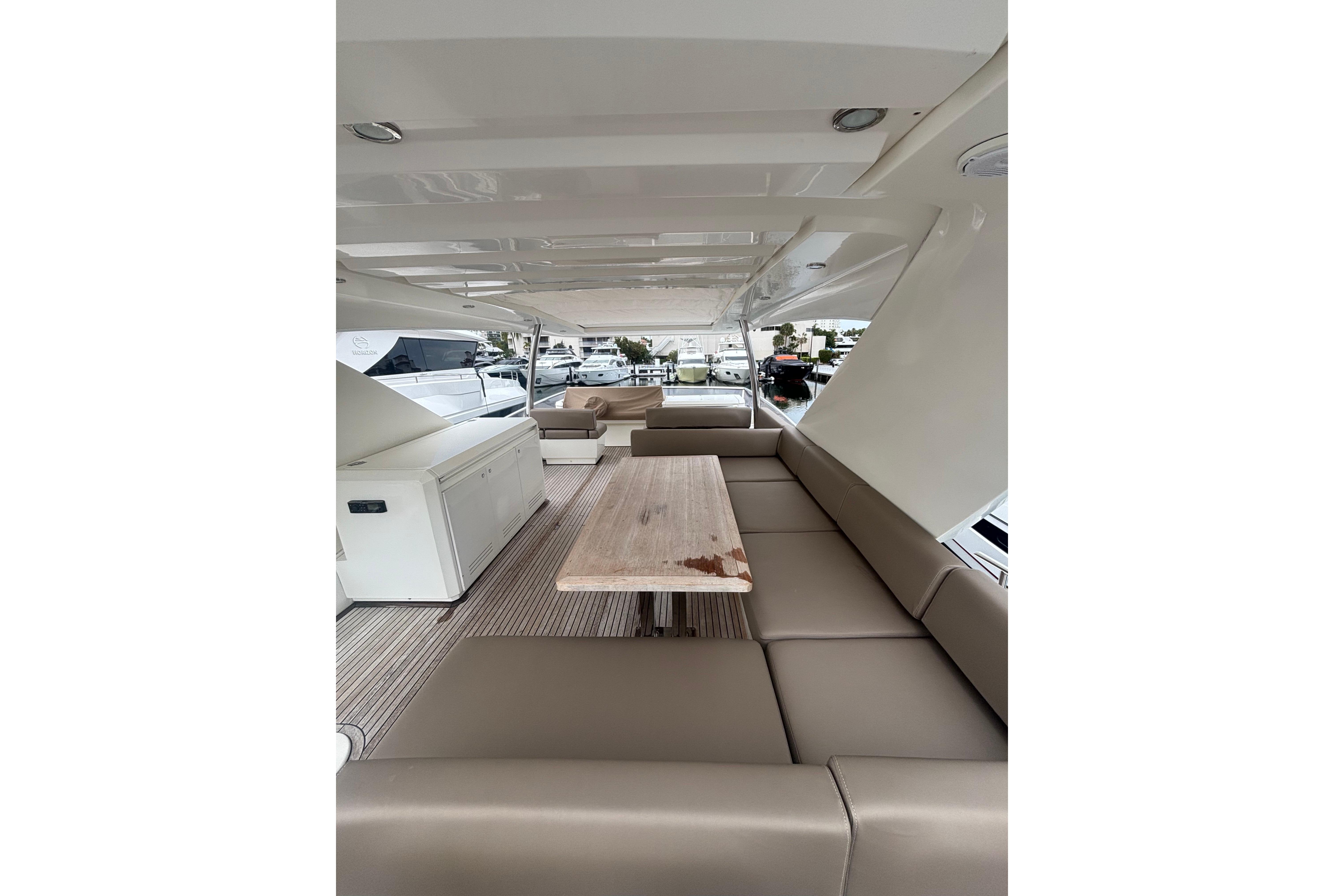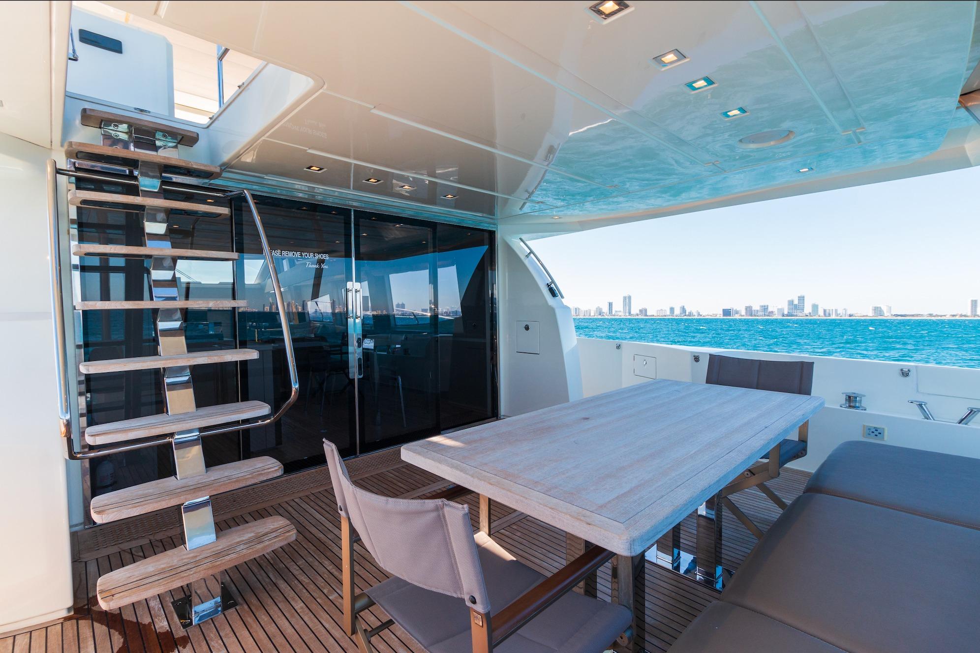 Entertain your friends, family or charter guests in style with a true entertainers vessel. The massive hard top covered flybridge with bbq grill and wet bar will be hard to resist. Sit in the aft cockpit for a nice outdoor meal. Enjoy the sun on a massive bow sun pad, which also has a built in couch for those who wish to sit instead of lay. Ready to cool off in the water? Make your way onto the large hydraulic swim platform and with the press of a button you can deploy the jetski and hit the water running! At the end of the day, you can retreat into one of the 4 large staterooms, including the massing ON DECK master which is rarely ever seen on a vessel of this size.
