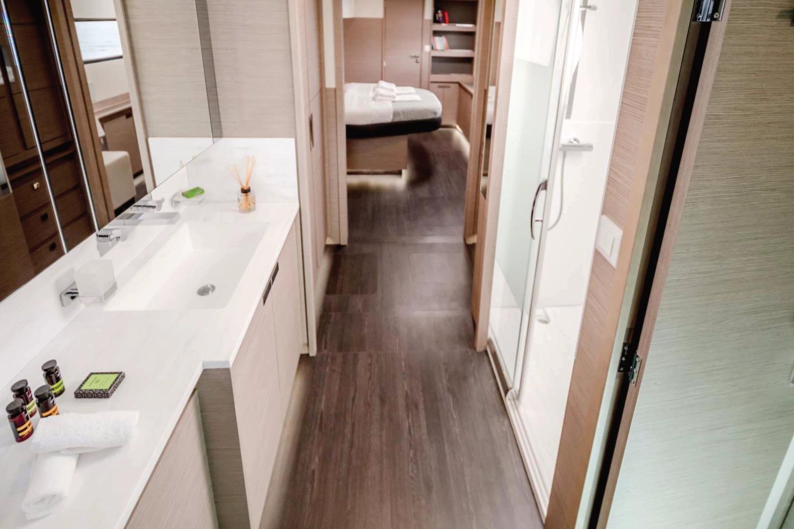 - Salon accessible from cokpit via a triple-leaf sliding door with carpeted entrance