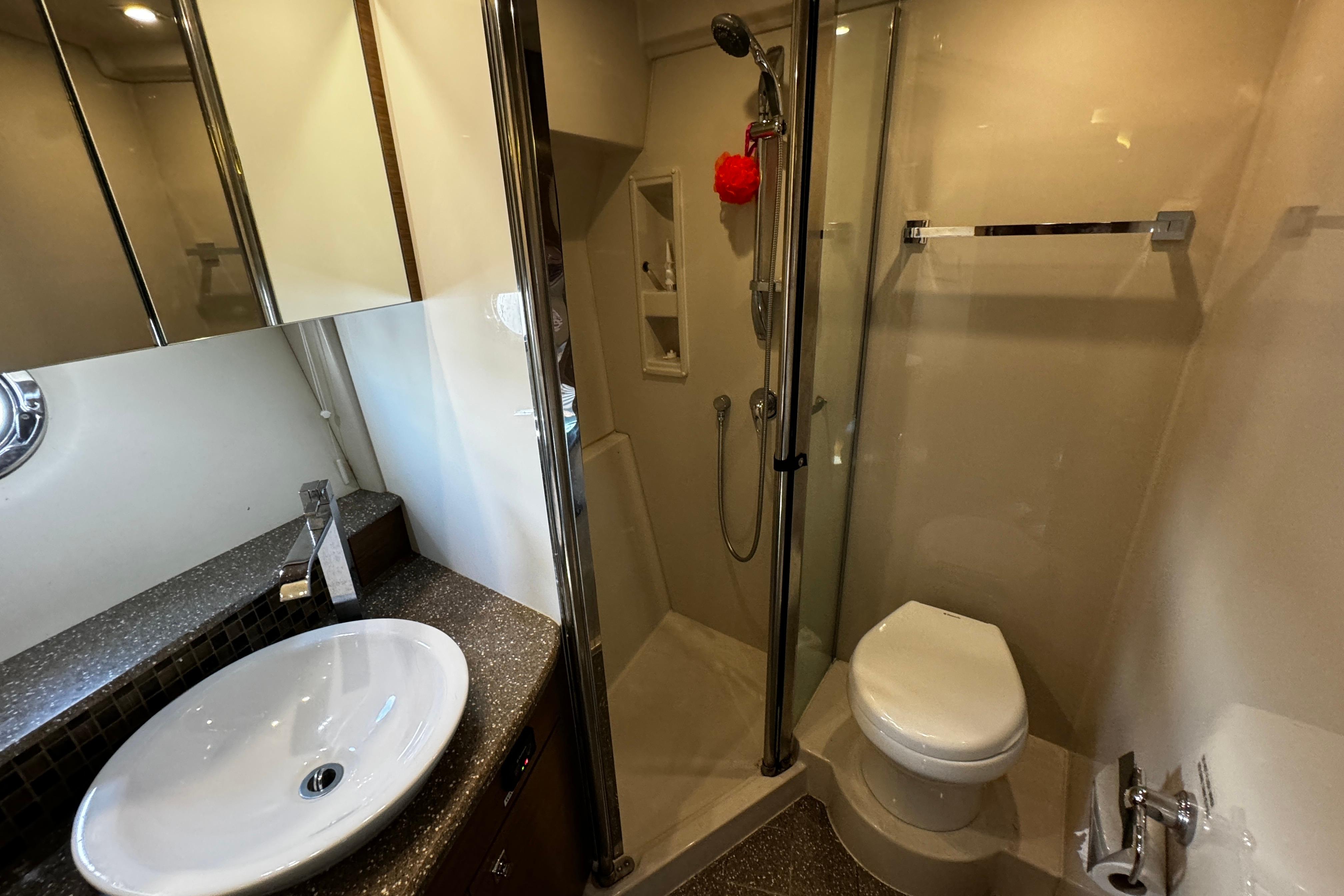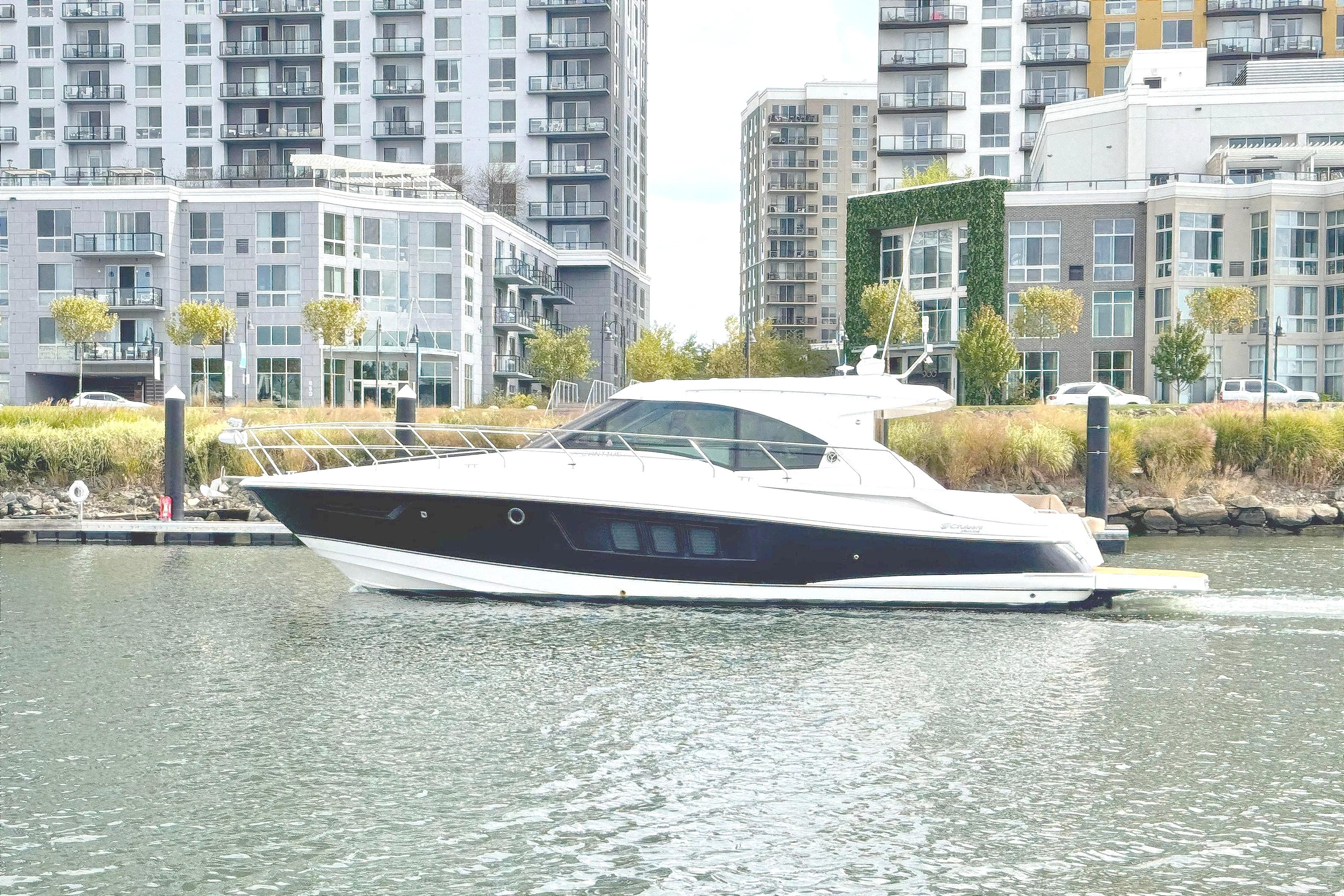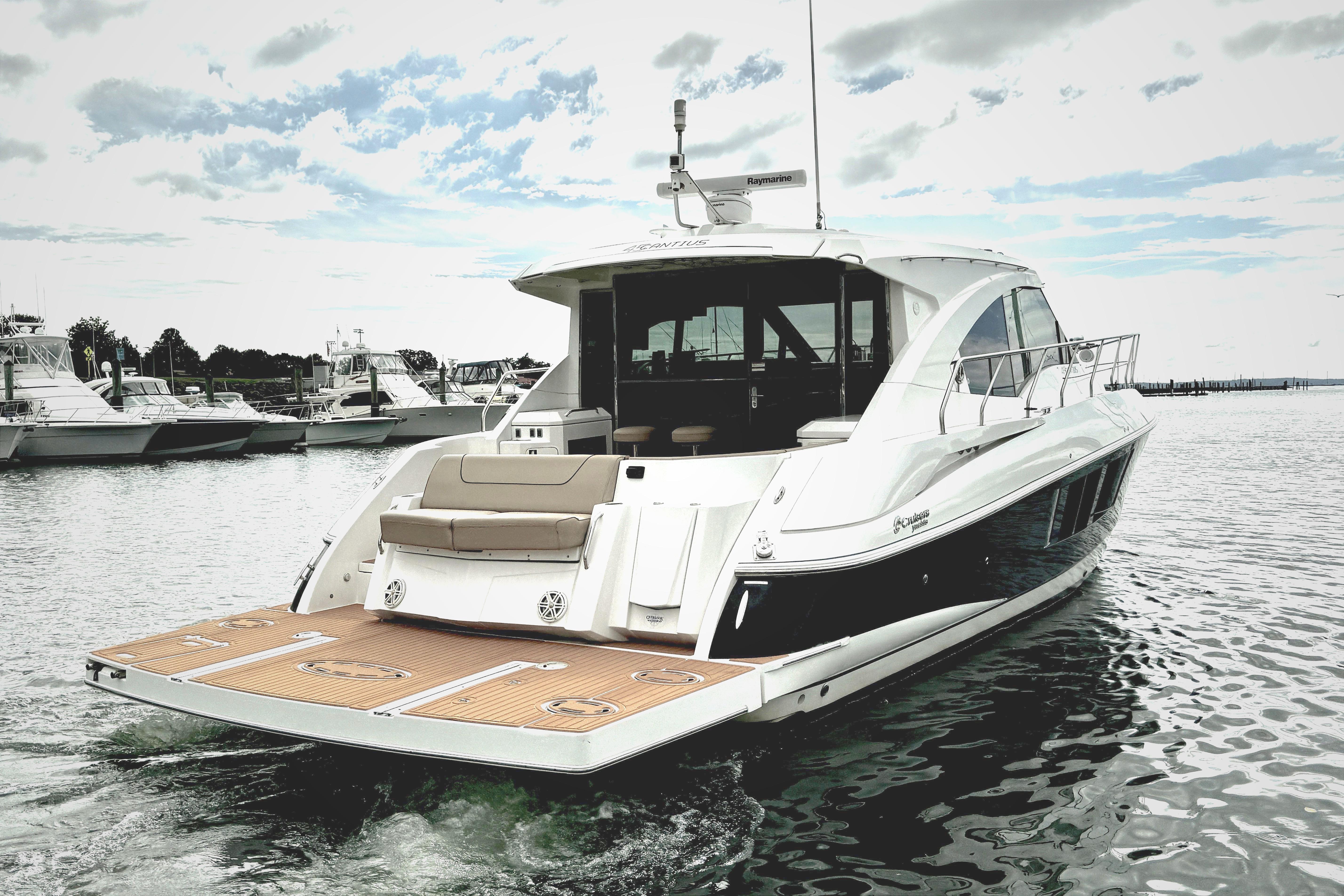 The Cruisers Yachts 45 Cantius is a luxurious express cruiser combining performance and high-end comfort, accomplishing family & guest entertainment in addition to an comfortable extended trip. She's been professionally managed and turn-key. She's powered by twin Volvo IPS 600s with Joystick, giving her speed and fuel efficiency. Delivery is included throughout the Eastner seaboard.