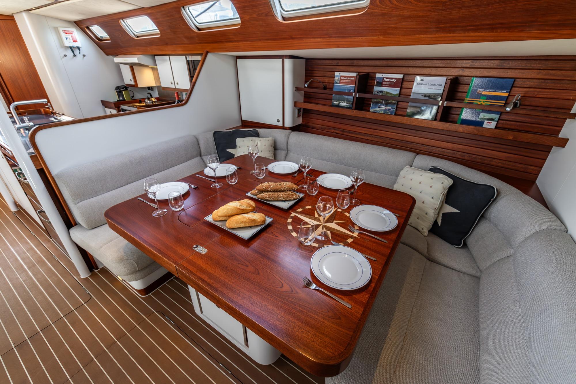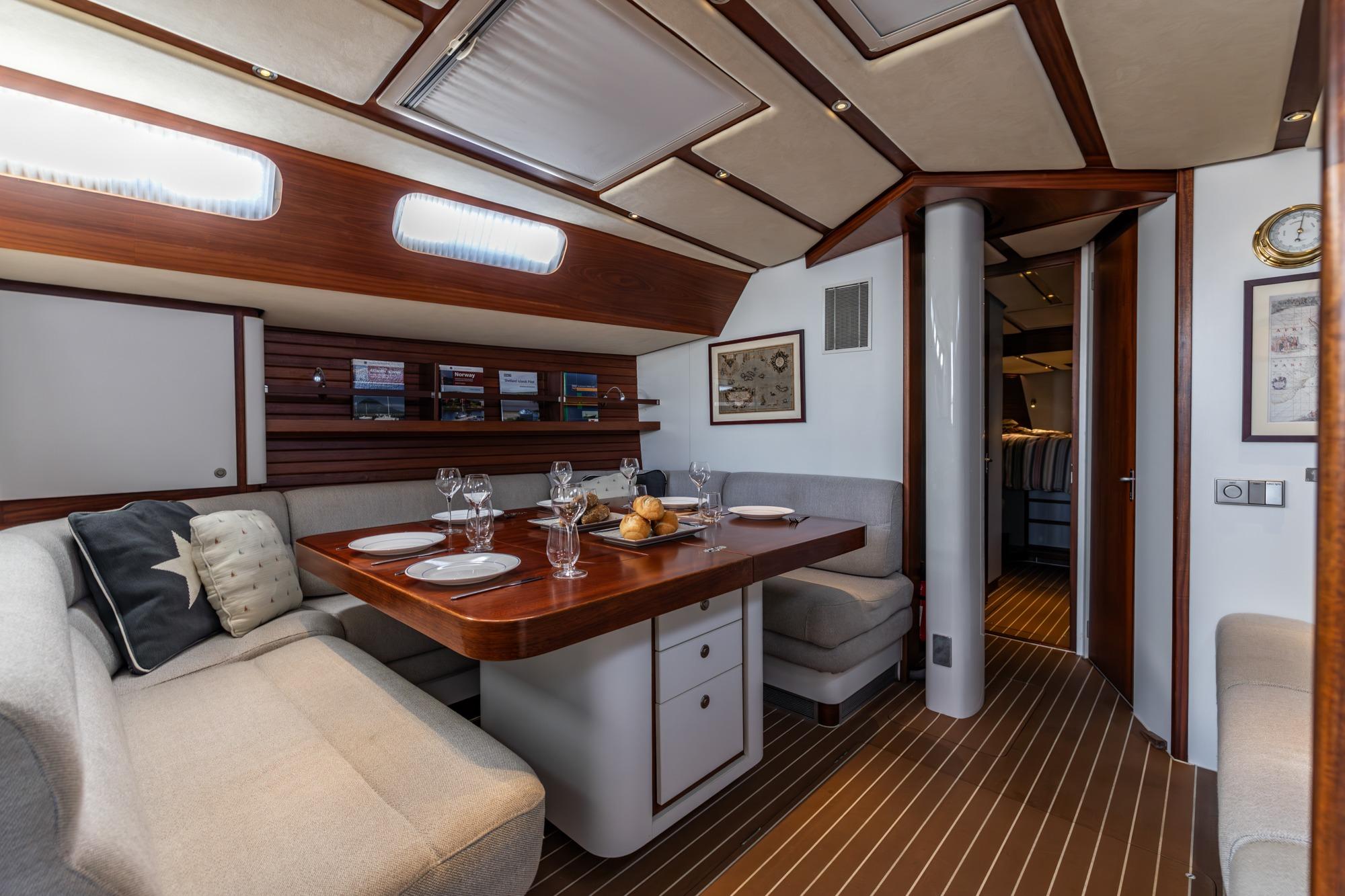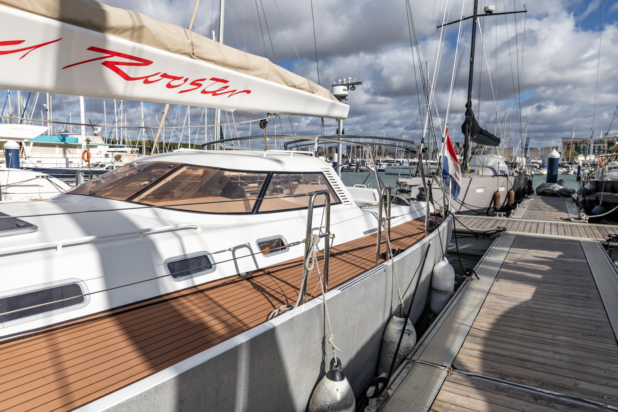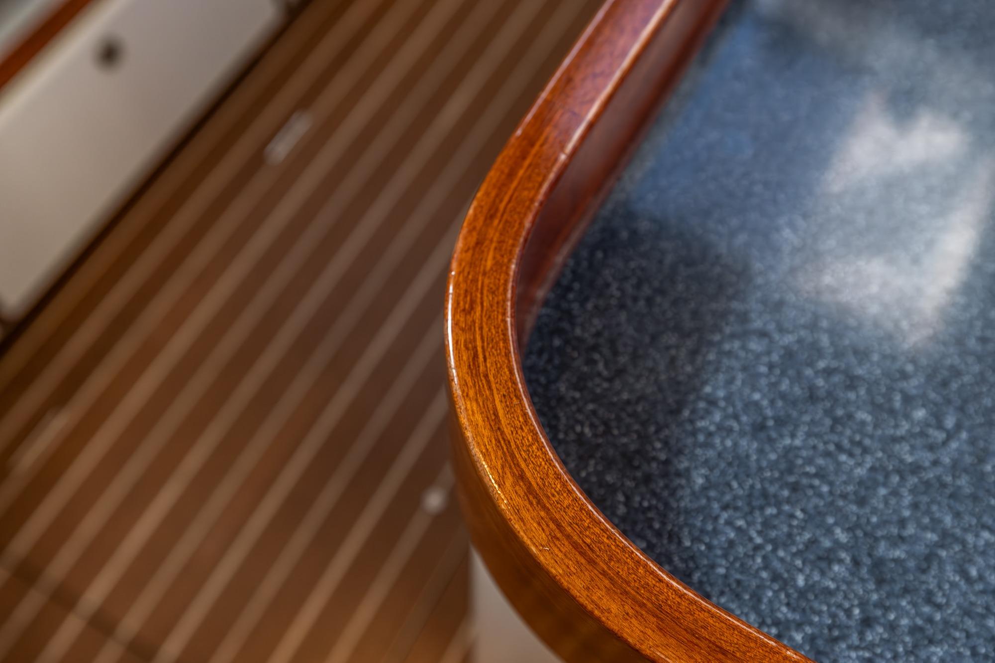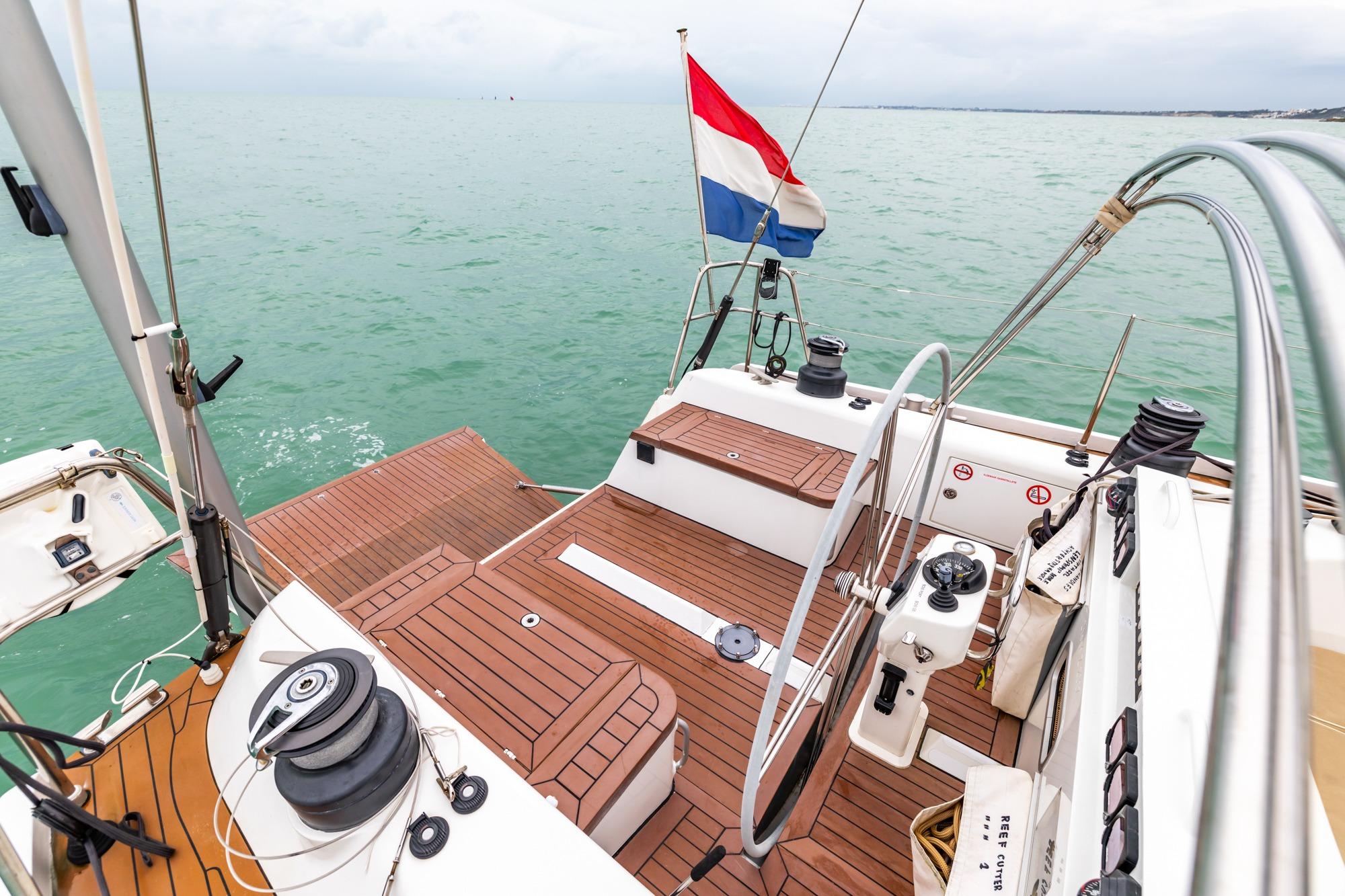 Her distinctive twin-cockpit layout features a dedicated working cockpit for efficient sailing and a well-protected cockpit under the doghouse for relaxed cruising. The deck is finished with new synthetic Ecodeck (installed 2018), combining a modern look with low maintenance.