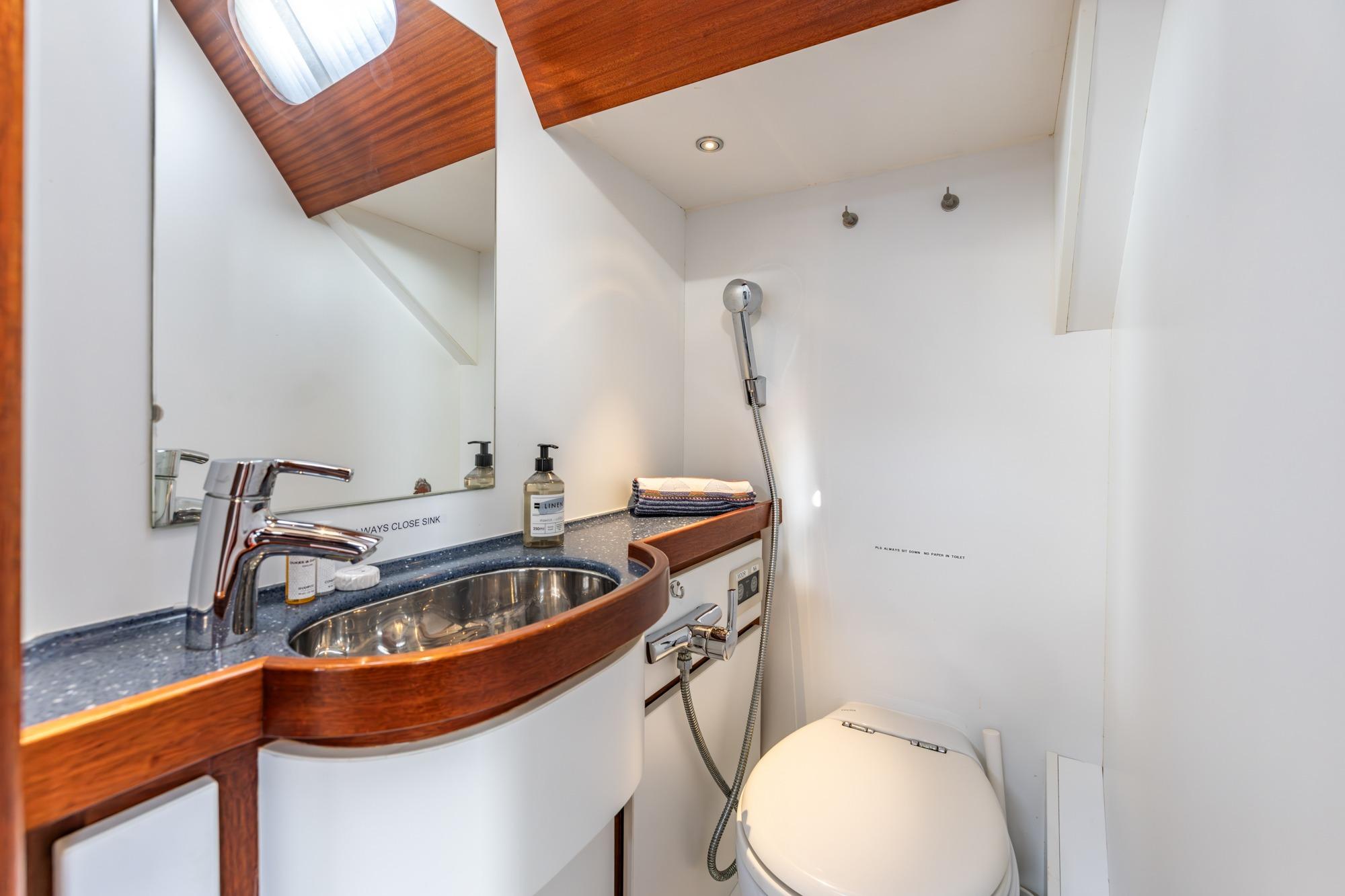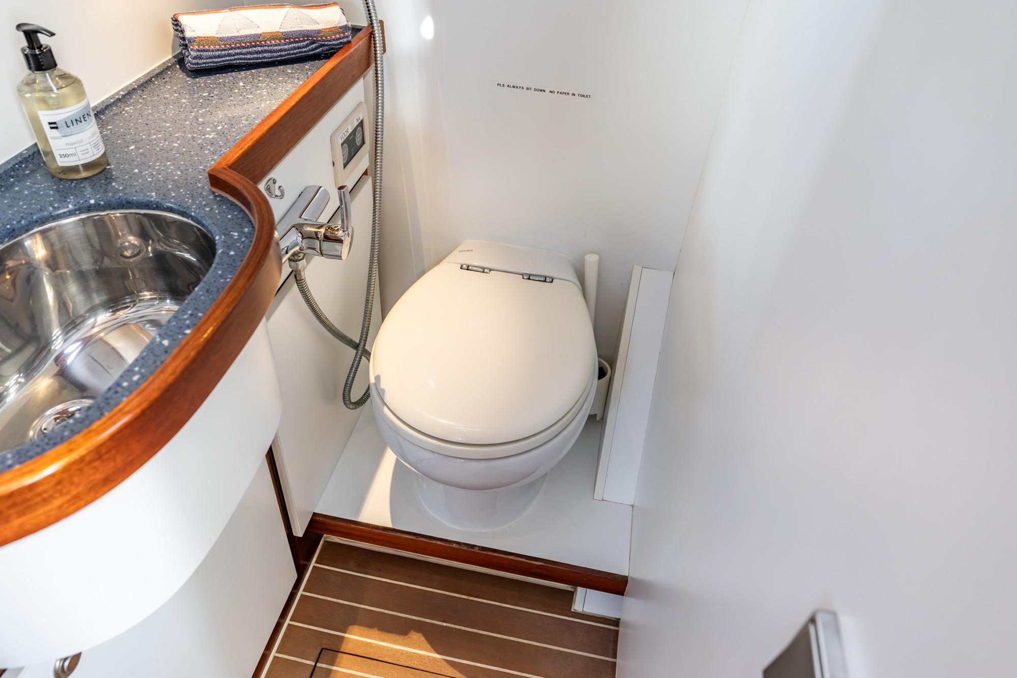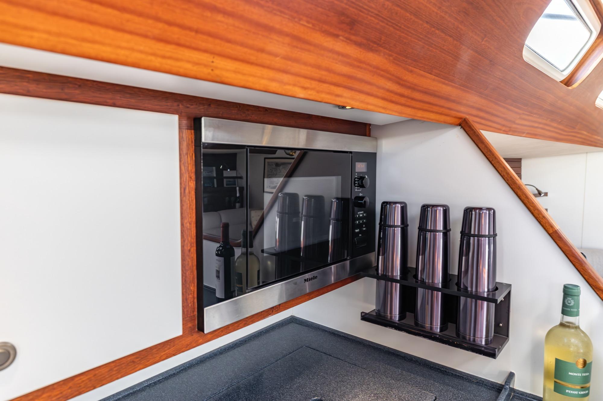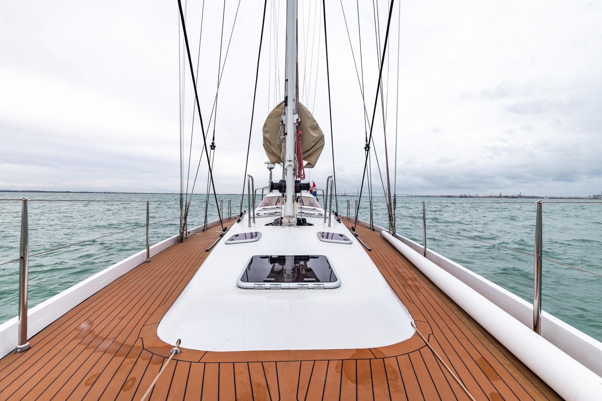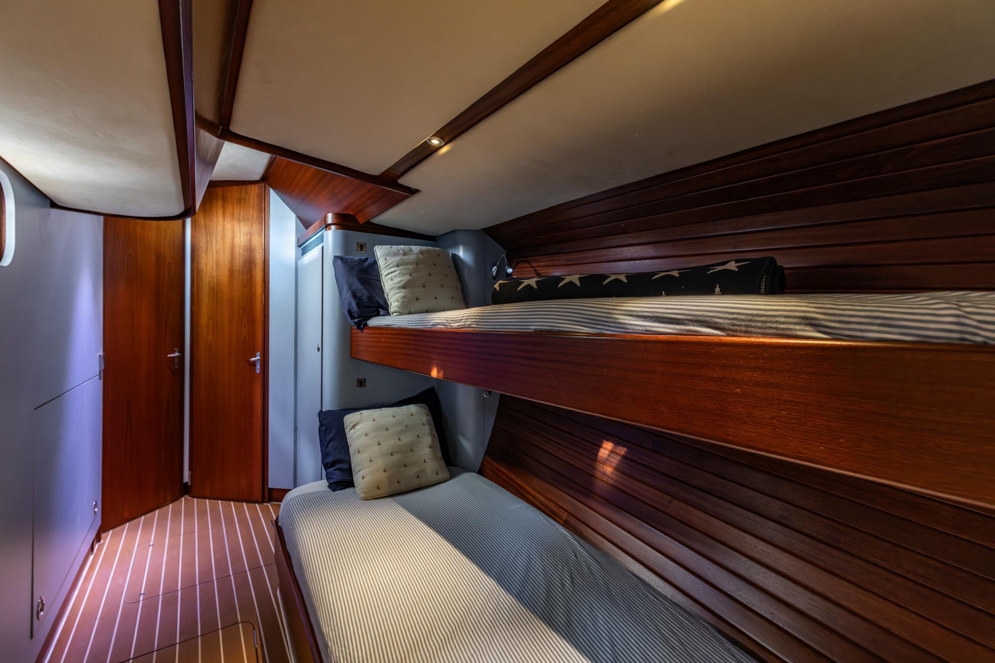 Her distinctive twin-cockpit layout features a dedicated working cockpit for efficient sailing and a well-protected cockpit under the doghouse for relaxed cruising. The deck is finished with new synthetic Ecodeck (installed 2018), combining a modern look with low maintenance.