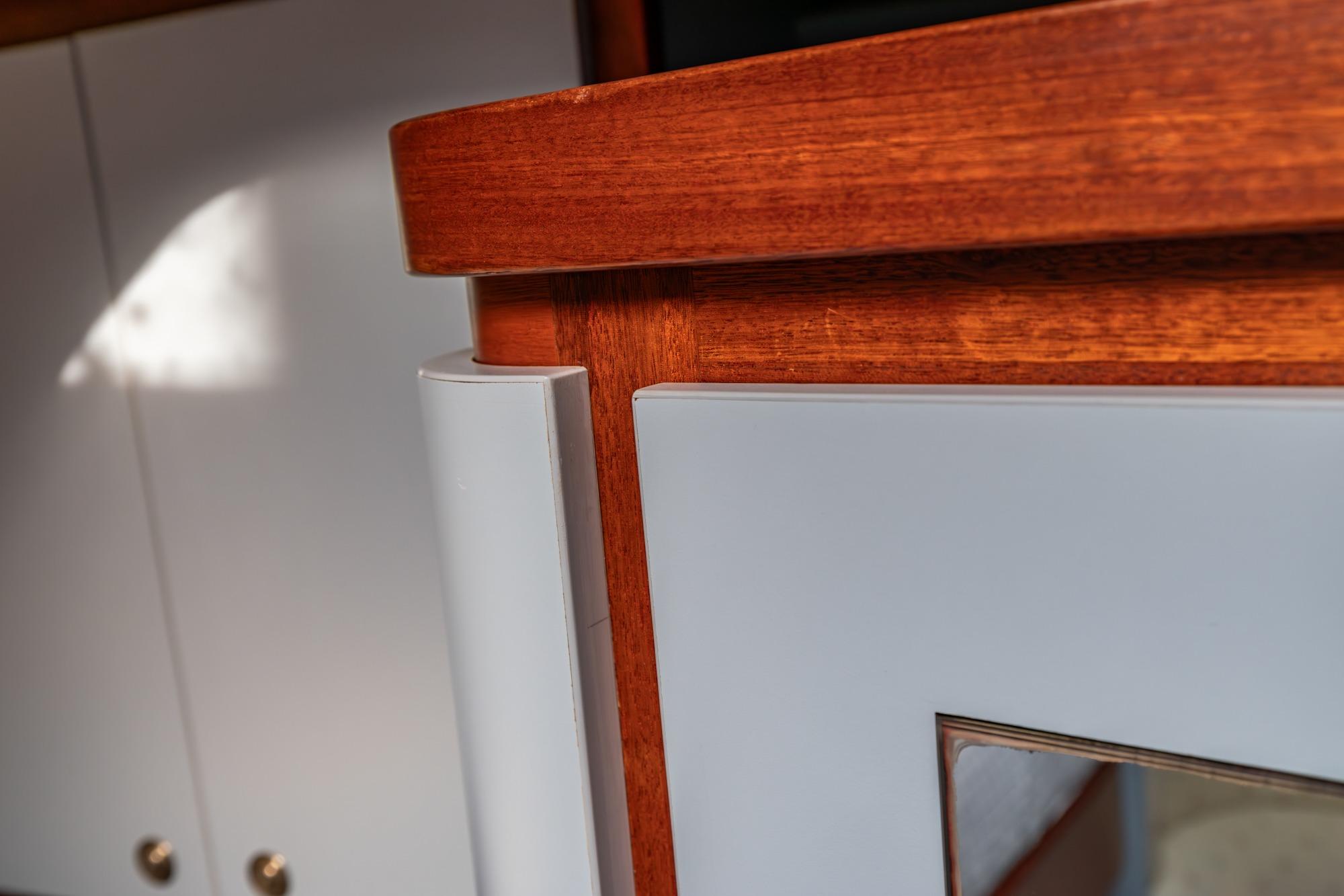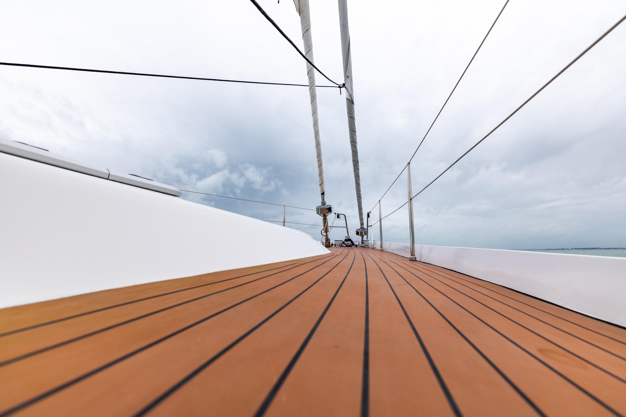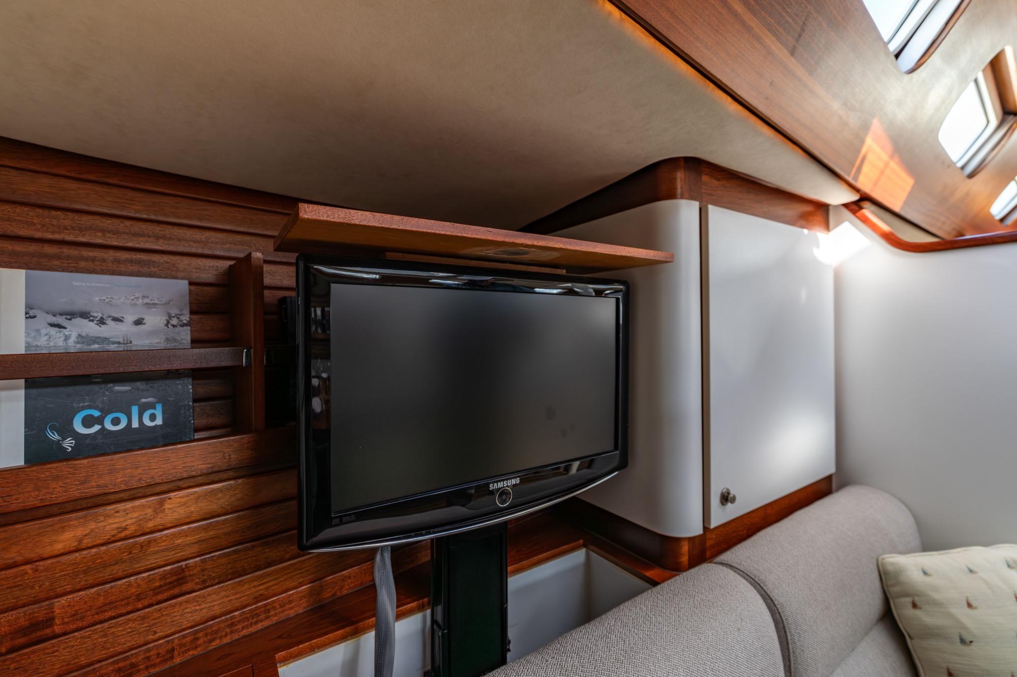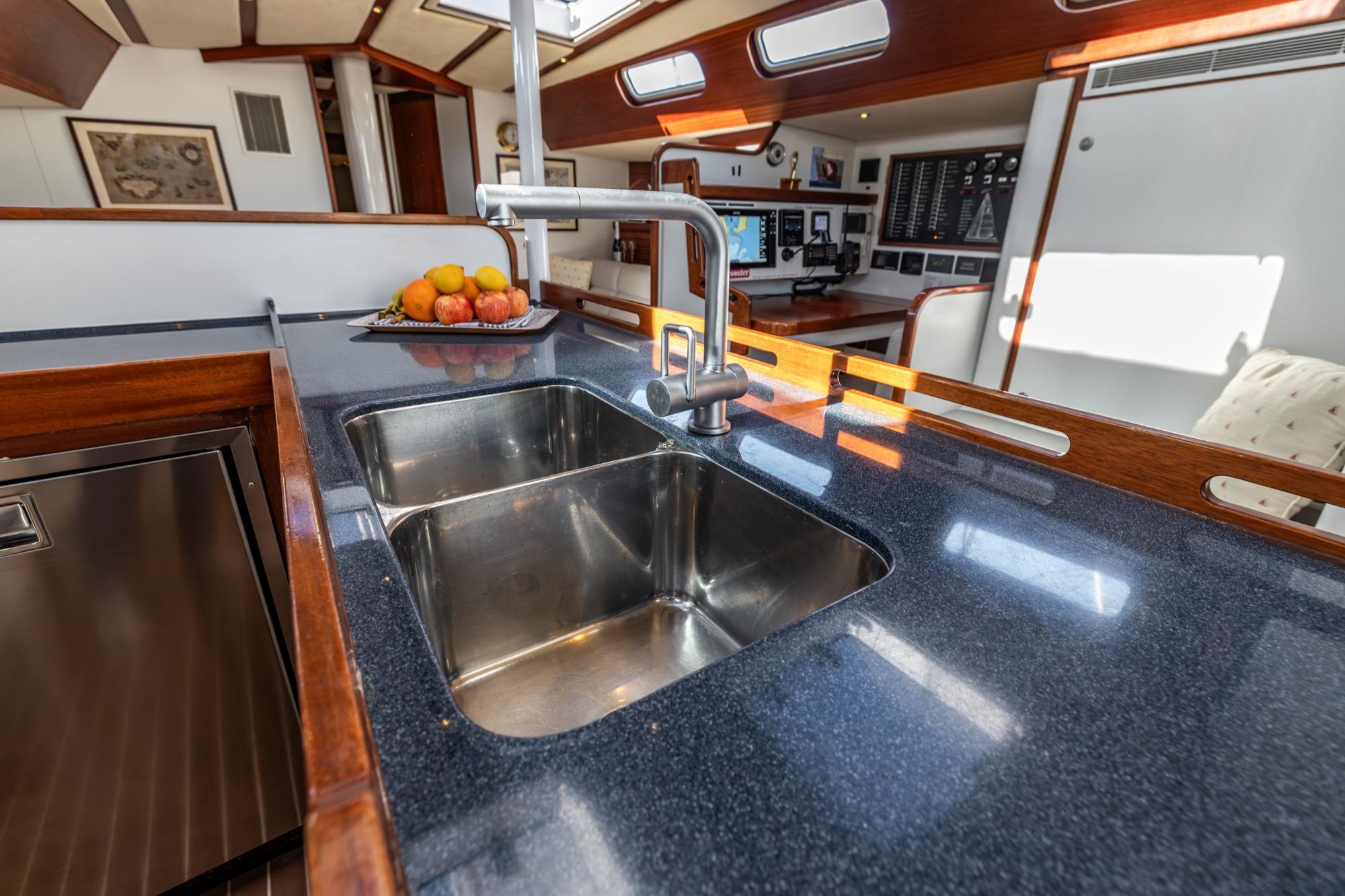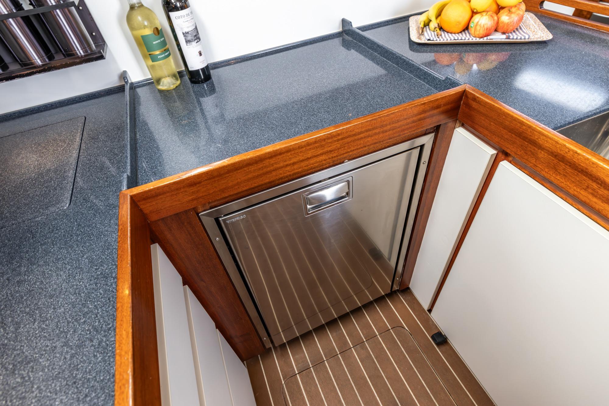 Her distinctive twin-cockpit layout features a dedicated working cockpit for efficient sailing and a well-protected cockpit under the doghouse for relaxed cruising. The deck is finished with new synthetic Ecodeck (installed 2018), combining a modern look with low maintenance.