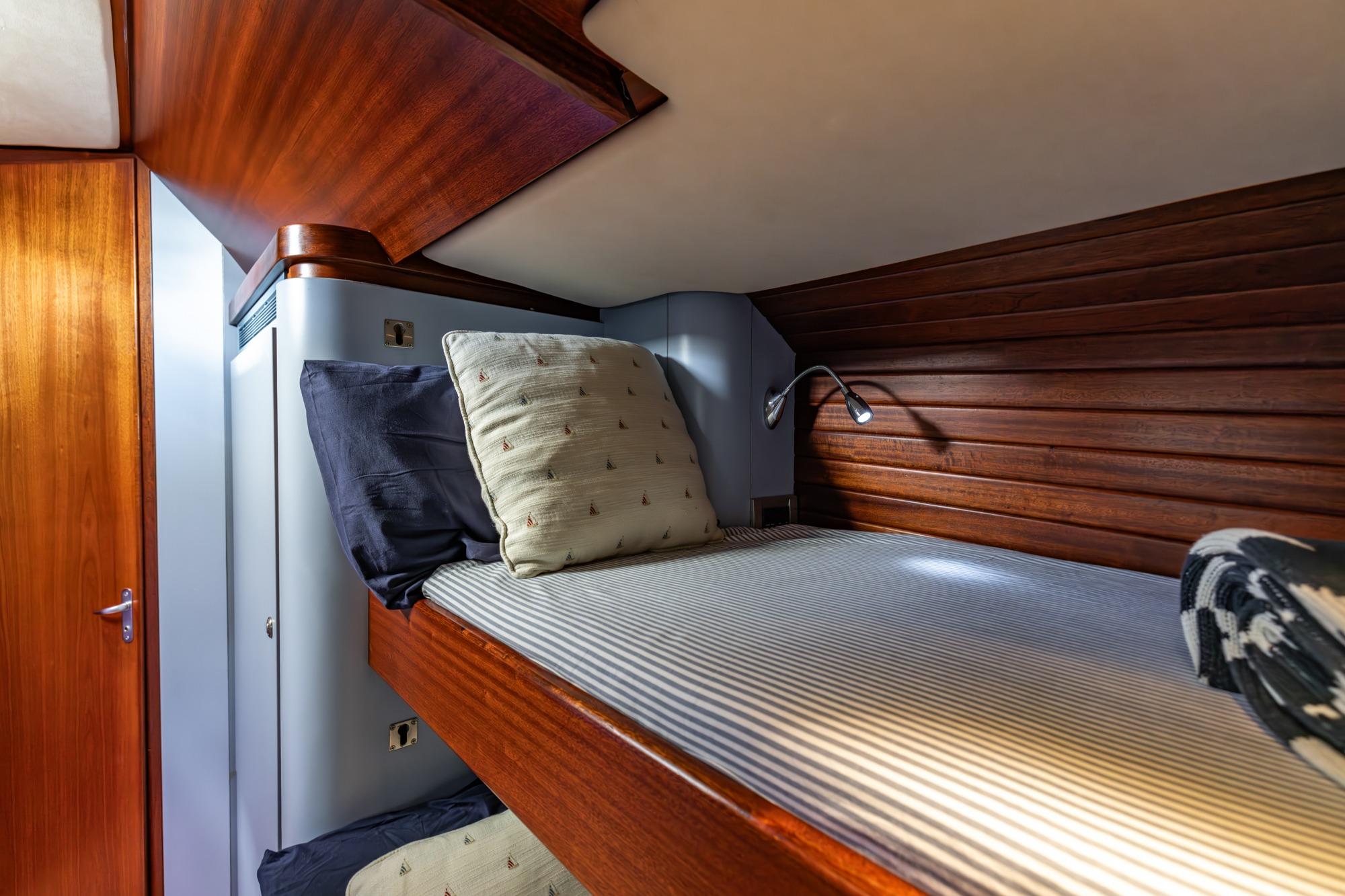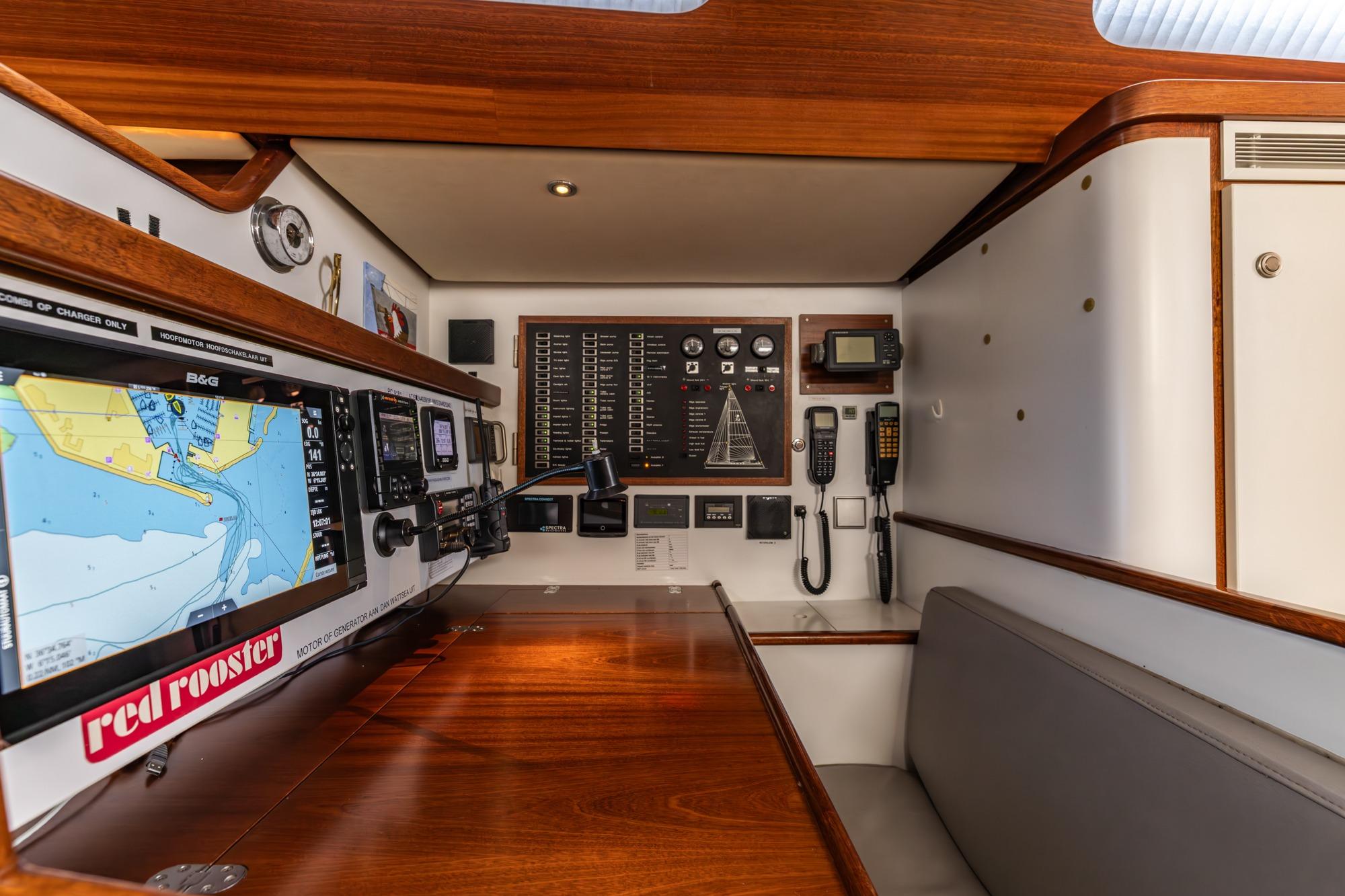 Sail inventory is up to date with a Elvström mainsail (2023) and a Elvström genoa (2024). Fully equipped for self-sufficient offshore cruising with a Perkins Sabre engine, generator, hydrogenerator, watermaker and comprehensive navigation systems. She is equipped with a central pneumatic system, widely used in commercial and offshore vessels for its reliability, redundancy and low fire risk. An airbag release system further enhances safety for offshore sailing. Red Rooster is an exceptional long-range sailing yacht for discerning sailors. Offered in co-operation with KM Yachtbuilders.