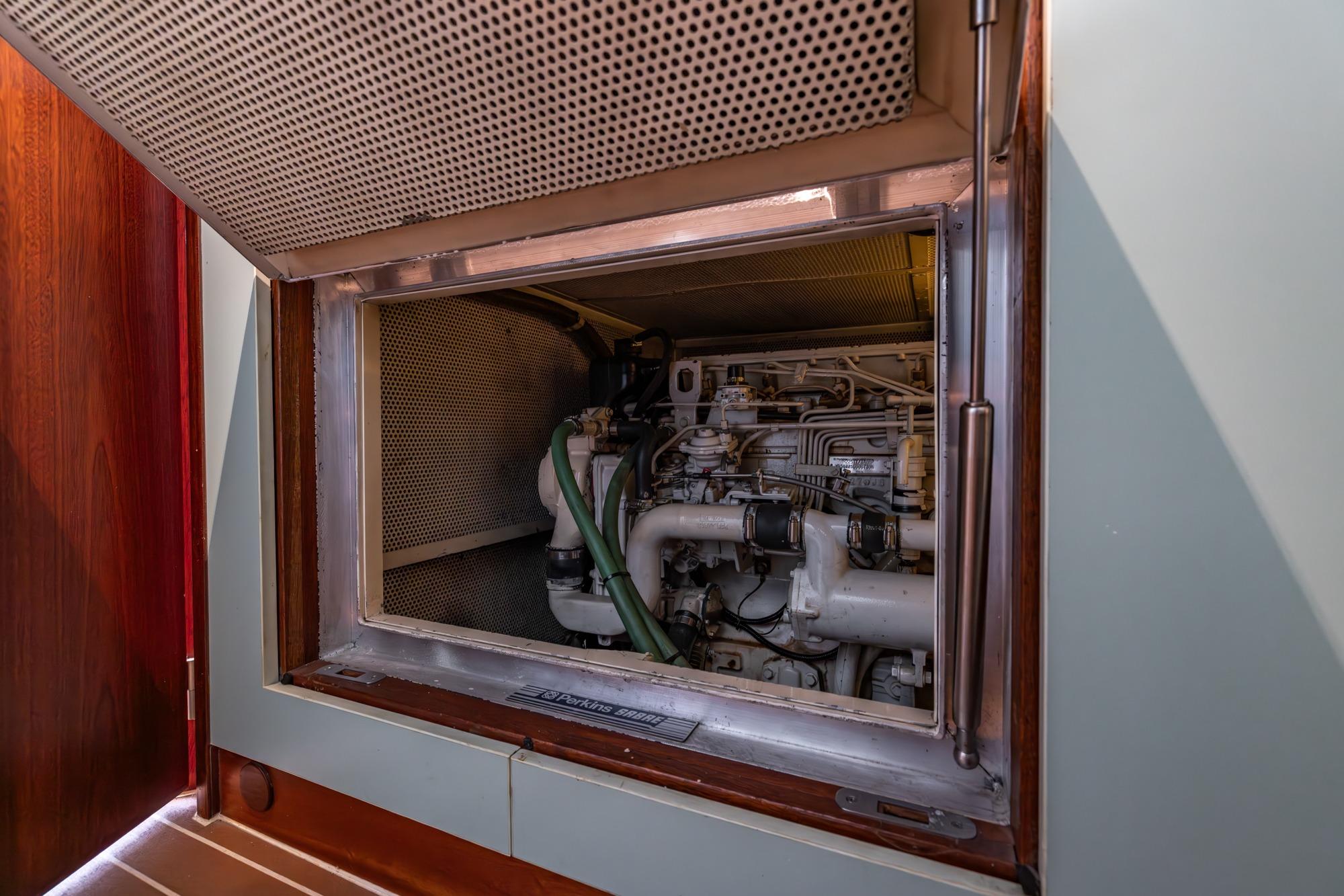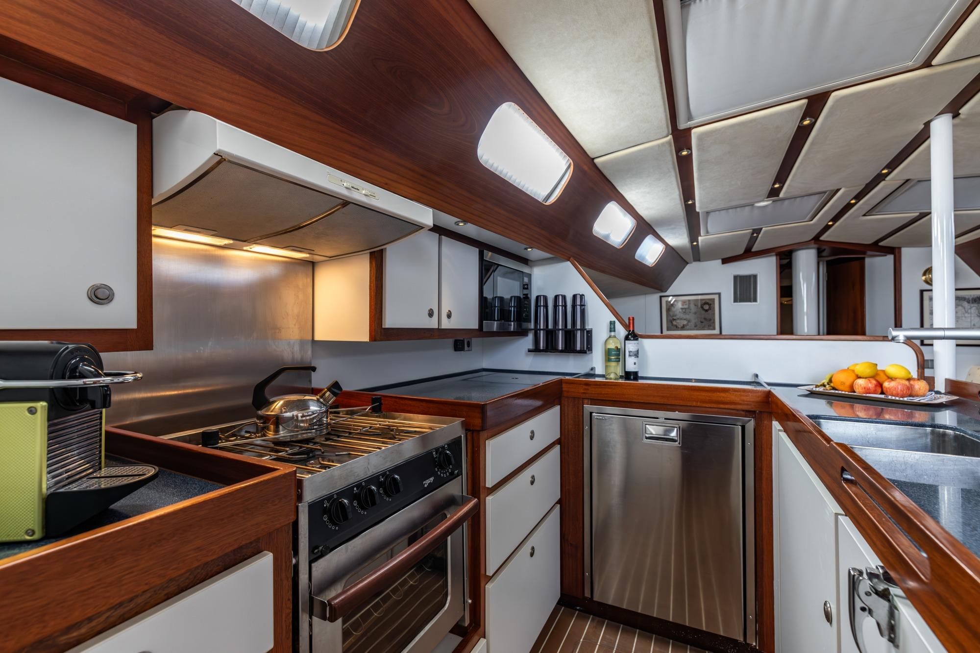 Below deck, the refined mahogany interior accommodates eight guests in four comfortable staterooms, including a spacious owner’s suite with ensuite bathroom.