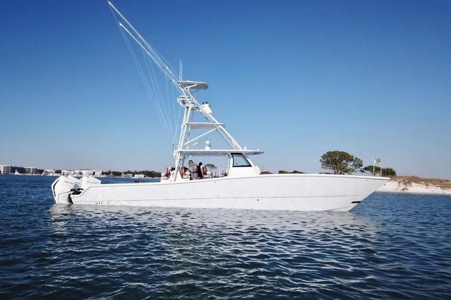 Purpose-built for bluewater runs, this 2023 Freeman 47T delivers the speed, balance, and fishability that have made Freeman the benchmark in the performance-cat category. Quad Mercury 450Rs push 1,800 hp with remarkable efficiency and throttle response, while the hull’s natural stability helps you maintain speed and confidence even when the weather turns. The boat has no bottom paint, has been fully ceramic coated, and presents exceptionally clean.