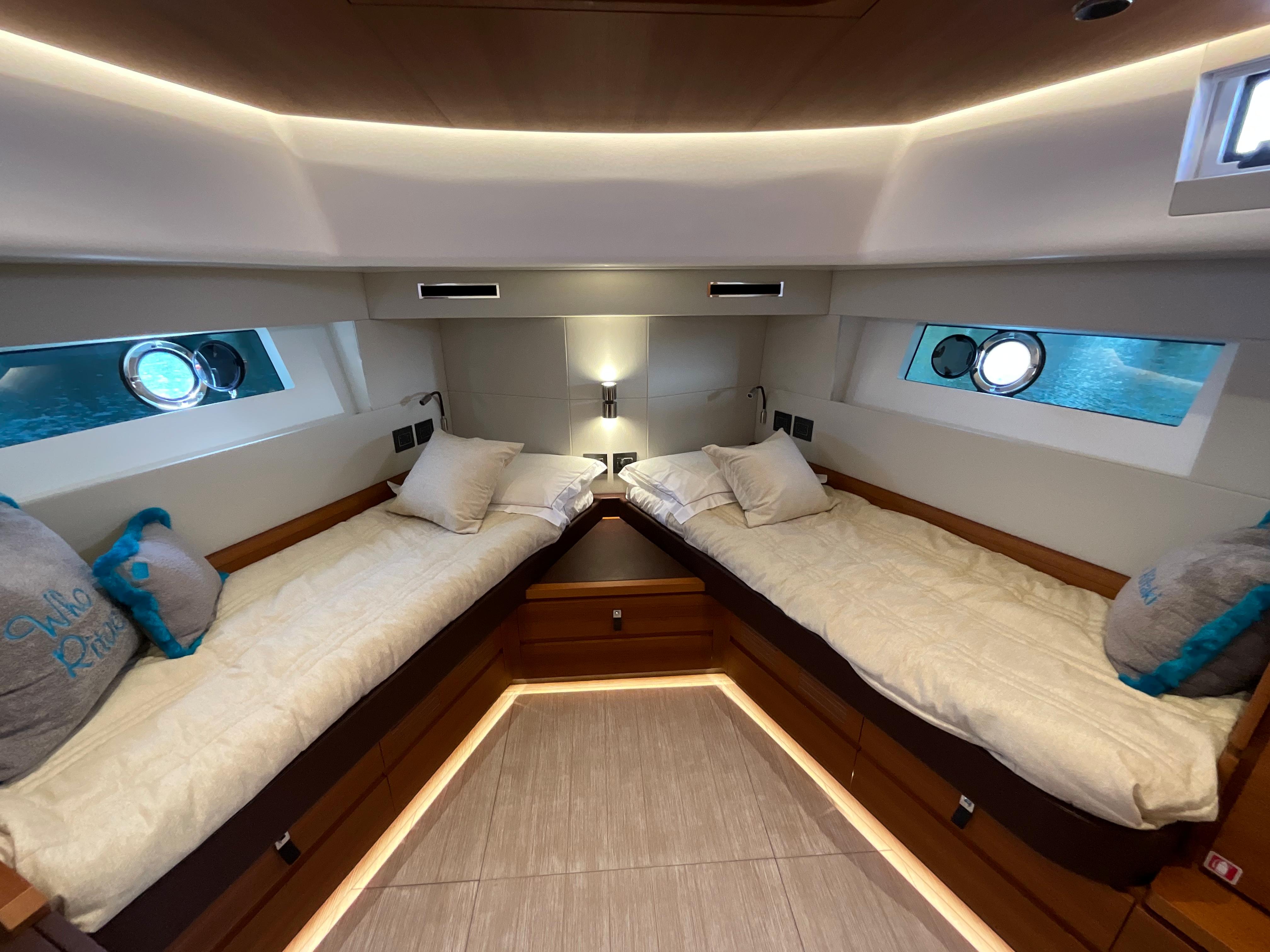 Step aboard and be captivated by the luxurious three cabins and three bathrooms, ensuring comfort and privacy for you and your guests. The gyroscopic stabilizer guarantees a smooth sailing experience, even in choppy waters.