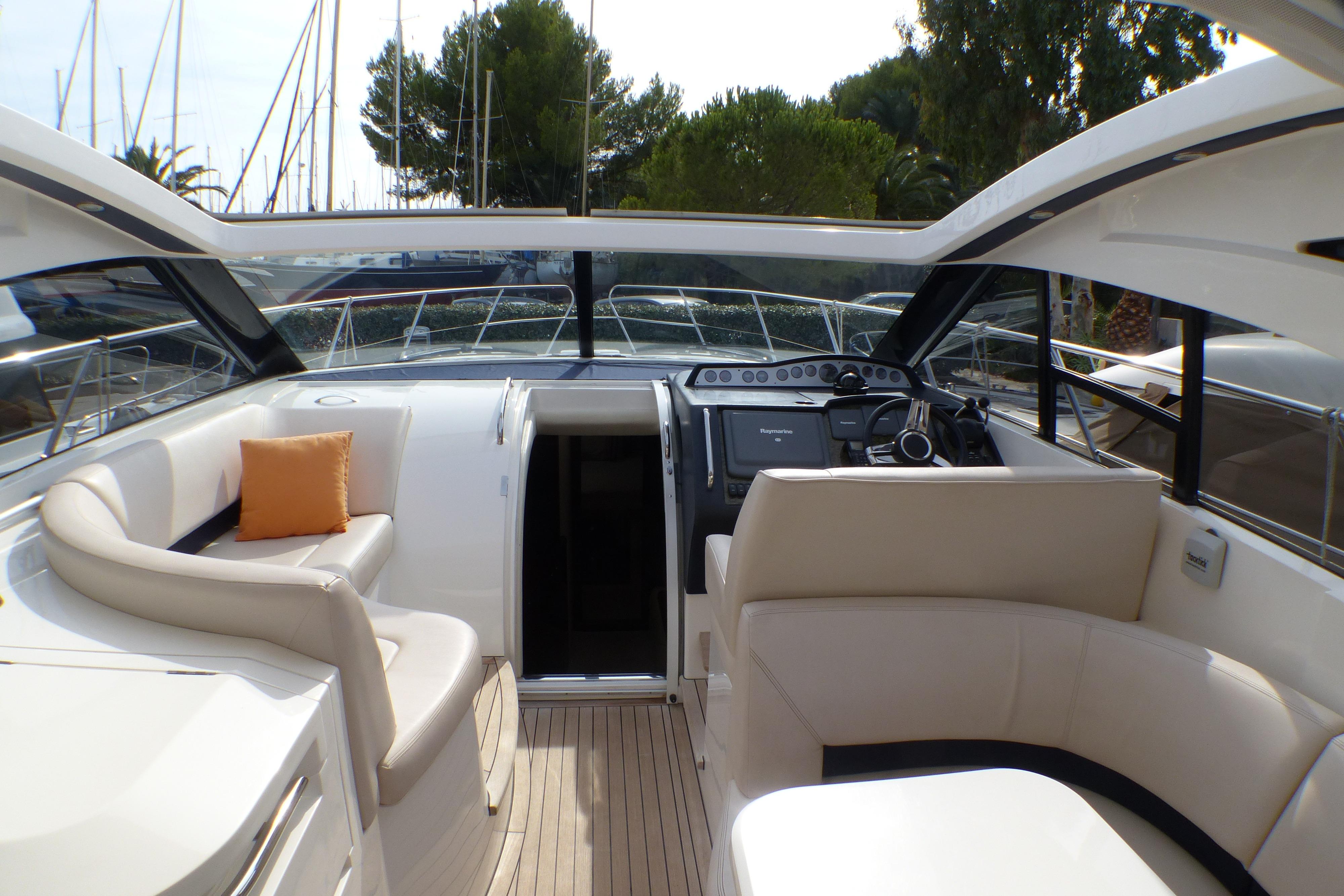 - Cockpit wet bar with refrigerated cold box and optional barbecue