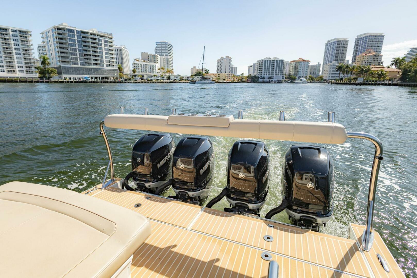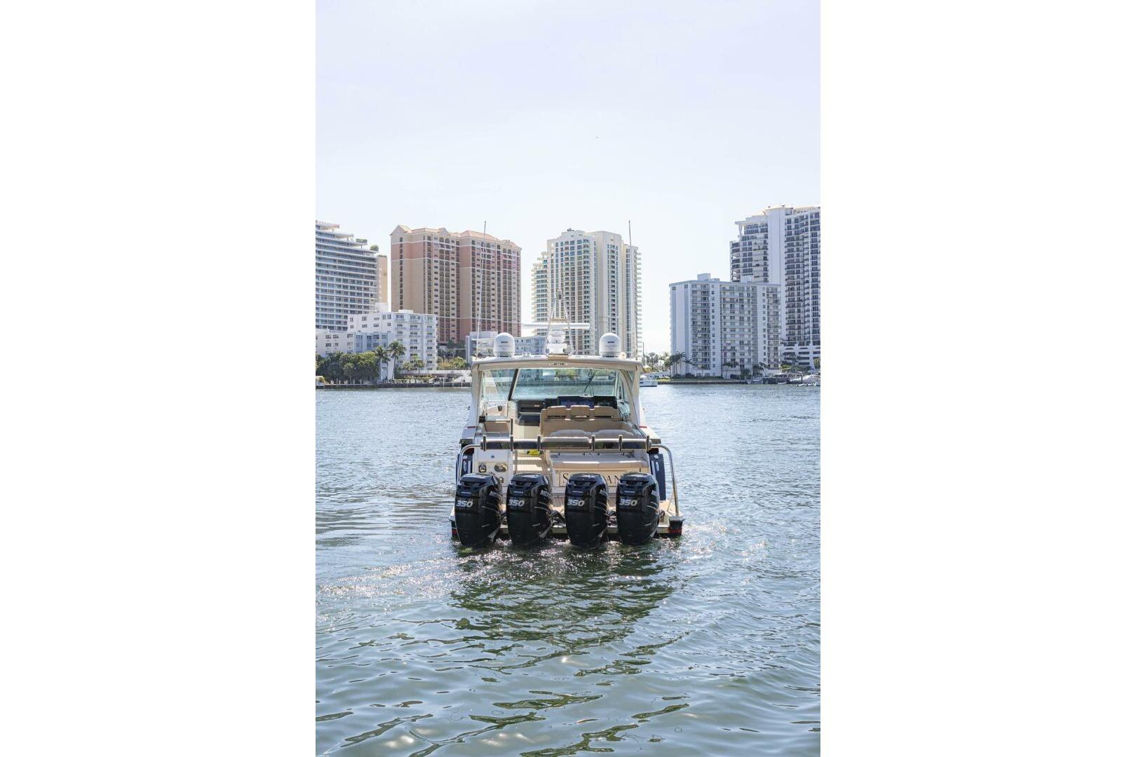 The 2018 Formula 430 Super Sport Crossover, a remarkable cruiser that embodies luxury and performance. With an overall length of 43 feet, this vessel is designed for those who appreciate both style and functionality. The deep Vee hull, crafted from durable fiberglass, ensures a smooth and stable ride, perfect for both leisurely outings and adventurous excursions. Powered by four Mercury Verado outboard engines, each delivering an impressive 350 horsepower, the Seaspan promises exhilarating speed and agility on the water. With only 475 hours of use, these engines are in excellent condition, ready to take you on unforgettable journeys. Inside, the accommodation features a cozy cabin and a well-appointed head, providing comfort for you and your guests. The thoughtful design and high-quality materials make this boat a true gem for cruising enthusiasts. Experience the thrill of the open water with the Formula 430 Super Sport Crossover!