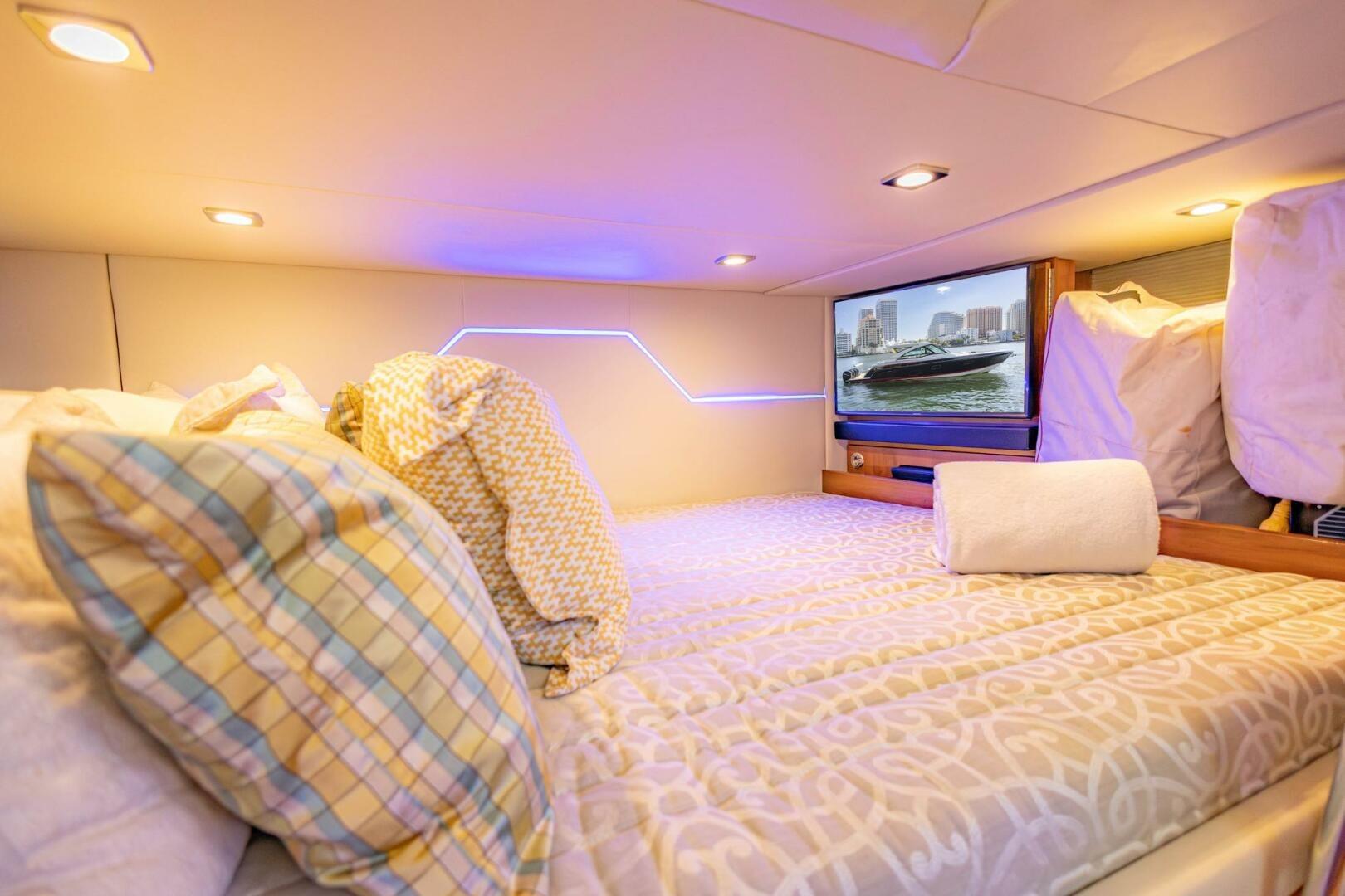 - Aft stateroom with queen memory foam bed and privacy curtain