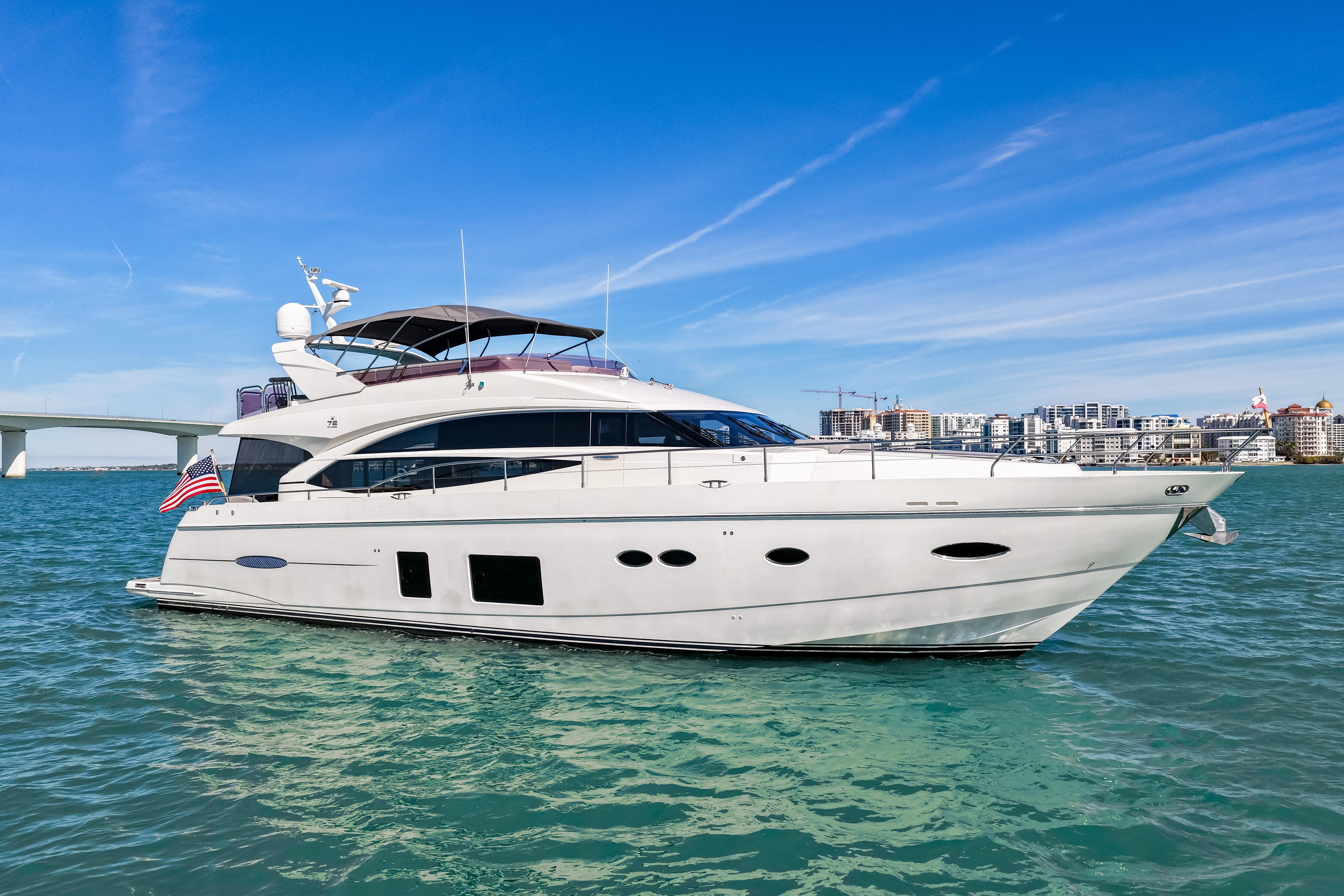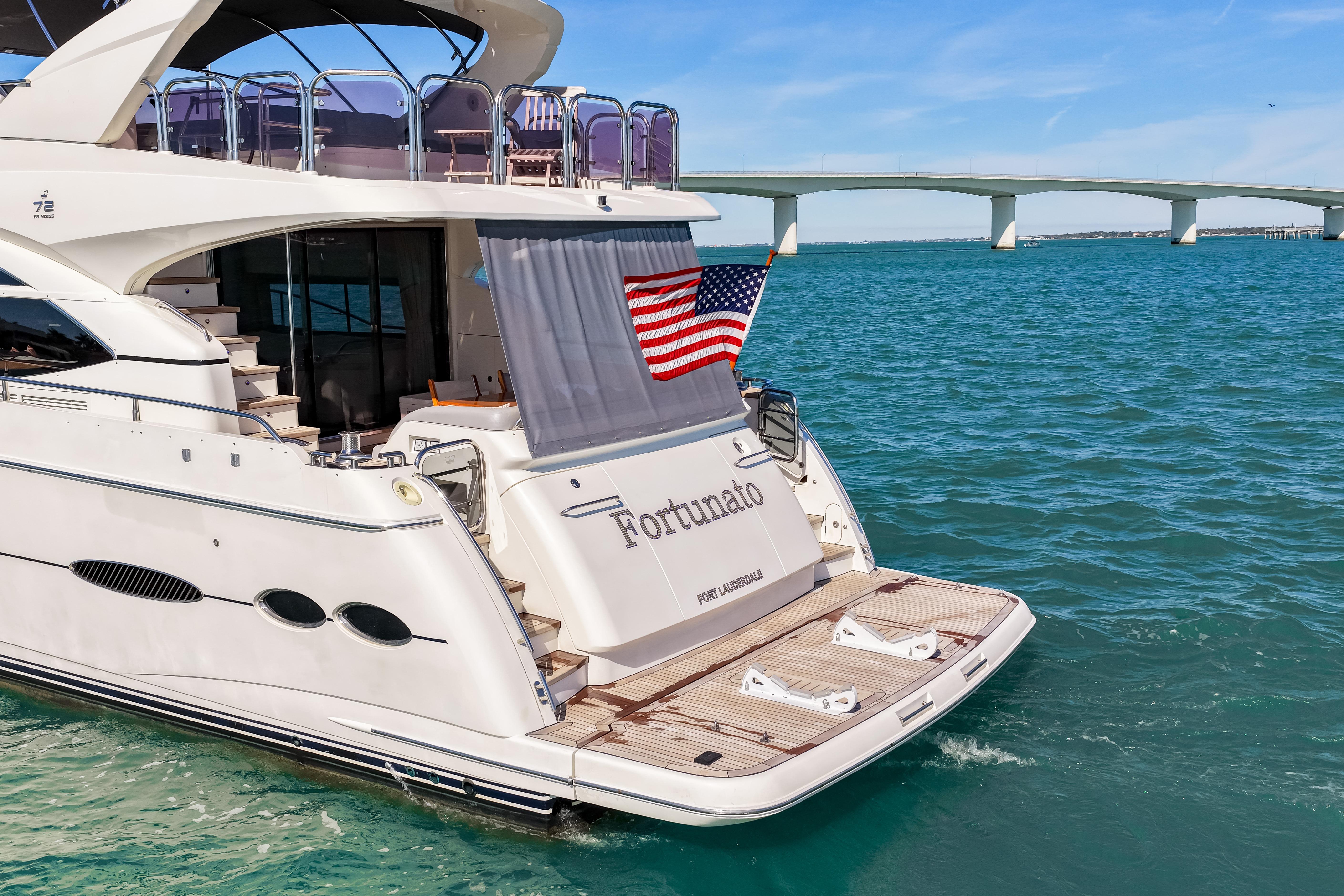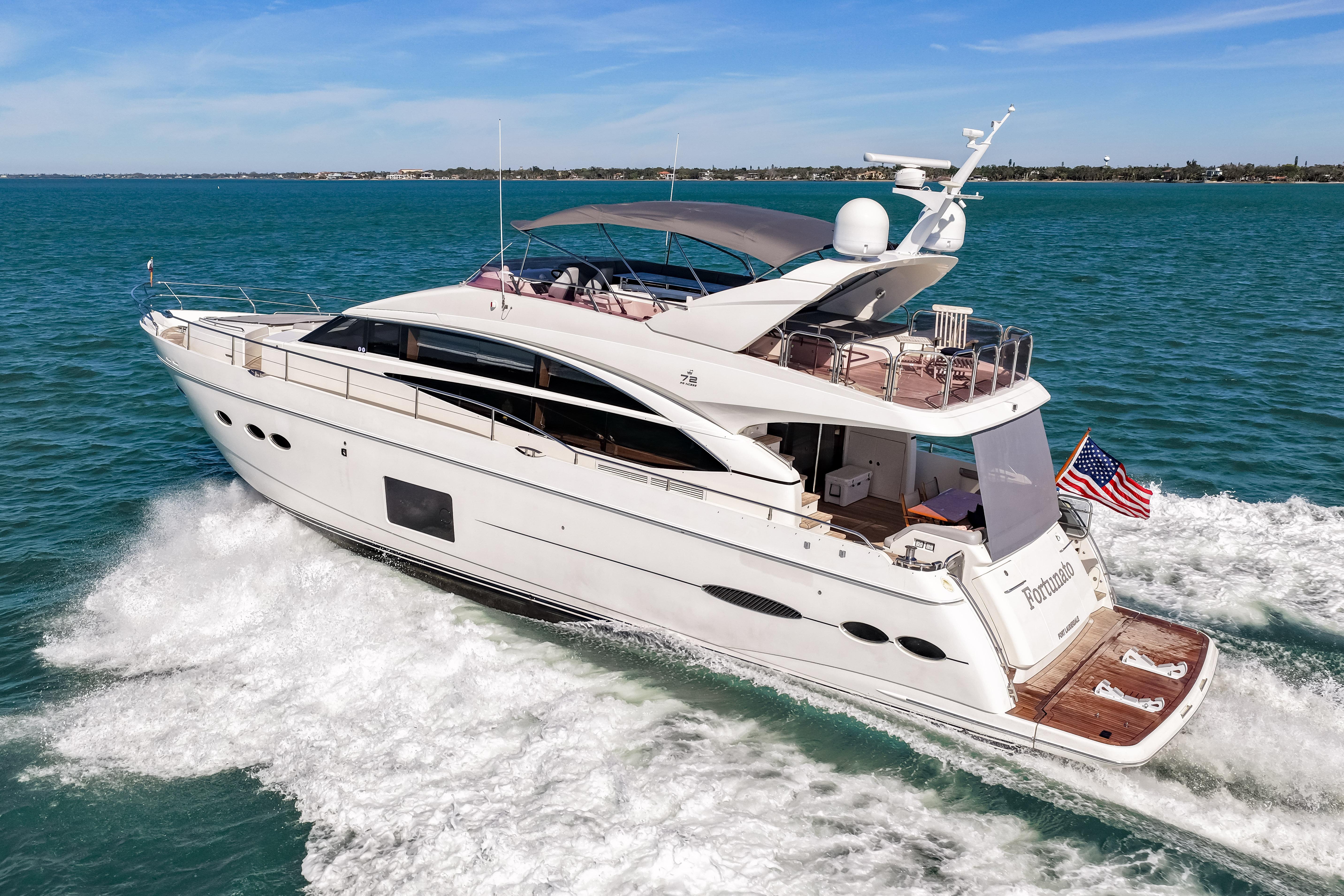 This Beautiful Y72 Princess Flybridge motor yacht named Fortunato is in great condition, currently a second owner and always private and never chartered. The boat is fully loaded with many options including hydraulic ABT fin stabilizers for underway and at rest (anchor), Hydraulic bow and stern thrusters and much more.