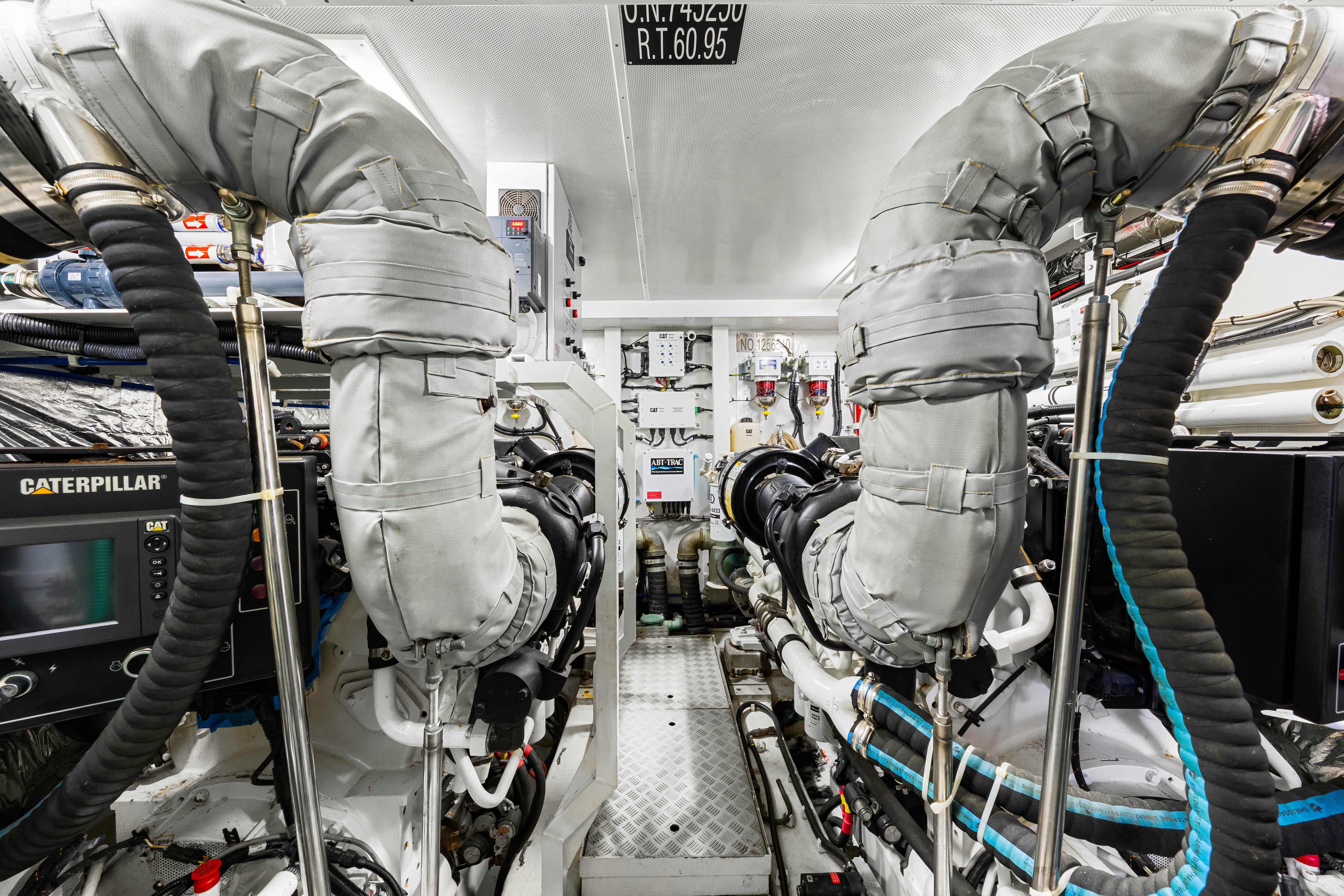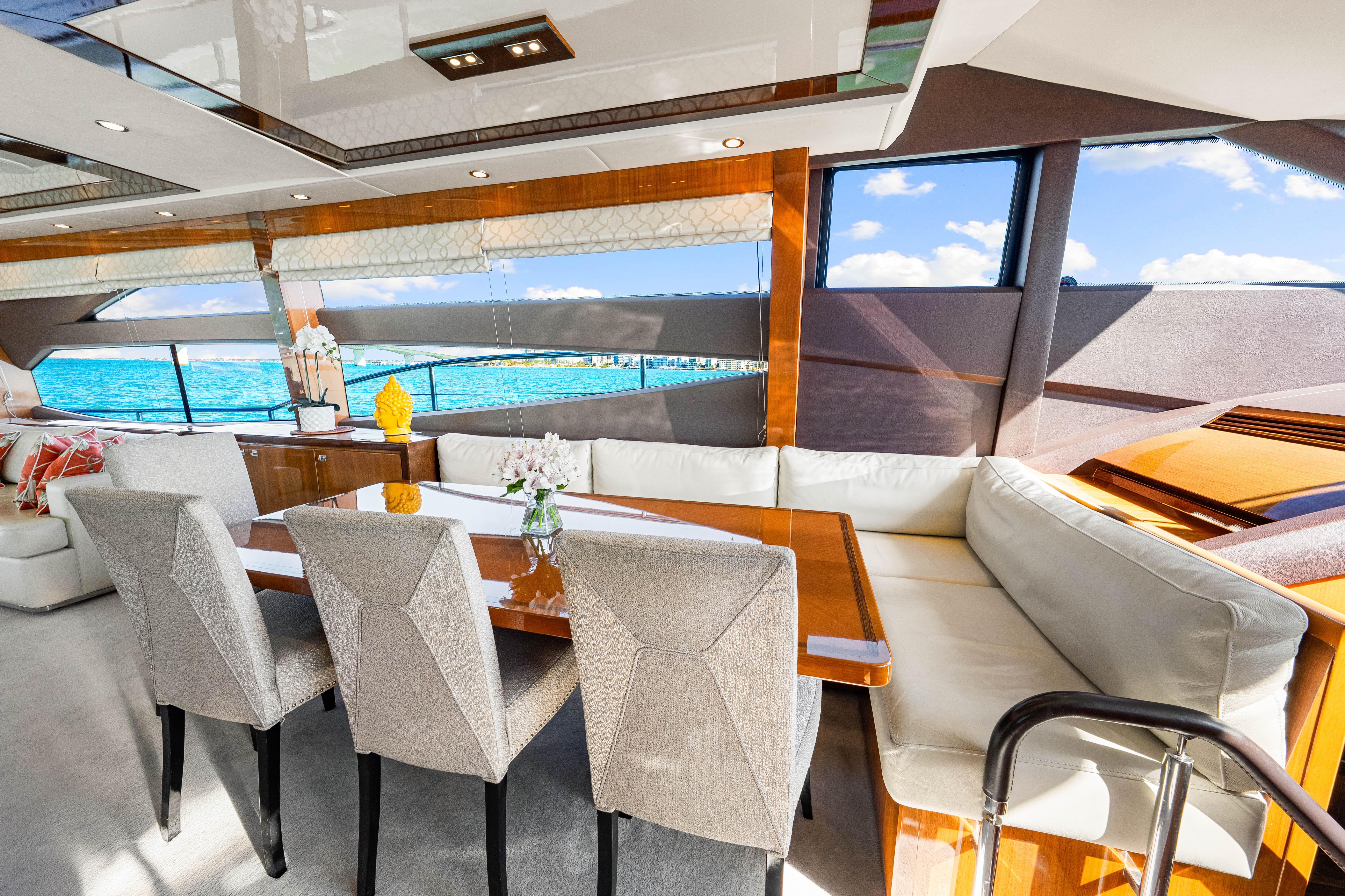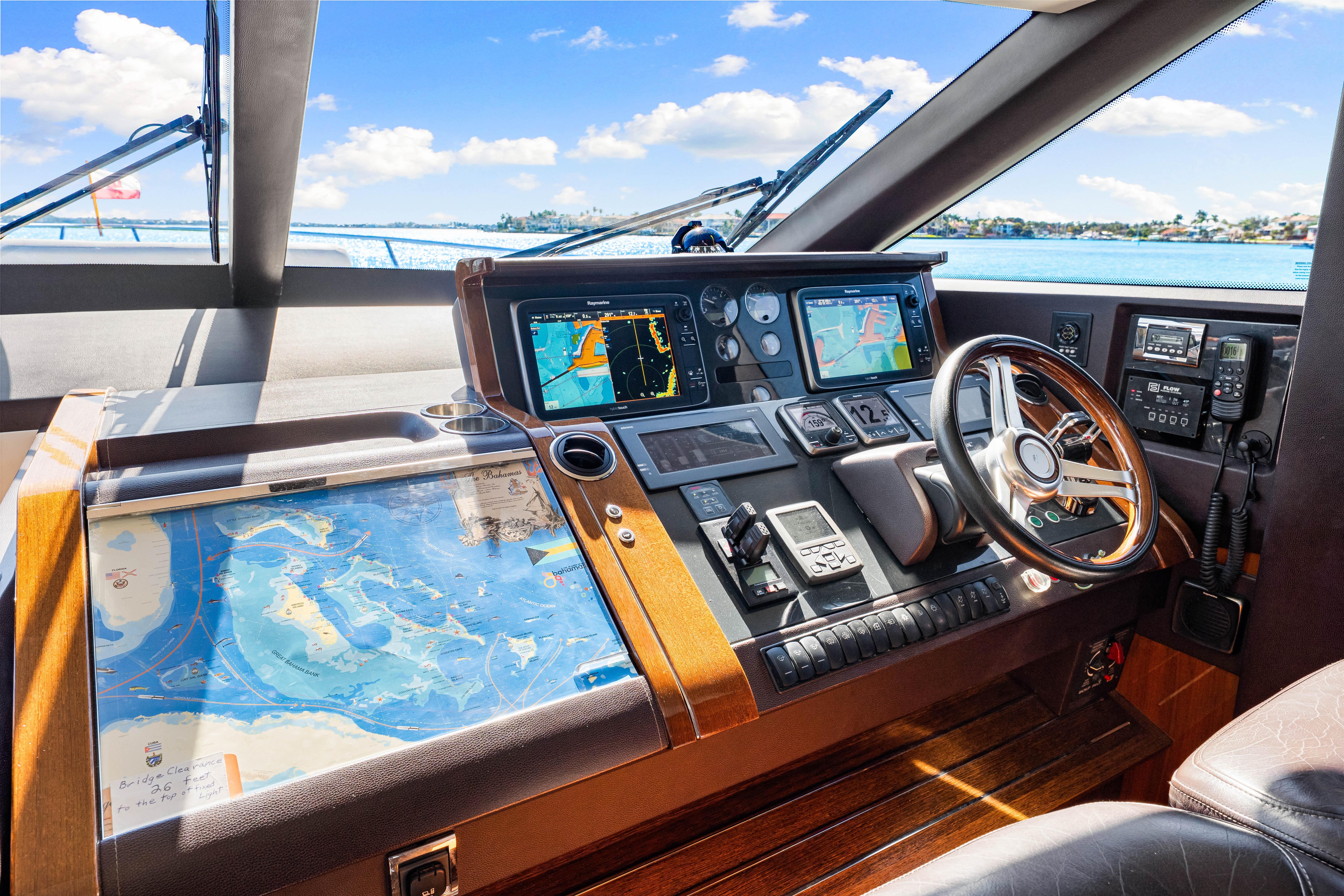 Fortunato has a luxurious interior design with upgraded TV and design features. Powered by the always reliable twin CATERPILLAR C32A 1622hp each, she sports new upholstery in 2020, new chillers in 2023, new covers and bimini (2025), new washer and dryer (2024), New refrigerator (2024), and all new much thicker teak decks installed in 2023 in Fort Lauderdale.