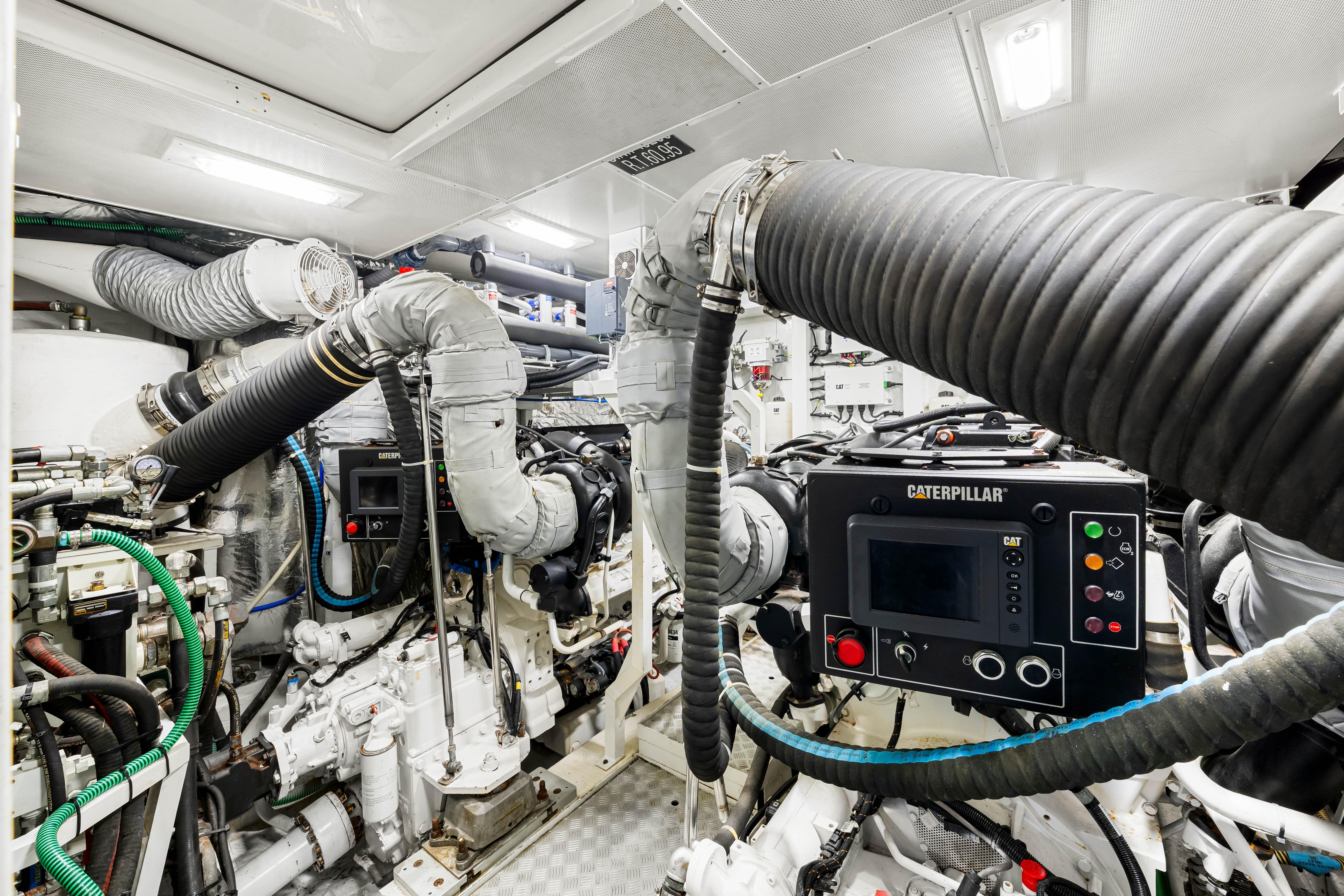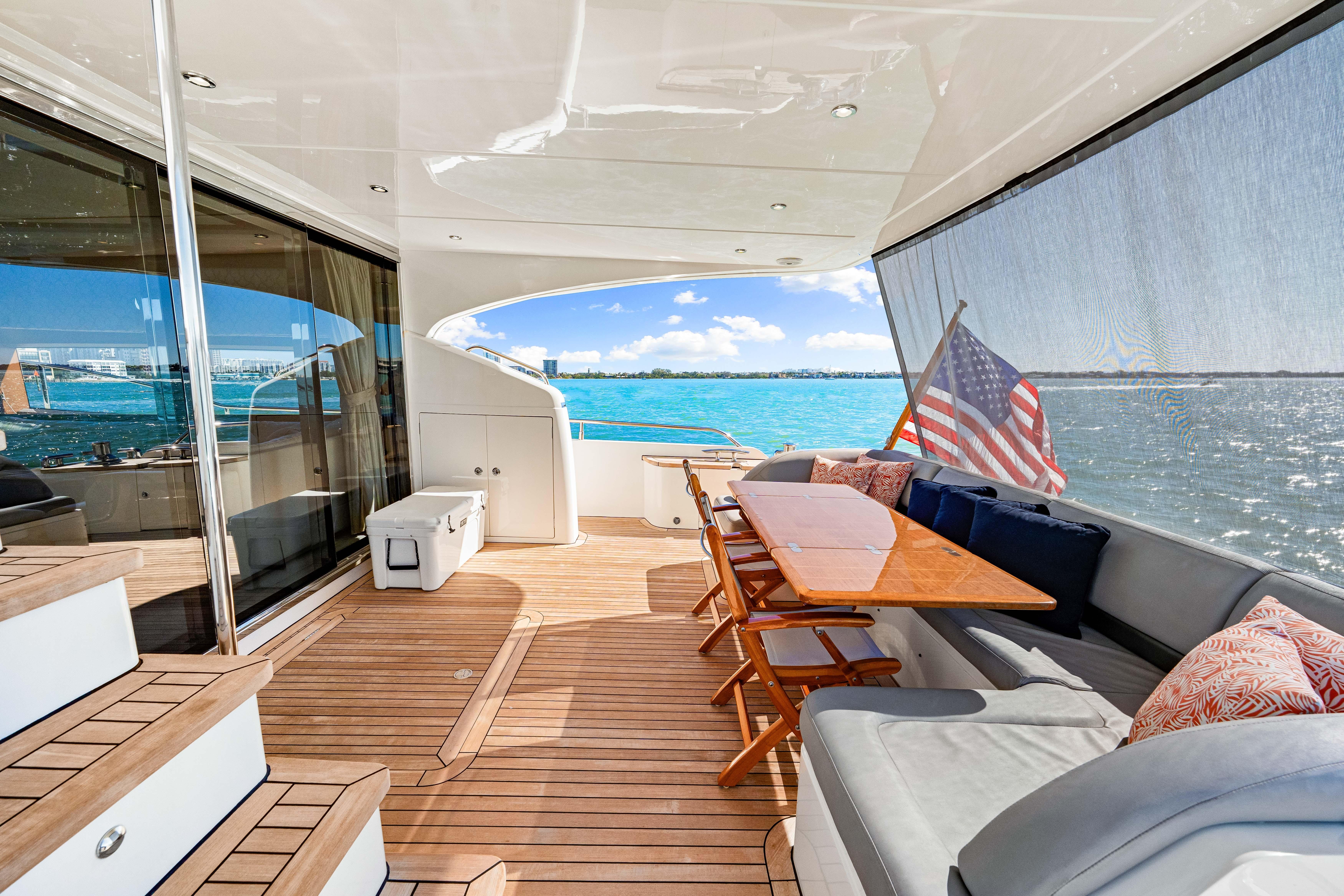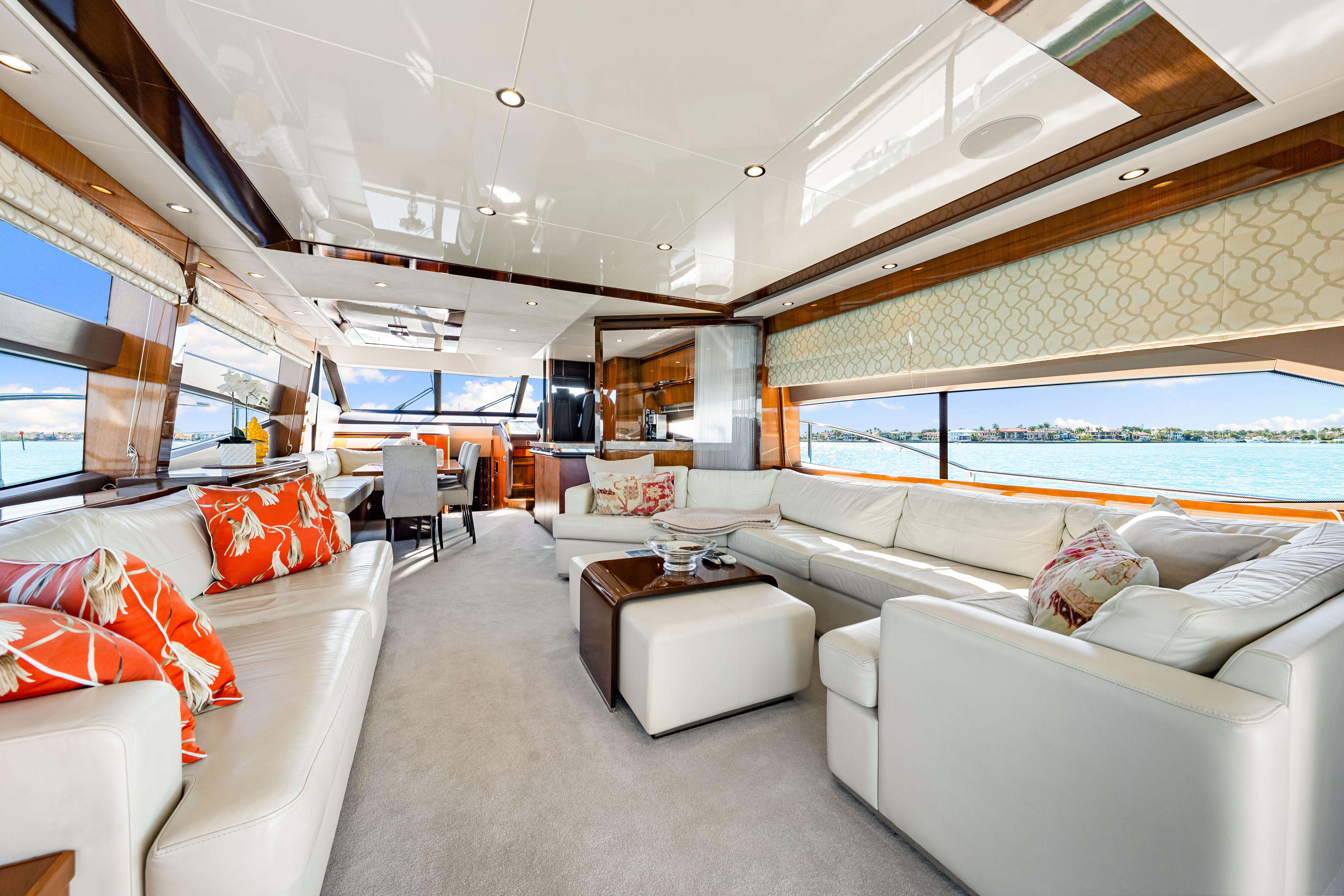 Fortunato has a luxurious interior design with upgraded TV and design features. Powered by the always reliable twin CATERPILLAR C32A 1622hp each, she sports new upholstery in 2020, new chillers in 2023, new covers and bimini (2025), new washer and dryer (2024), New refrigerator (2024), and all new much thicker teak decks installed in 2023 in Fort Lauderdale.