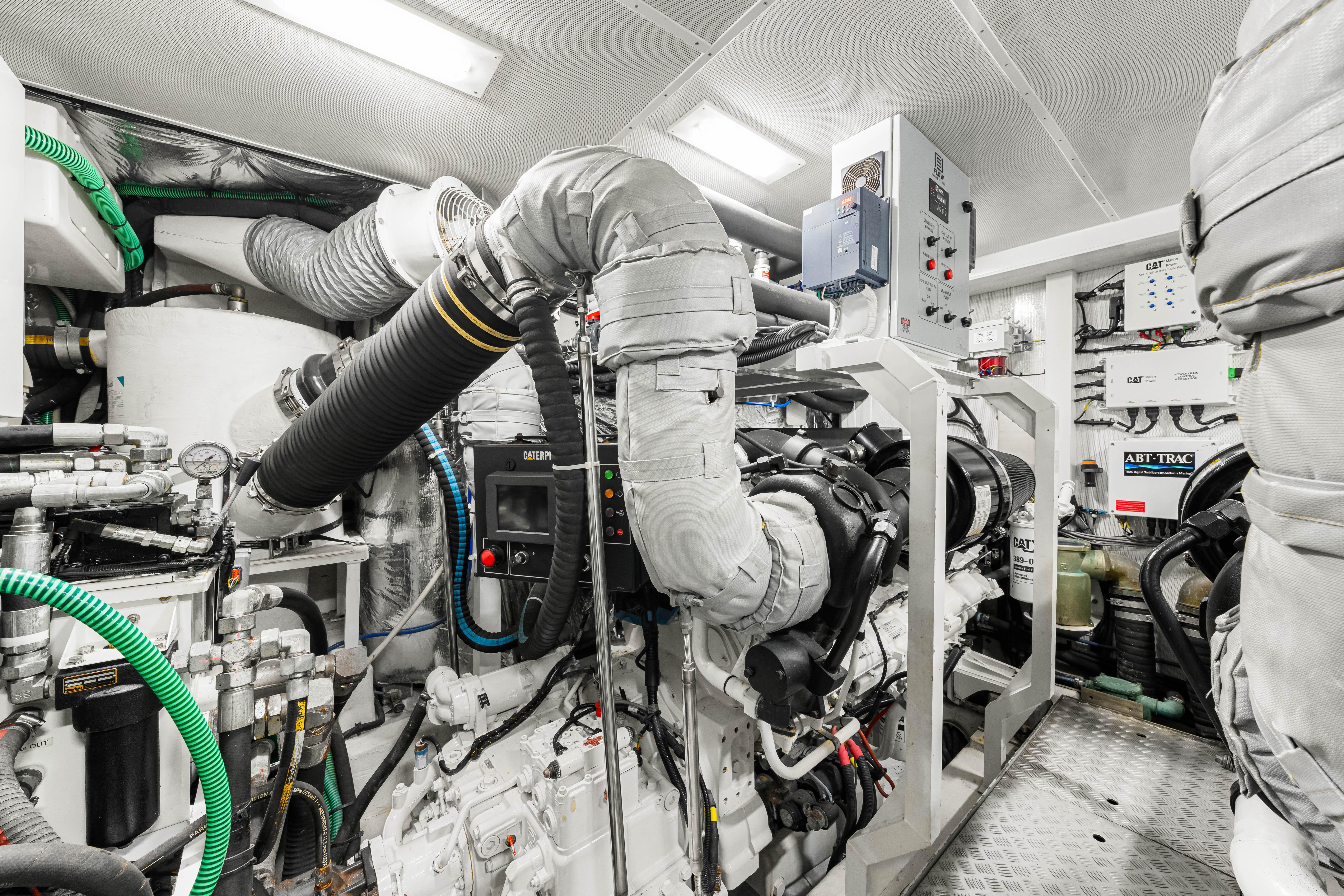 Hydraulic system consisting of separate engine driven hydraulic pumps on each engine with cross connections allowing any system to be supplied with variable speed hydraulic bow thruster in place of standard hydraulic power from either engine. Includes hydraulic windlass and Hydraulic Stern thruster (Variable speed); the model is TRAC Star 6X fin stabilizer system with inline Parker silencer. This system also has an electrically driven pump that runs the stabilizers while anchored if needed.