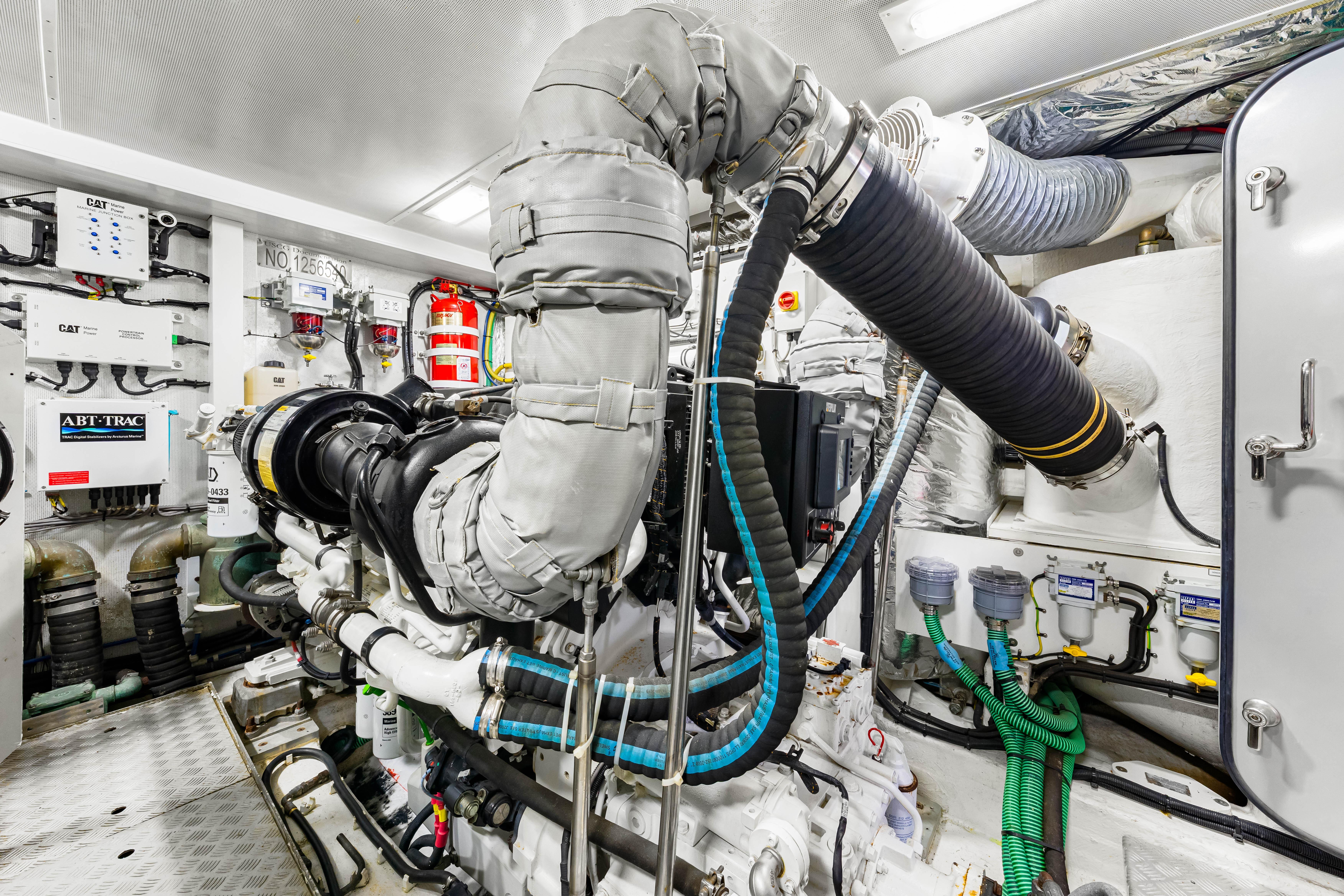 Layout incorporates 4 staterooms and 4 heads: master mid ship, port and starboard side twin berth cabins and VIP forward plus a crew cabin with head for up to 2 with separate aft entry. Duty is paid and this yacht is US Flagged.