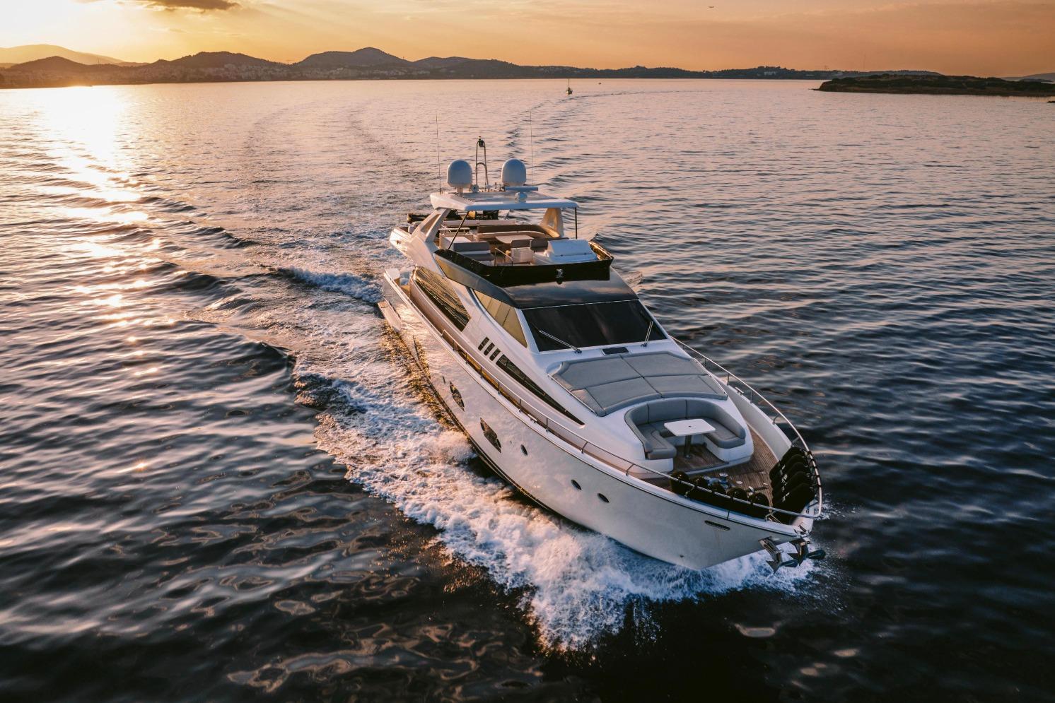 The Ferretti 800 (2010) is an elegant Italian motor yacht that offers an excellent balance of performance, comfort, and timeless design. Styled by Zuccon International Project, she features sleek exterior lines and a warm, refined interior finished with quality materials. The yacht accommodates guests in four well-appointed cabins, complemented by separate crew quarters, ensuring privacy and practicality for longer stays on board. Powered by twin MAN V12 diesel engines with inboard shaft drive, she cruises comfortably at 24–27 knots with a top speed of approximately 30–31 knots. Bow and stern thrusters, fin stabilizers, and a solid hull design provide smooth handling and confident cruising. Outdoor spaces include teak decks, a spacious cockpit, and a hydraulic bathing platform, while inside she is equipped with air conditioning, a fully fitted galley, and modern navigation and entertainment systems. Well built, stylish, and easy to live with, this Ferretti 800 is an excellent choice for owners seeking a high-quality motor yacht for cruising and entertaining.