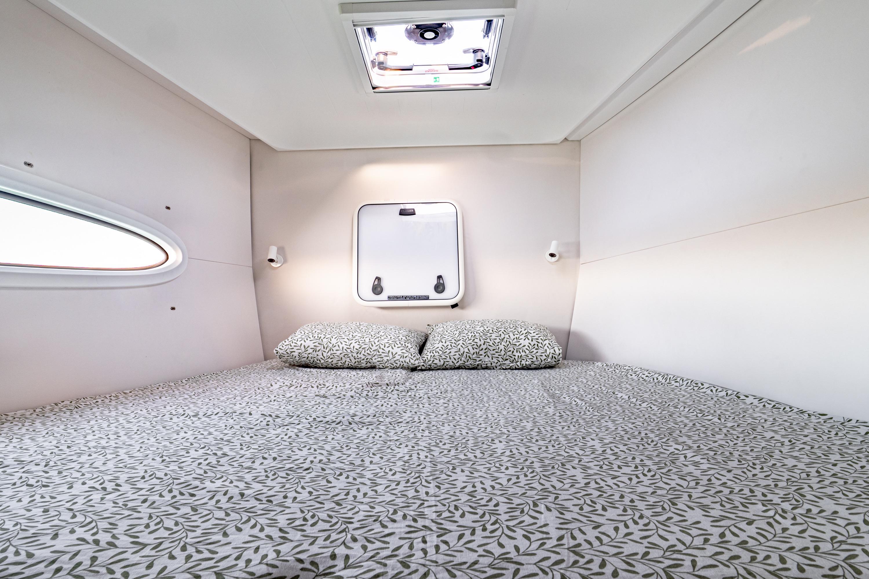 Inside, the tone is warm and modern—ash timber finishes, bright saloon sightlines, excellent ventilation, and a layout that flexes with how you cruise. The three-cabin, three-head arrangement is designed for privacy and livability, with dry-bath style heads and walk-in showers, while the owner’s area is especially clever: a true master cabin for everyday comfort, plus a wardrobe/dressing space that can convert into extra berths when friends or family join the adventure. This is a boat that can be quiet and private for two, or easily expand for a full crew when the itinerary demands it.