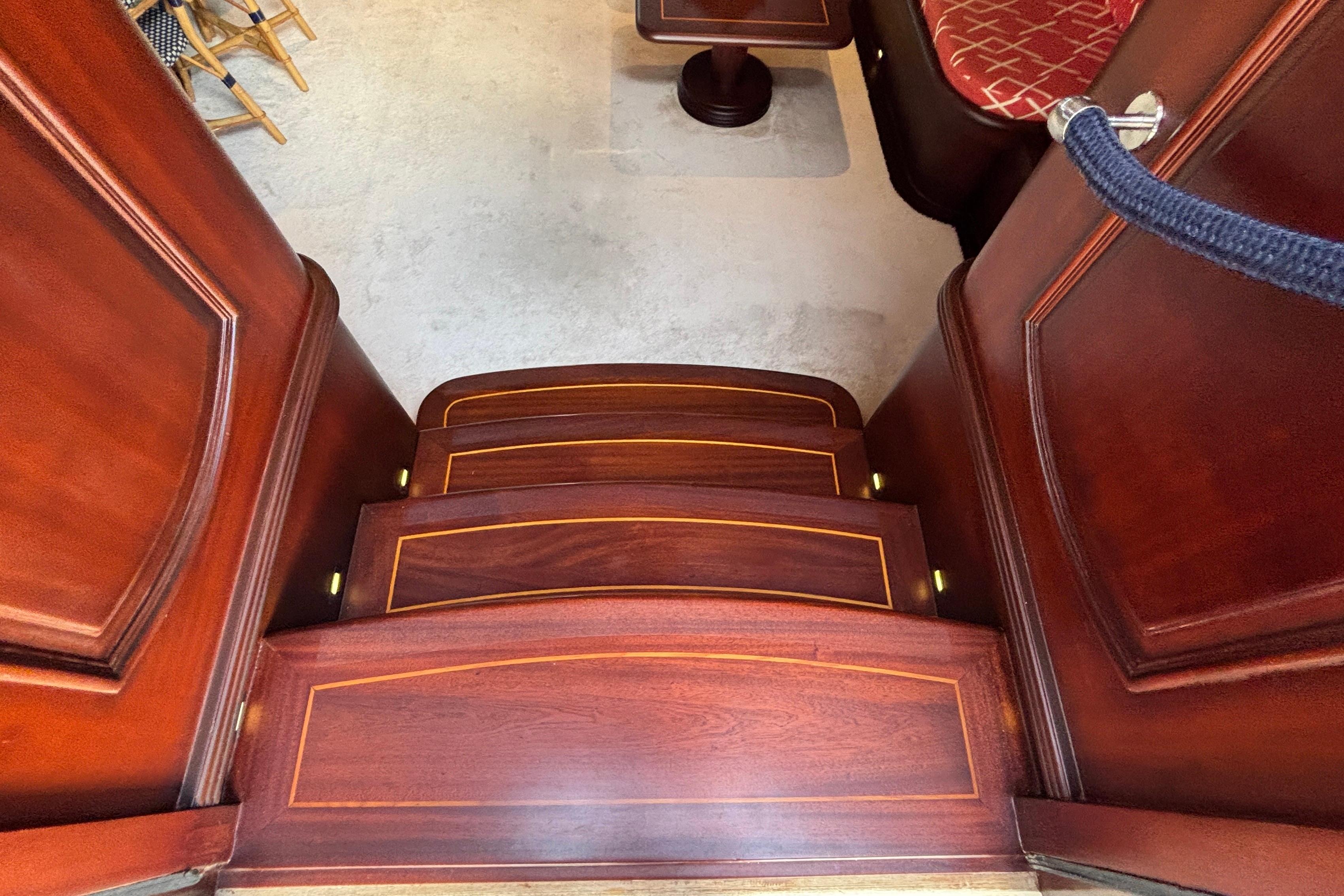 Hull and superstructure in steel, superstructure covered with mahogany wood. The deck is