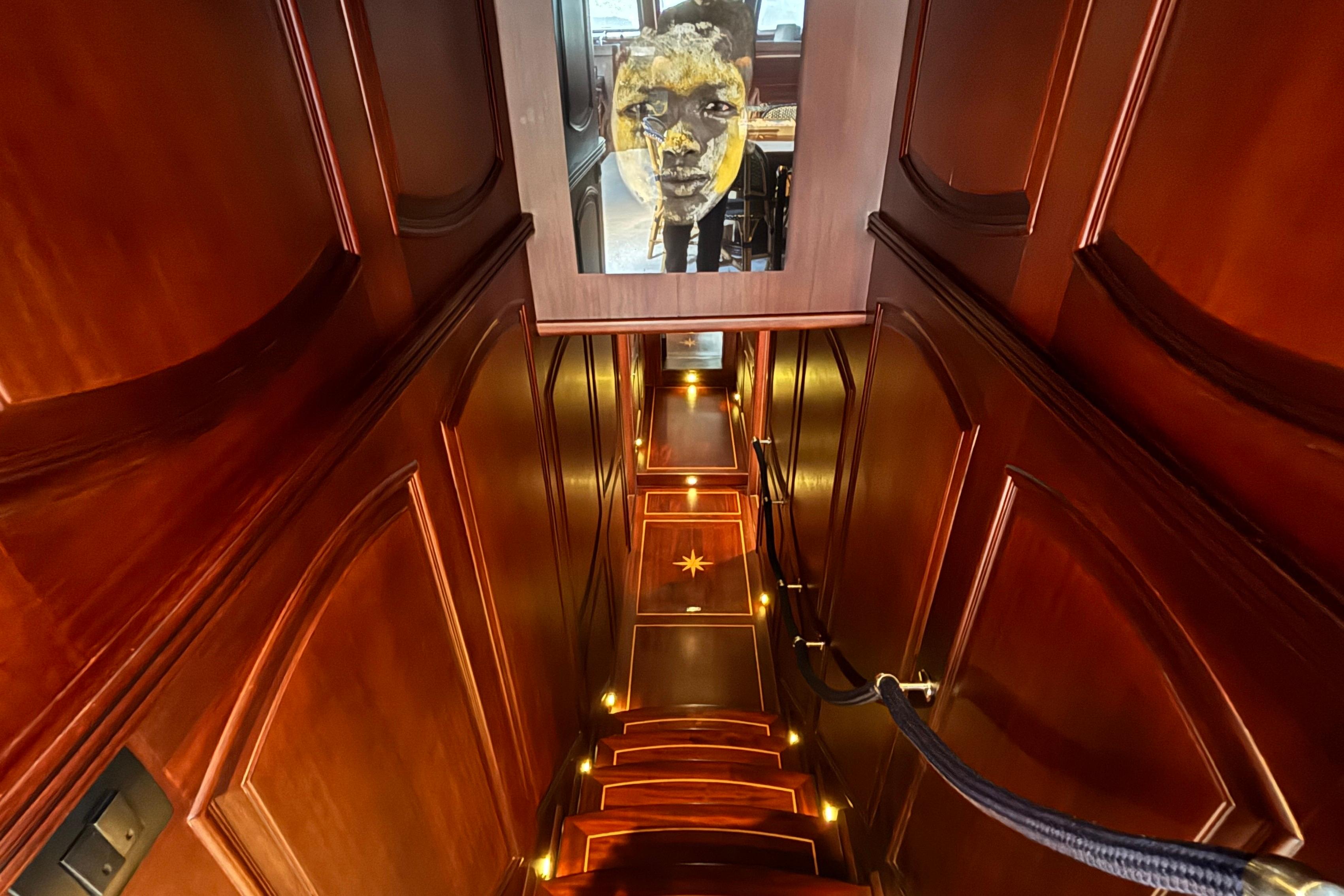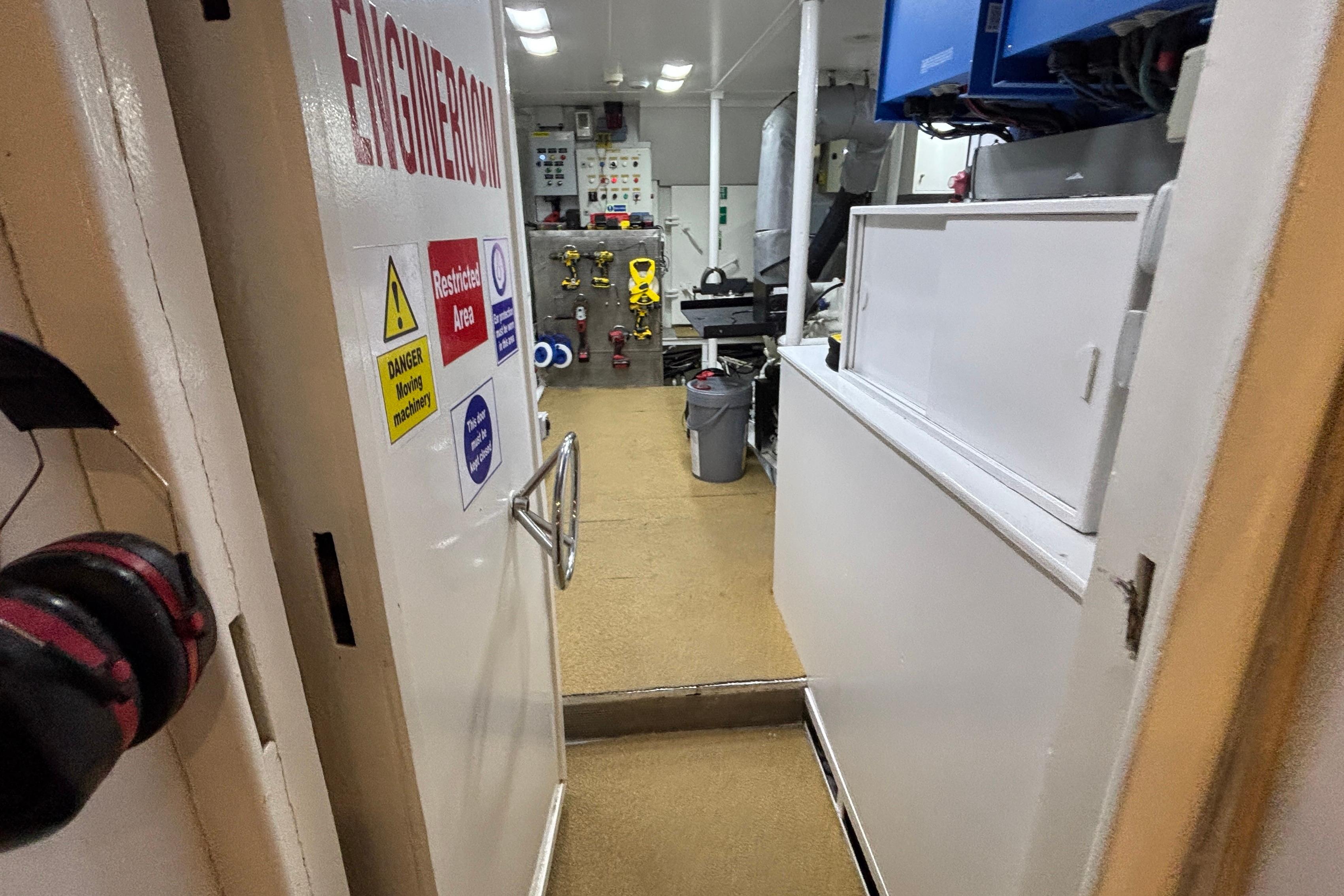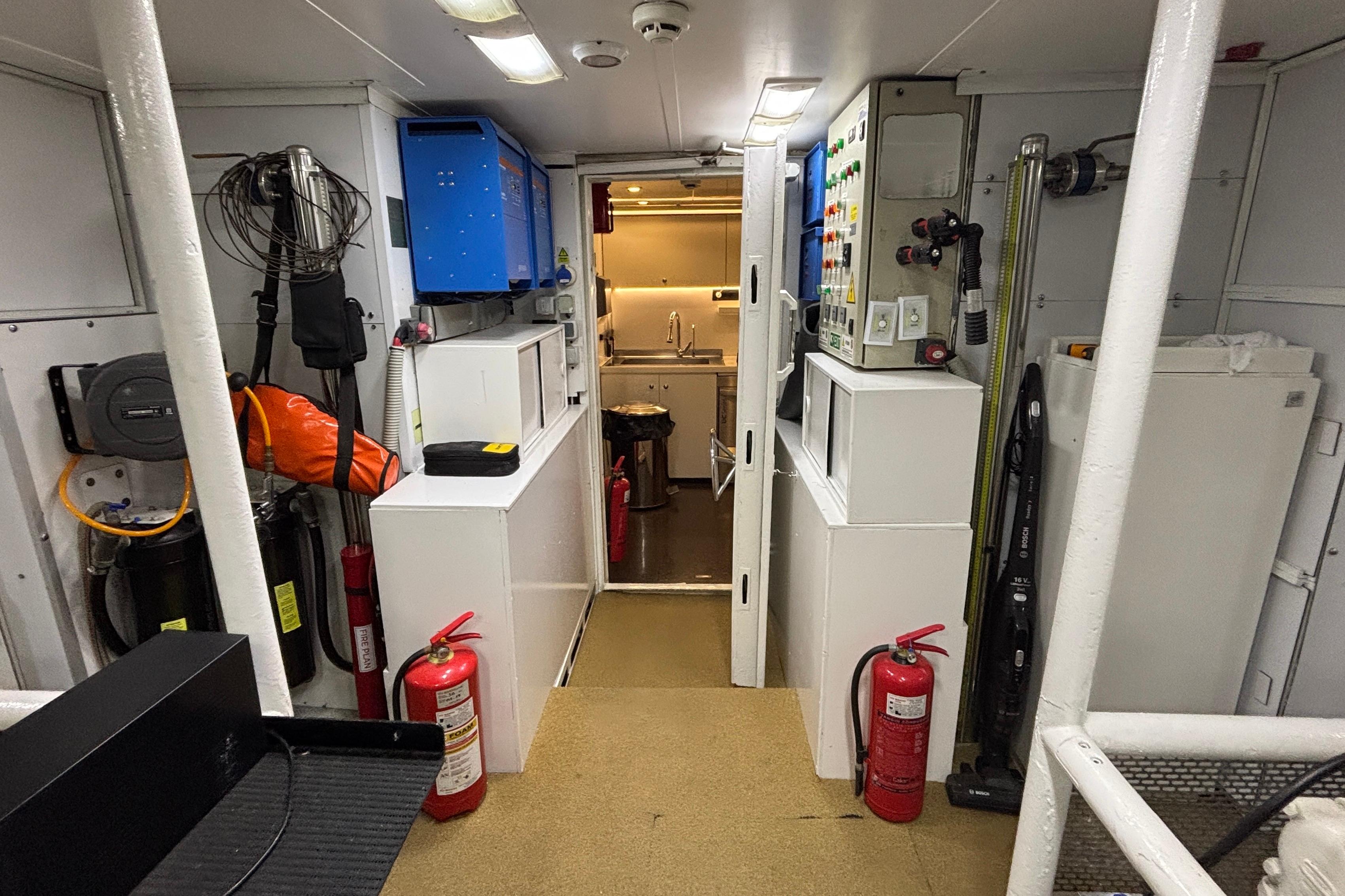to one of the storage areas in the bilge for the diving equipment and another bilge