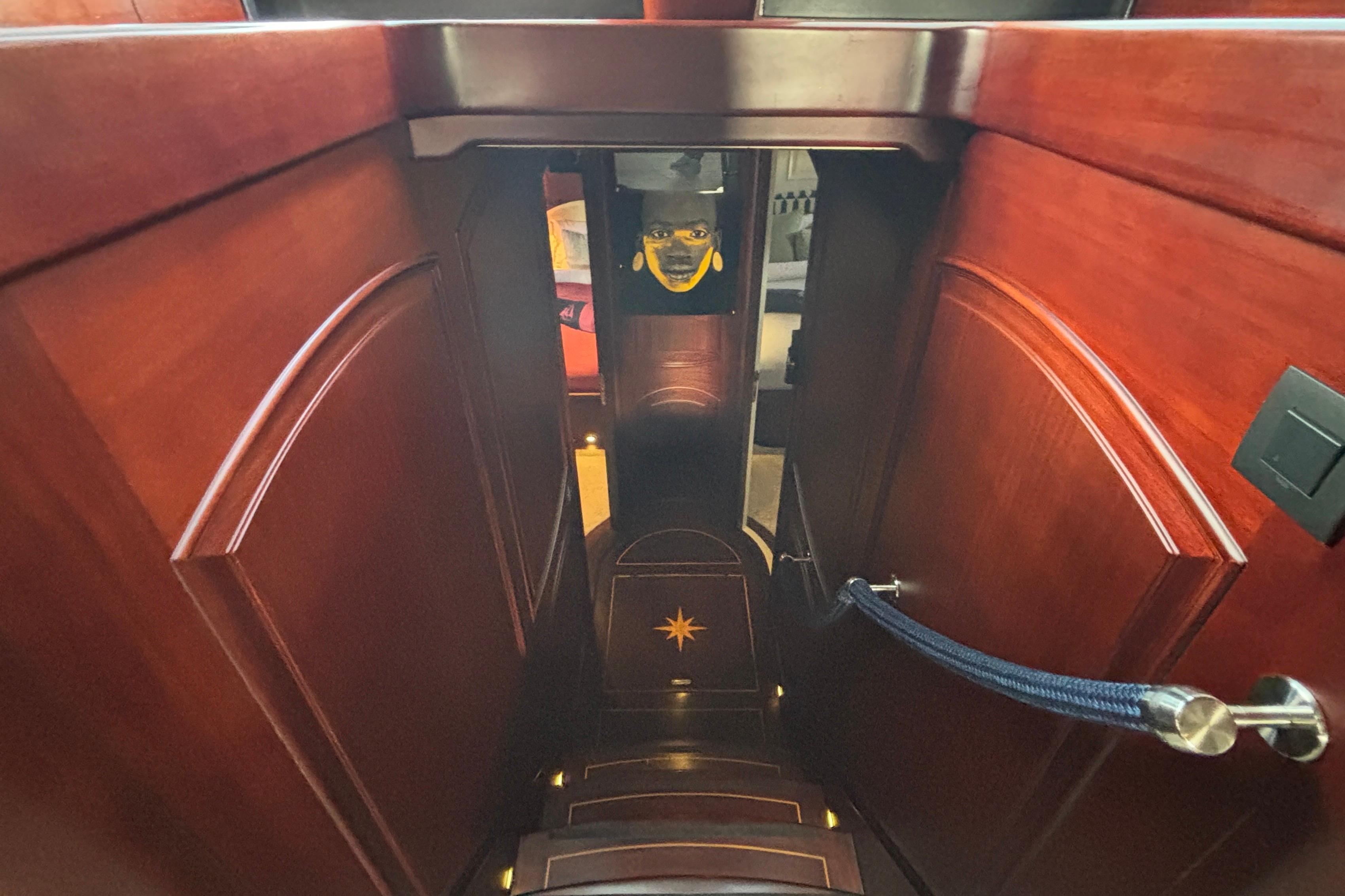 crew sleeps in four cabins with two bathrooms for the crew. The crew department is at the