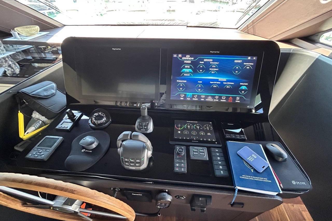- Flybridge contron station: n.1 multi-funcion Raymarine 22" display for Gps Plotter, Domotics control and visualization of engines data; n.1 Volvo 7" screen for display and regulation of engines data.