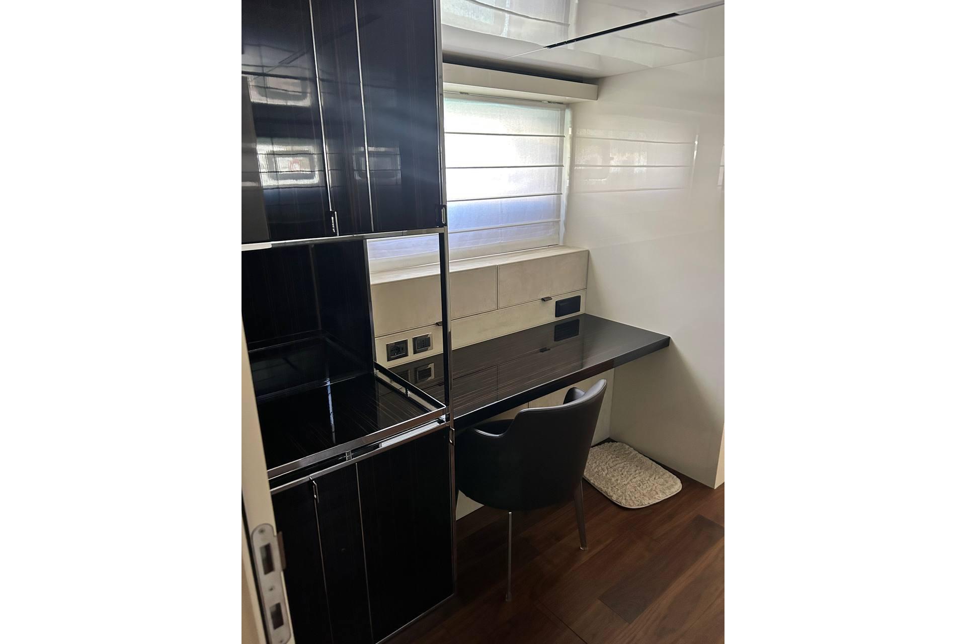 - Main deck control station: n.1 multi-funcion Raymarine 22" display for Gps Plotter, Domotics control and visualization of engines data; n.1 Volvo 7" screen for display and regulation of engines data. Pilot armchair in leather, with electric controls.