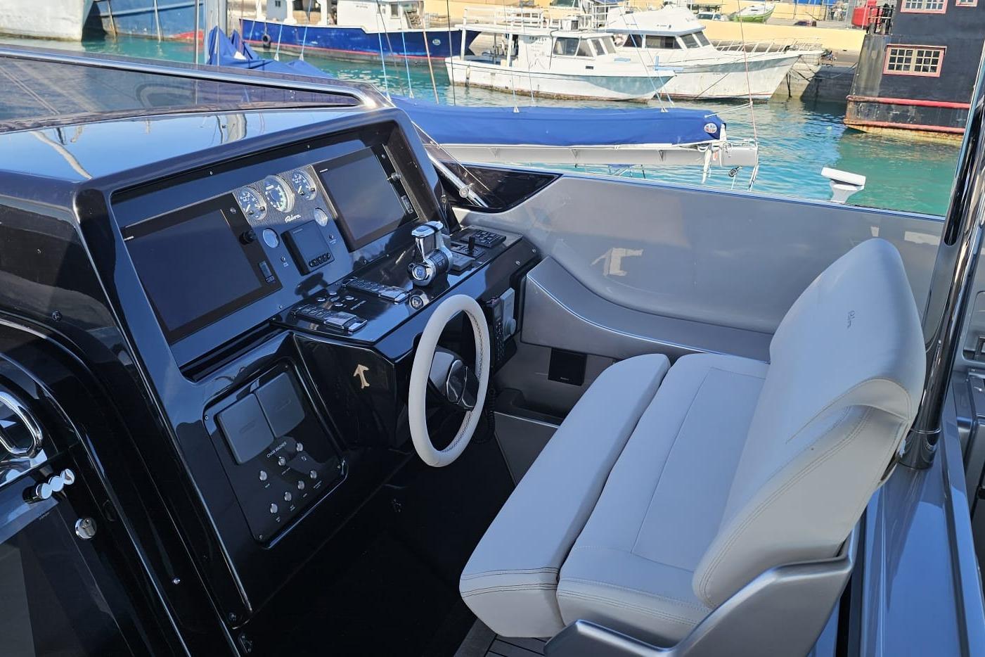 - Wheelhouse controls: horn, anchor windlass up/down (with chain counters), wiper and windshield wash, lights: compass, navigation, anchor. Bilge pumps. Engines monitors, engines throttles, engines start/stop, emergency stop, alarm knowledge and override, interceptors controls, bow and stern thrusters.