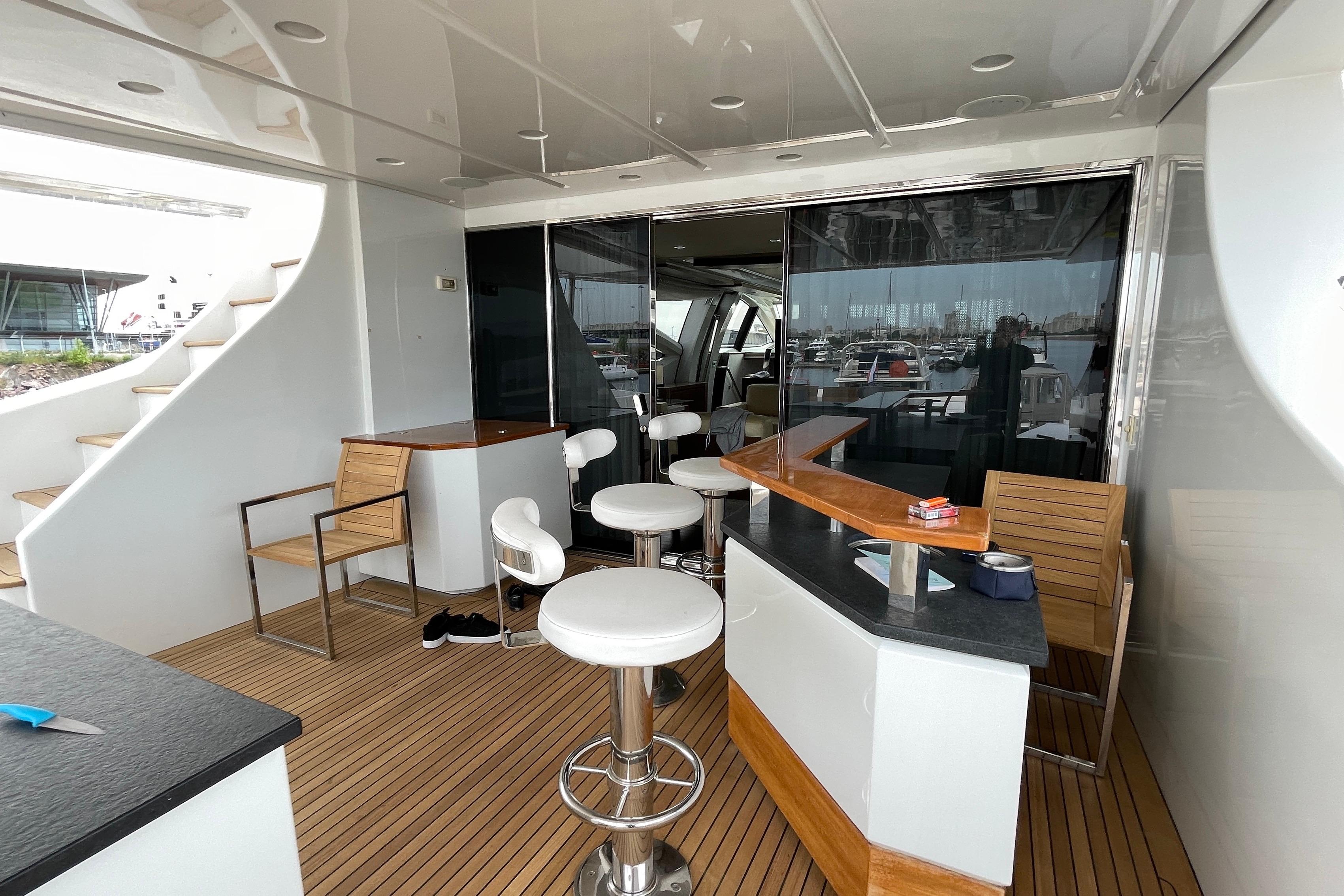 Very well equipped (including Seakeeper gyro stabilizers, powerful generators, sophisticated navigation system and a long list of other extras), this boat is probably your best choice among any other competitor.