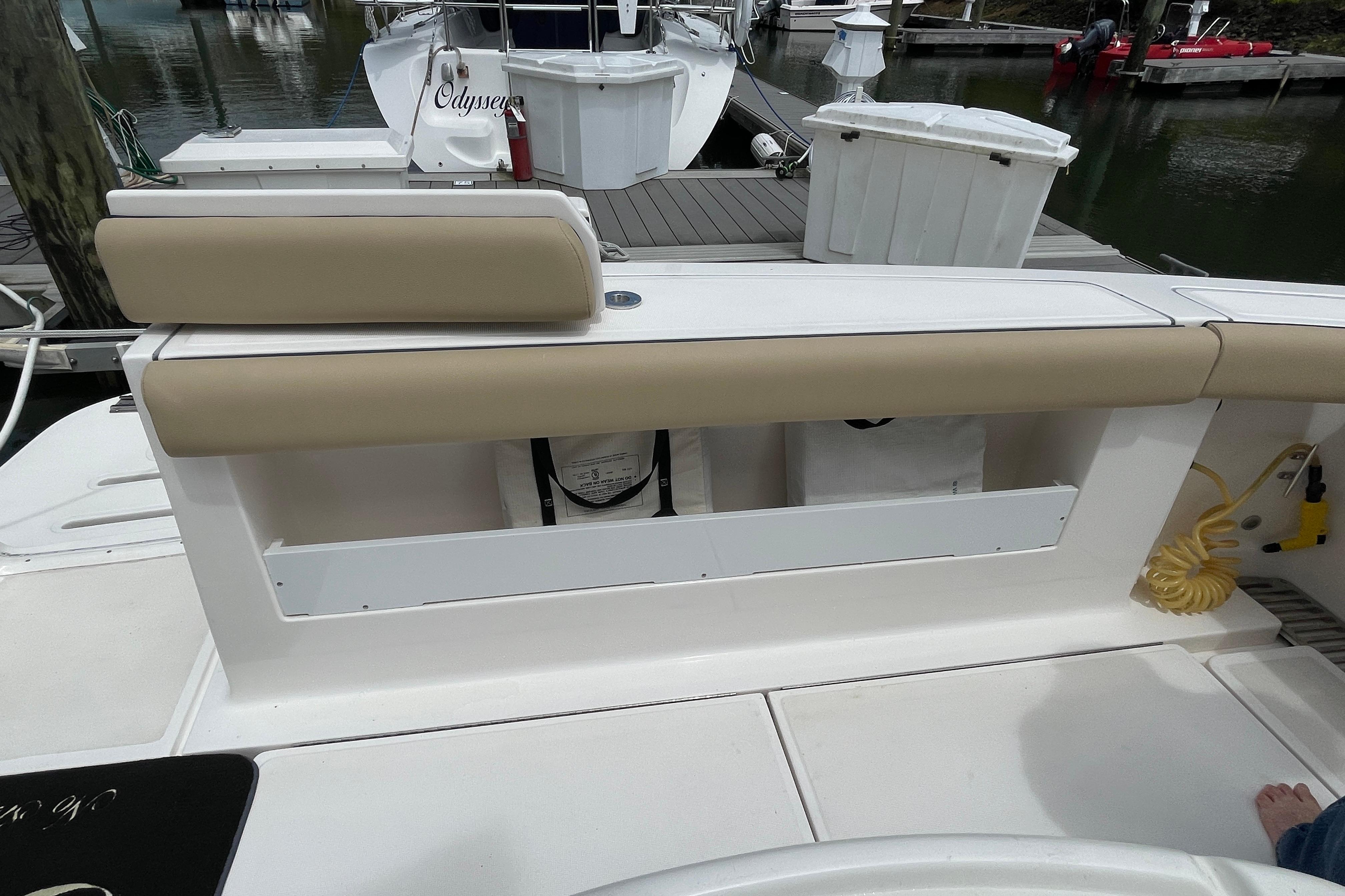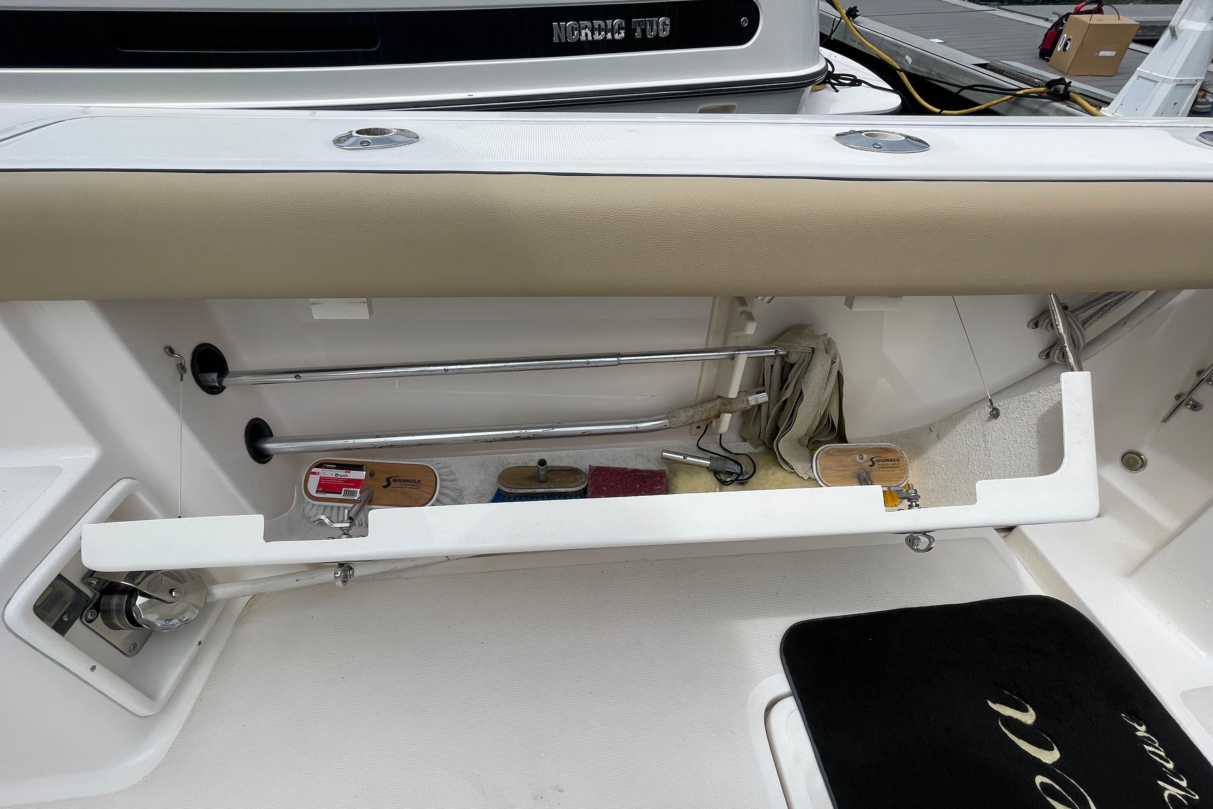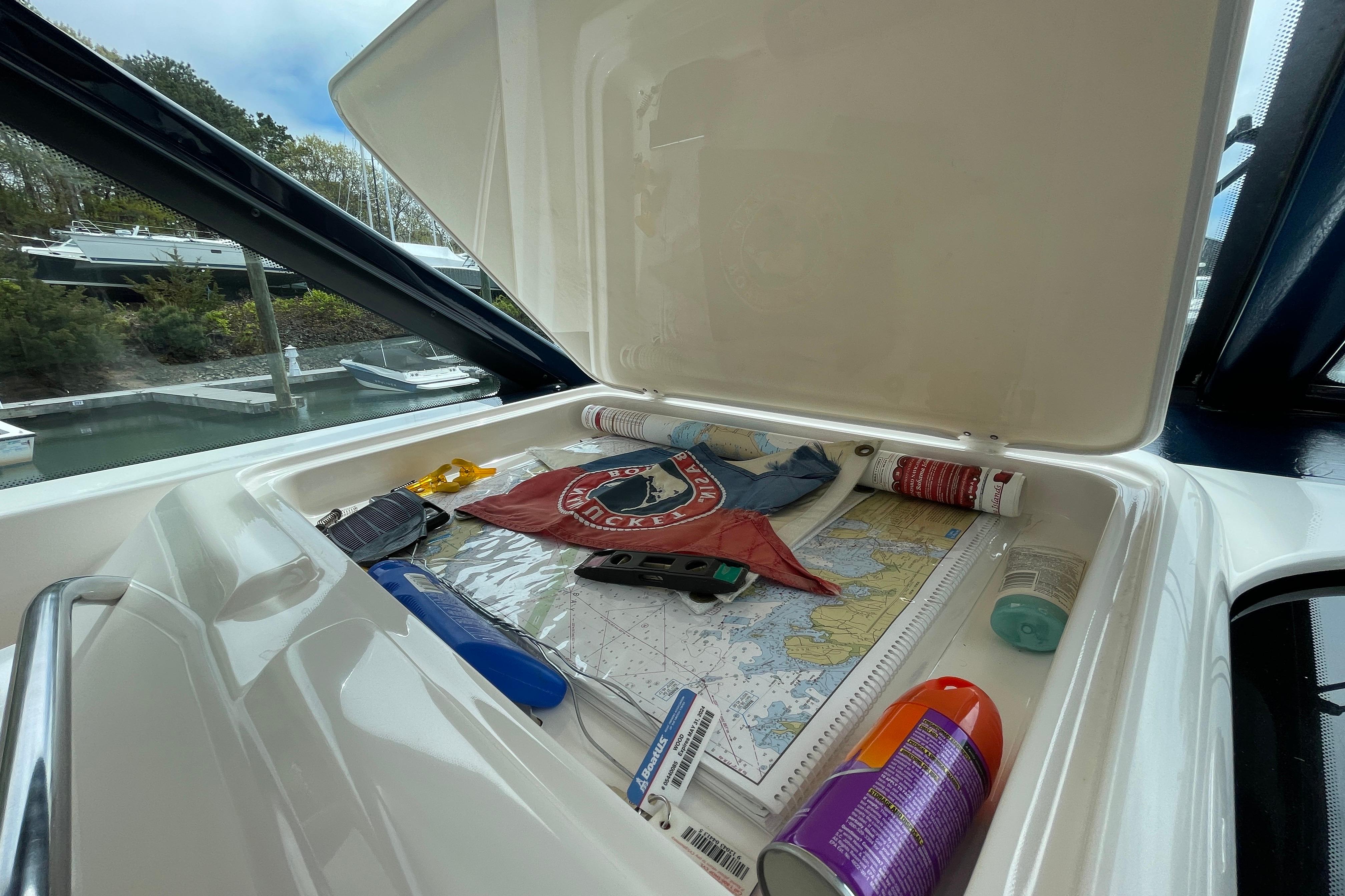 - Two (2) flush floor storage boxes. Large aft box has split hatches.