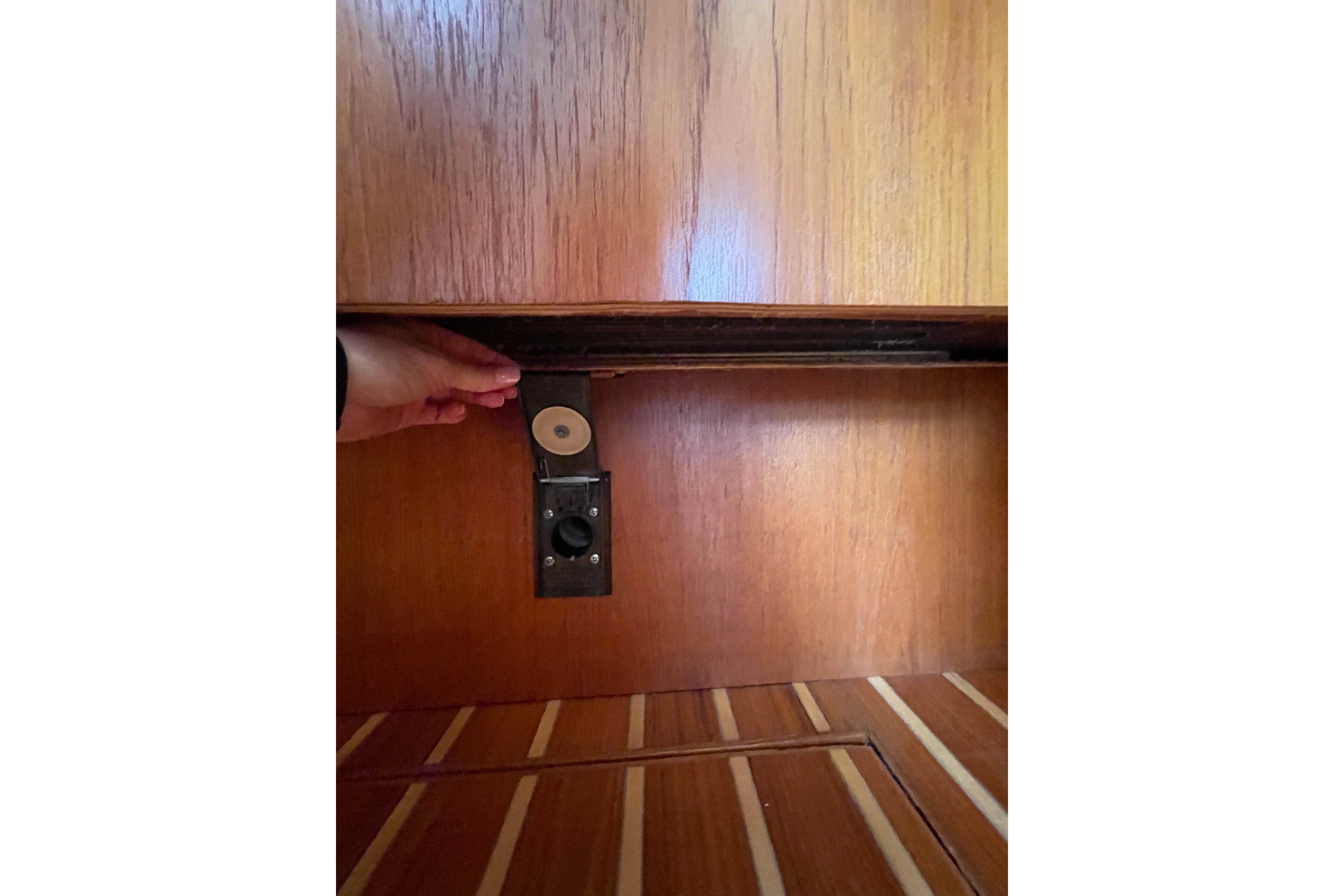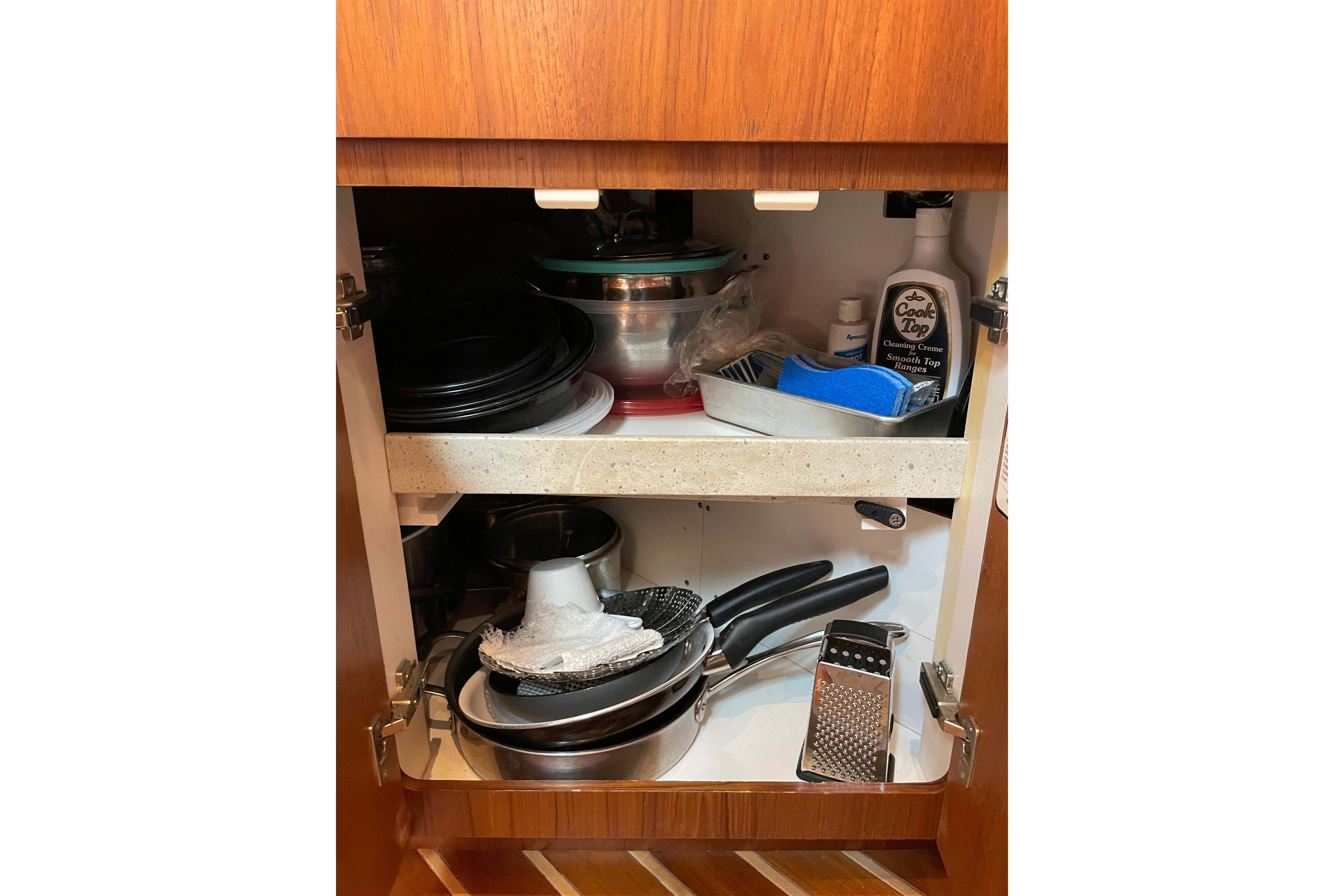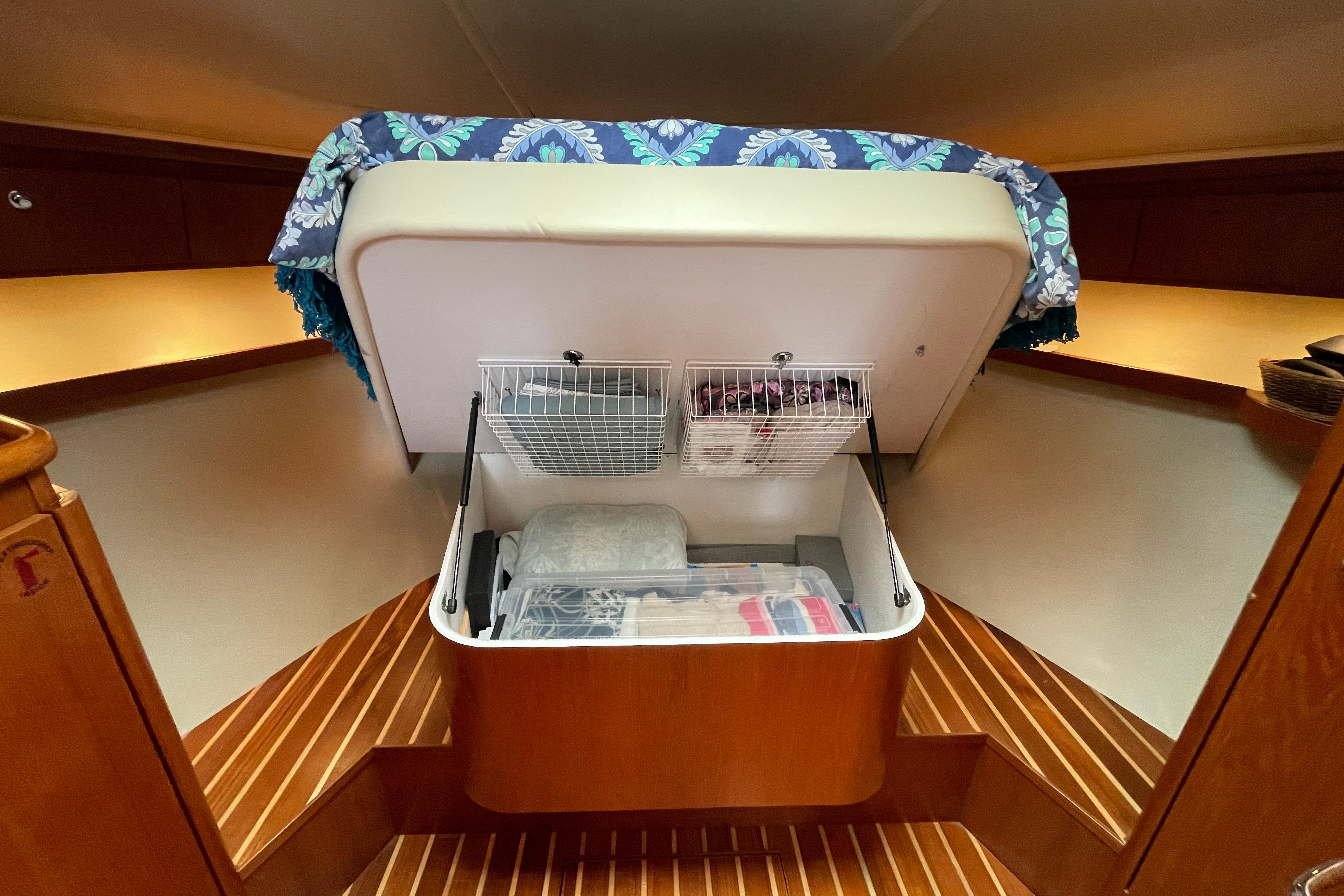 - Fiberglass companionway steps with teak hardwood treads and storage below