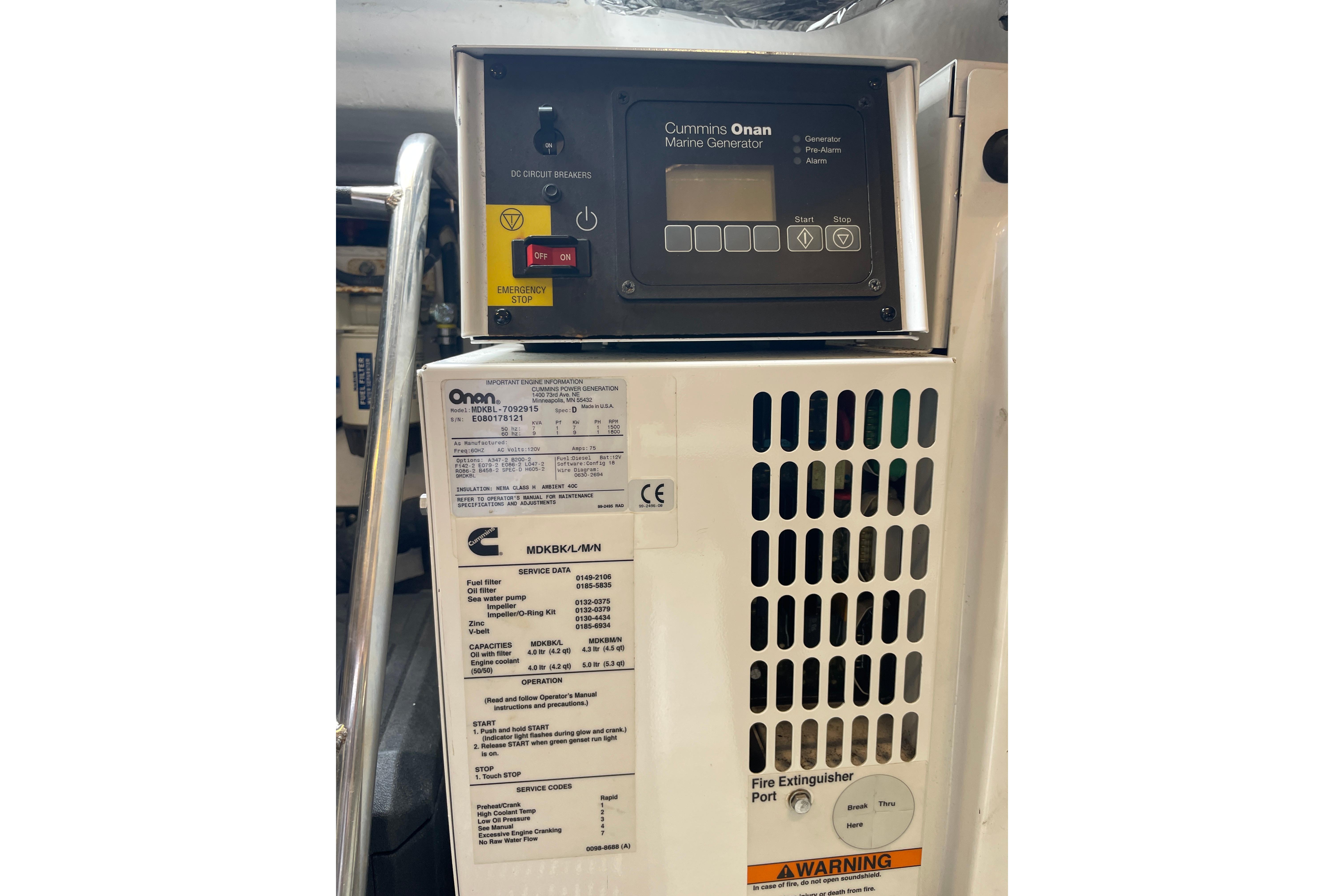 - Onan 9kw diesel generator with sound shield and indicator light at helm