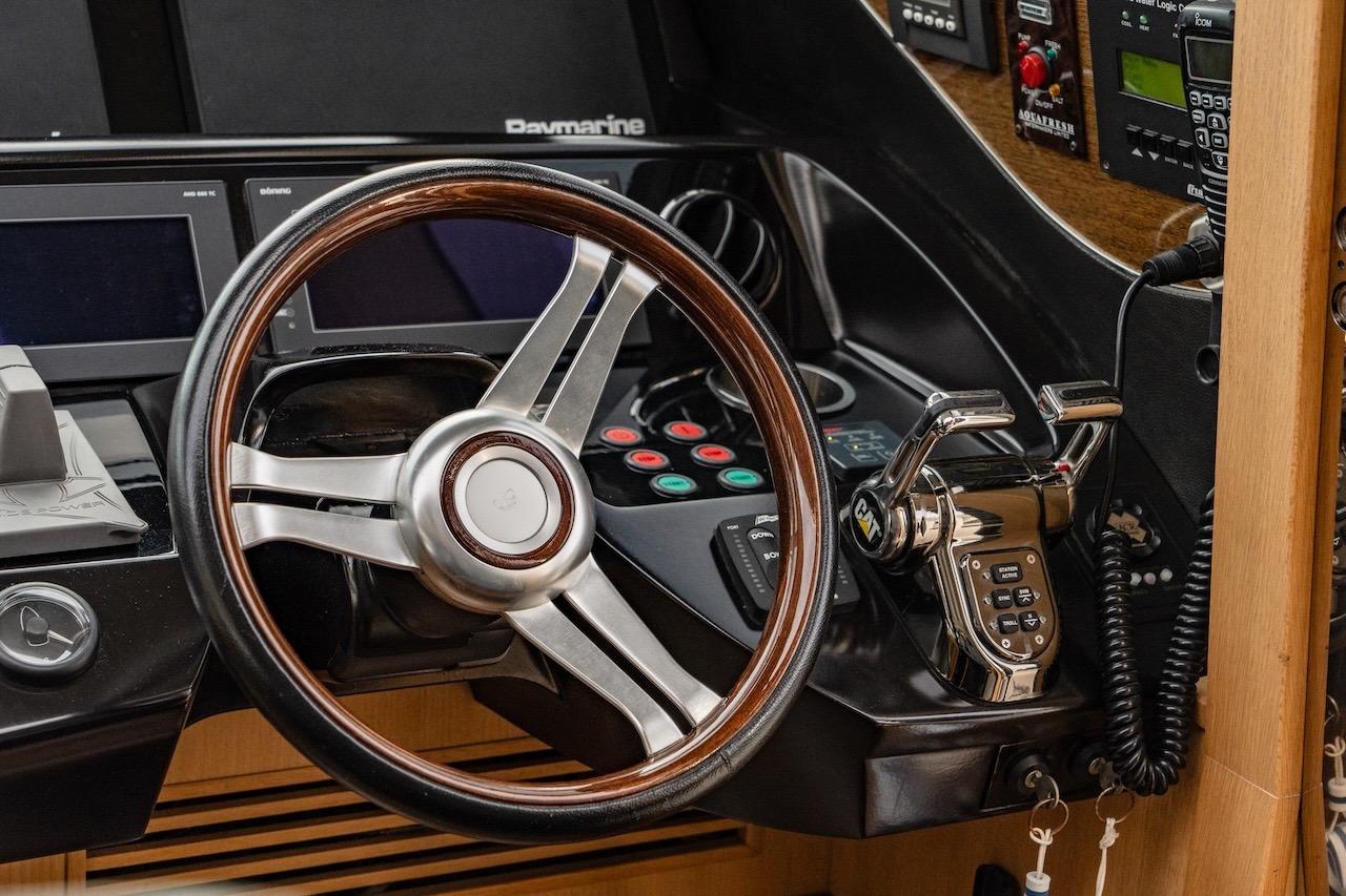 Her interior is finished in satin-finish Rovere oak, offering a classic yet contemporary feel. With its spacious 3-cabin-3-head layout, large electronically operated hardtop, and extensive recent technical upgrades, this vessel is ready for immediate seasonal use.