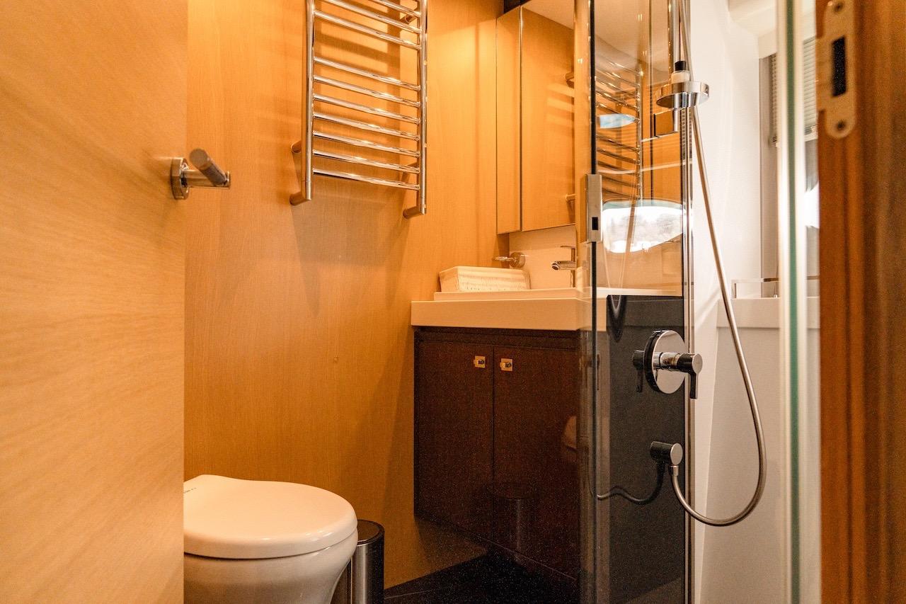 - Guest Cabin: Starboard twin berths that can convert to a double via an electronic sliding mechanism, featuring an en-suite.