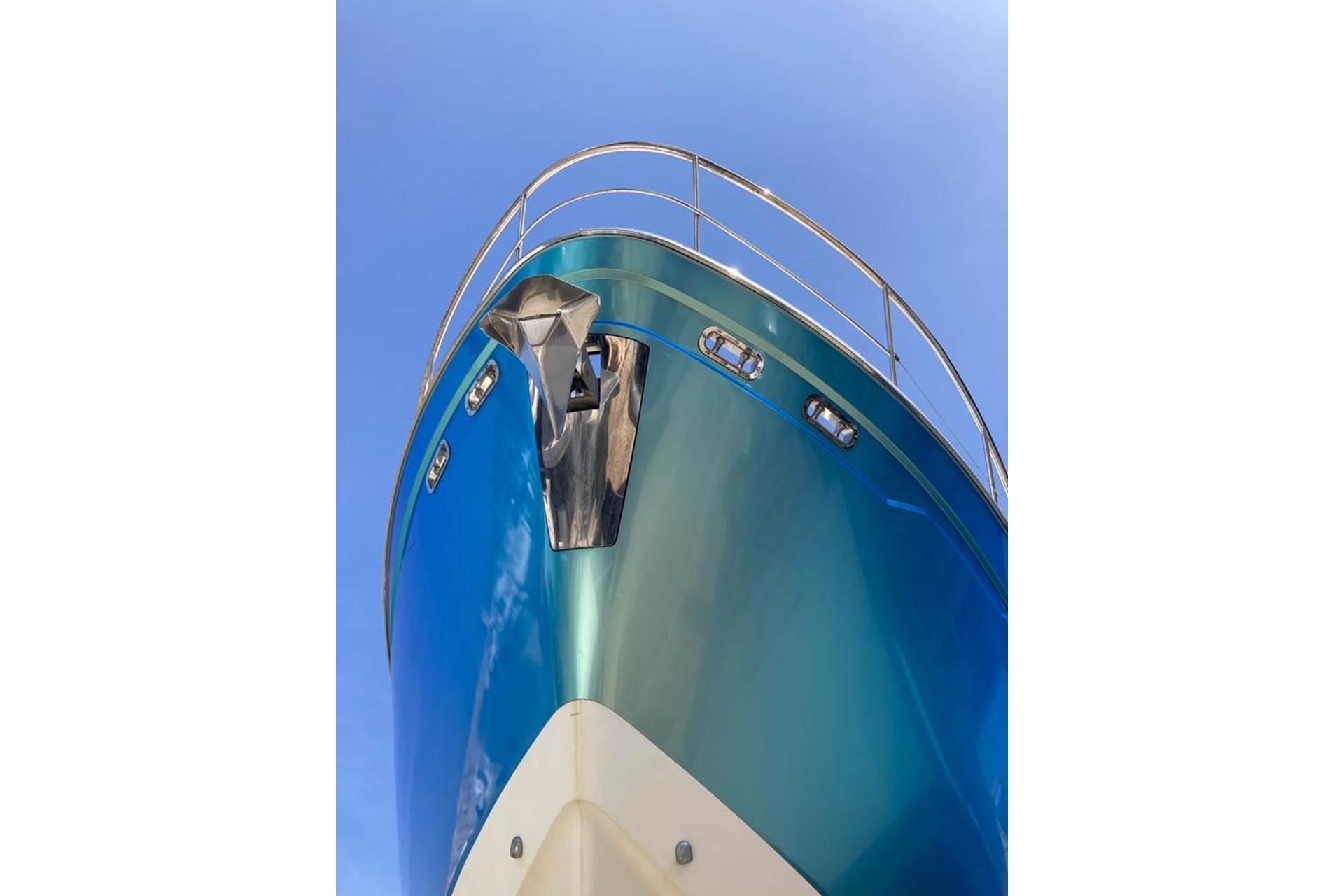 With an overall length of 23.08 meters and a beam of 5.42 meters, she offers generous interior volumes and expansive outdoor living areas. The flybridge provides a true open-air lounge with panoramic sea views, perfect for relaxing and entertaining guests.