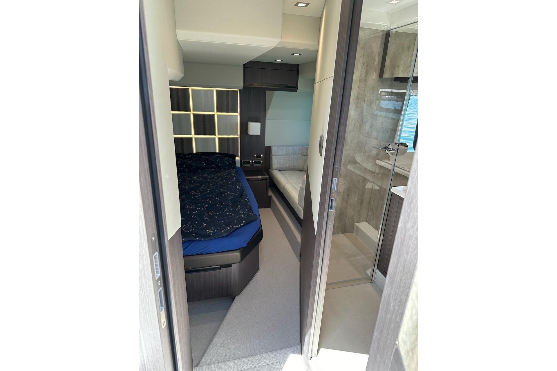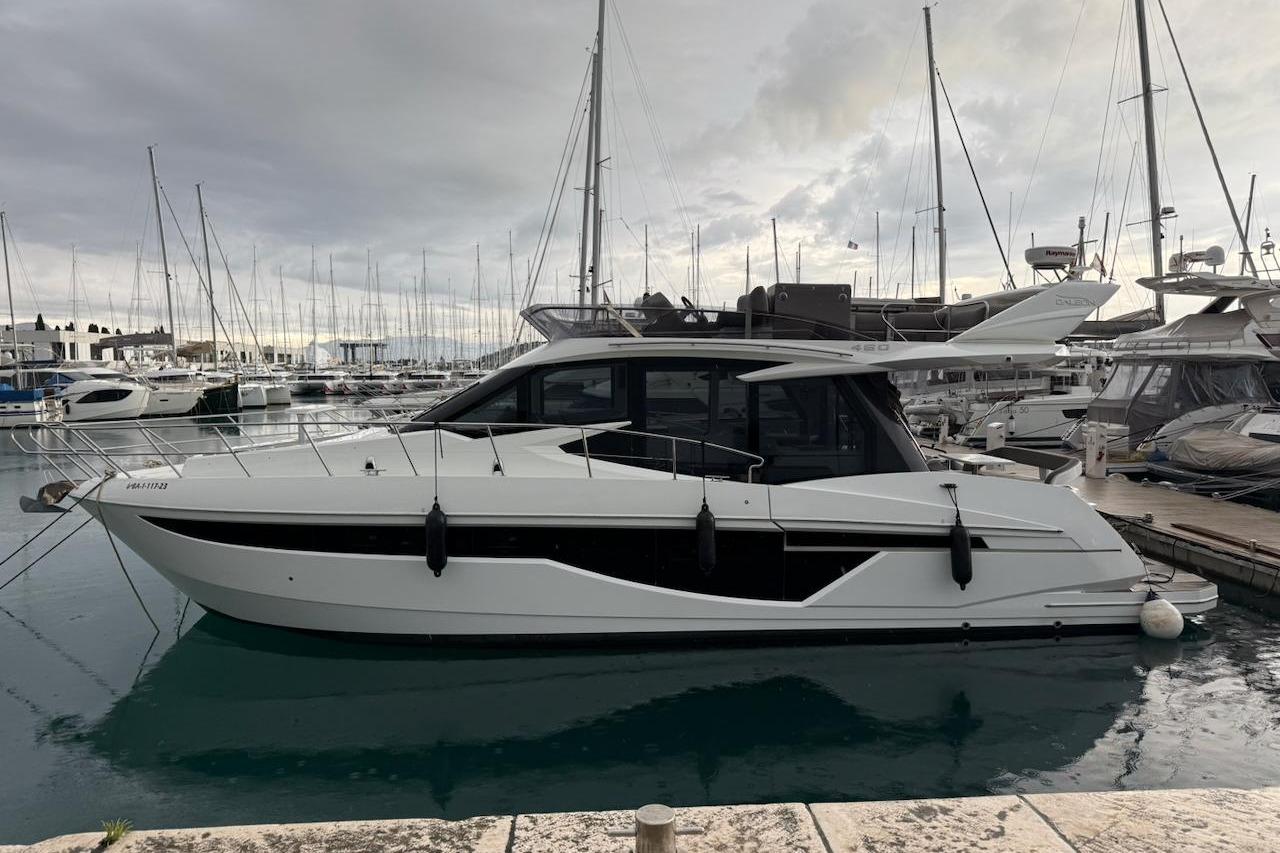 Introducing the stunning 2023 Galeon 460 Fly, a remarkable flybridge yacht that seamlessly blends luxury and performance. With an impressive overall length of 14.35 meters, this used vessel boasts a sleek fiberglass hull, ensuring durability and elegance on the water. Powered by twin Volvo Penta D8-600 inboard engines , each delivering 441 kW, and direct drive propulsion system, this yacht promises exhilarating performance and reliability, with 500 hours of use. Designed for comfort, the Galeon 460 Fly accommodates three cabins and two heads, making it perfect for family adventures or entertaining guests. The spacious layout allows for a seating capacity of up to 10, ensuring everyone can enjoy the journey together. Equipped with an electric windlass, this yacht simplifies anchoring, enhancing your experience on the water. Experience the perfect blend of style, comfort, and performance with the Galeon 460 Fly, your ideal companion for unforgettable voyages.