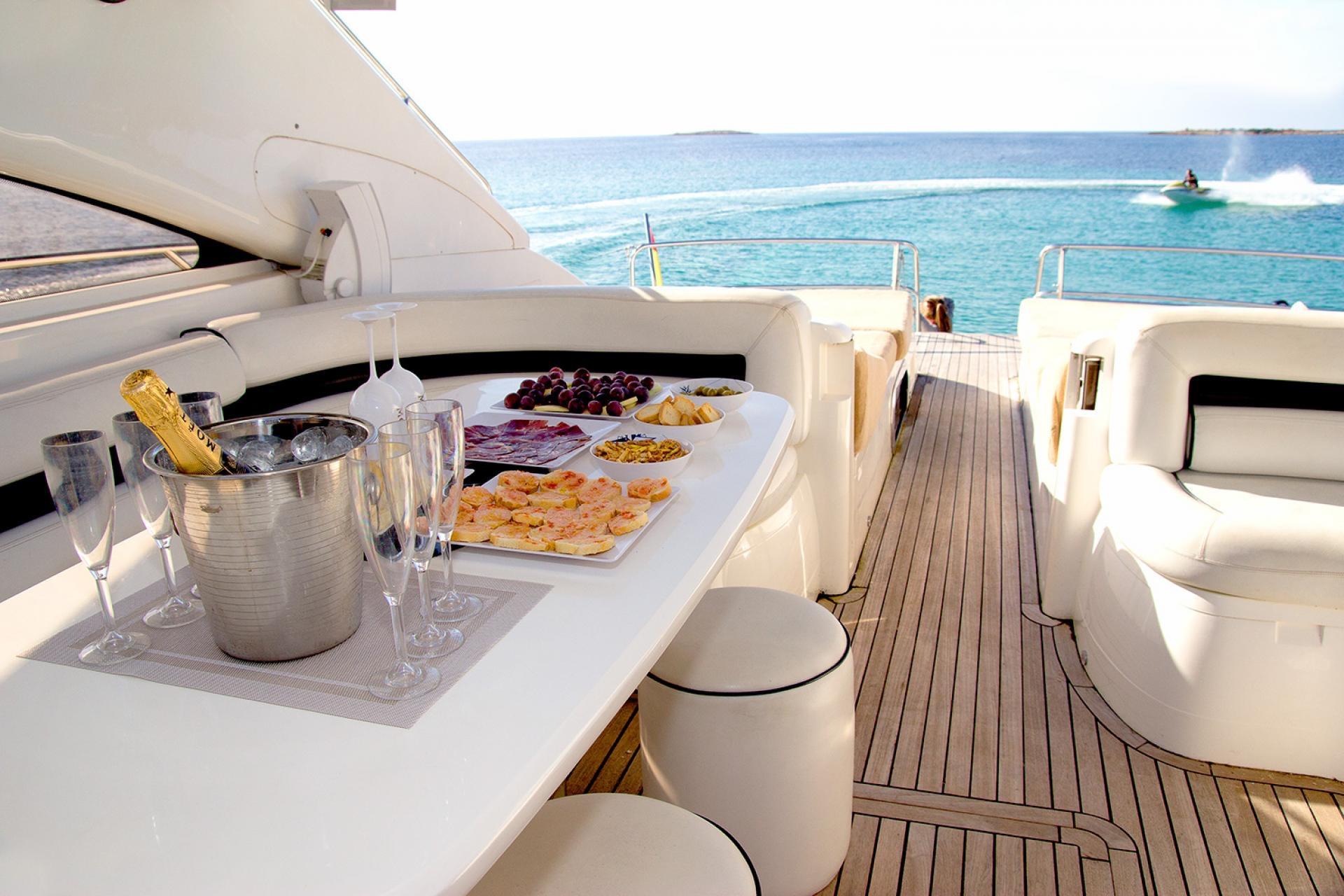 Designed for both stylish entertaining and comfortable cruising, the Princess V65 offers expansive cockpit spaces, generous sunbathing areas, and a refined interior layout that provides excellent accommodation for owners and guests alike. Her proven hull design delivers confident seakeeping and exhilarating performance, making her equally suited to private use or commercial operation.