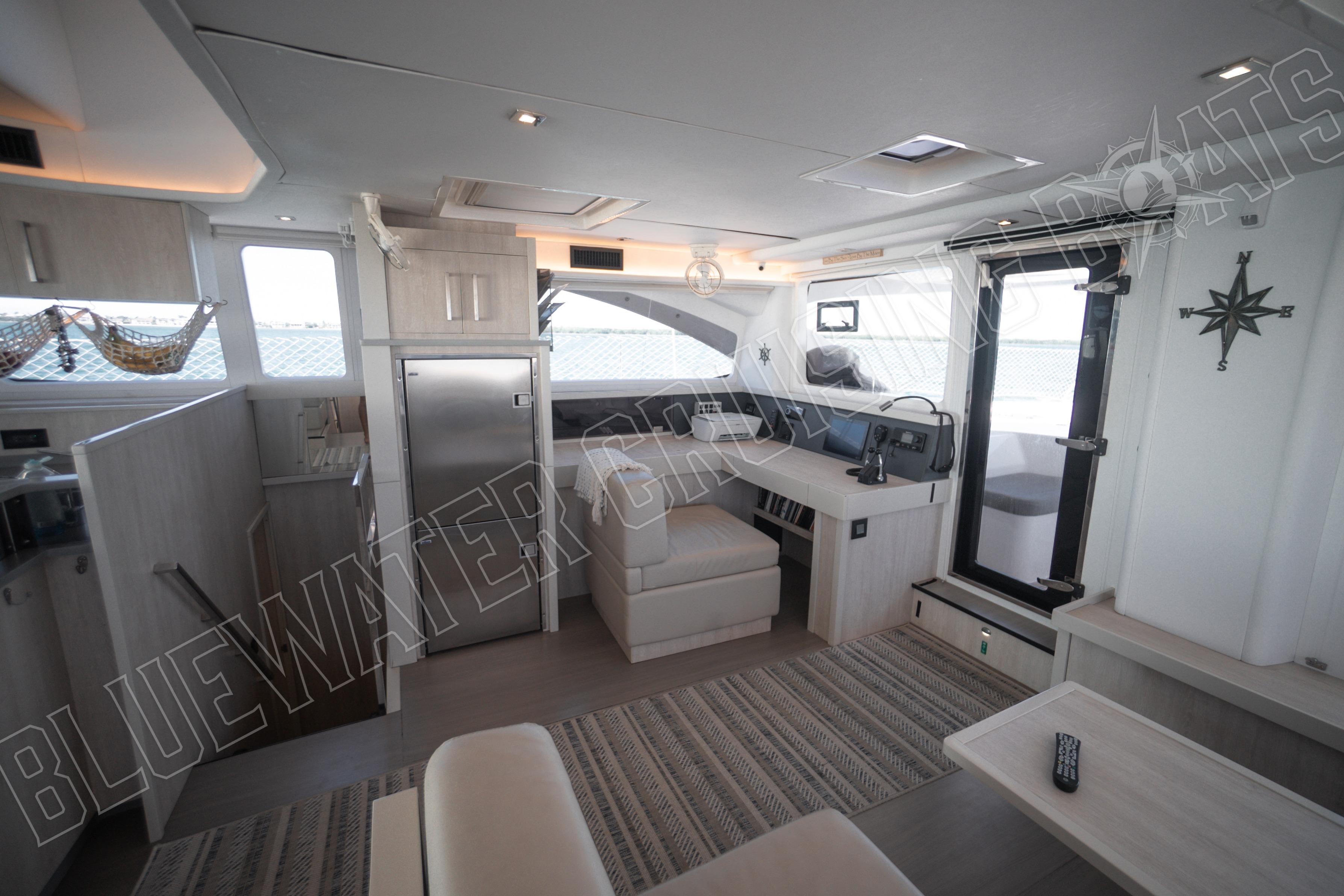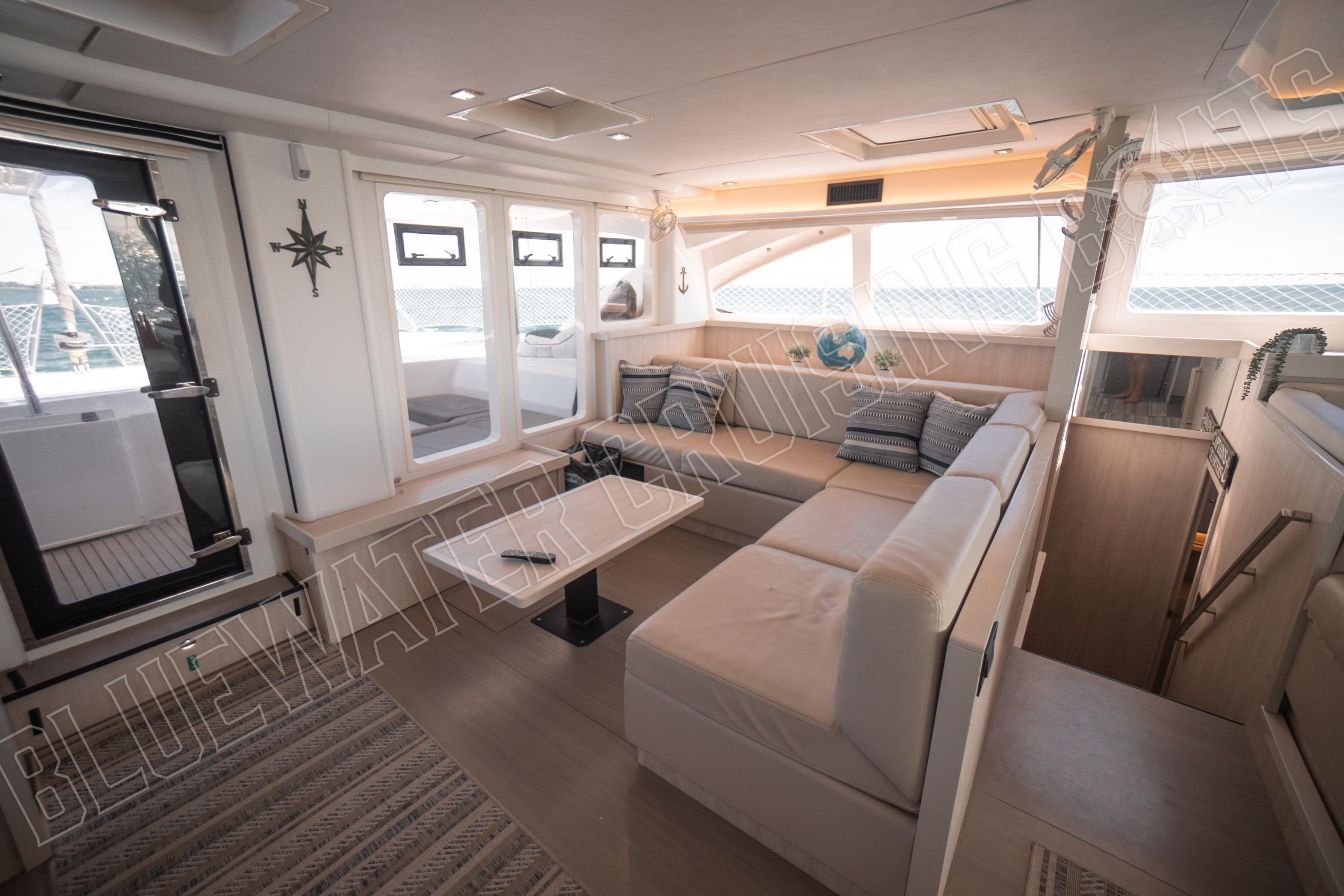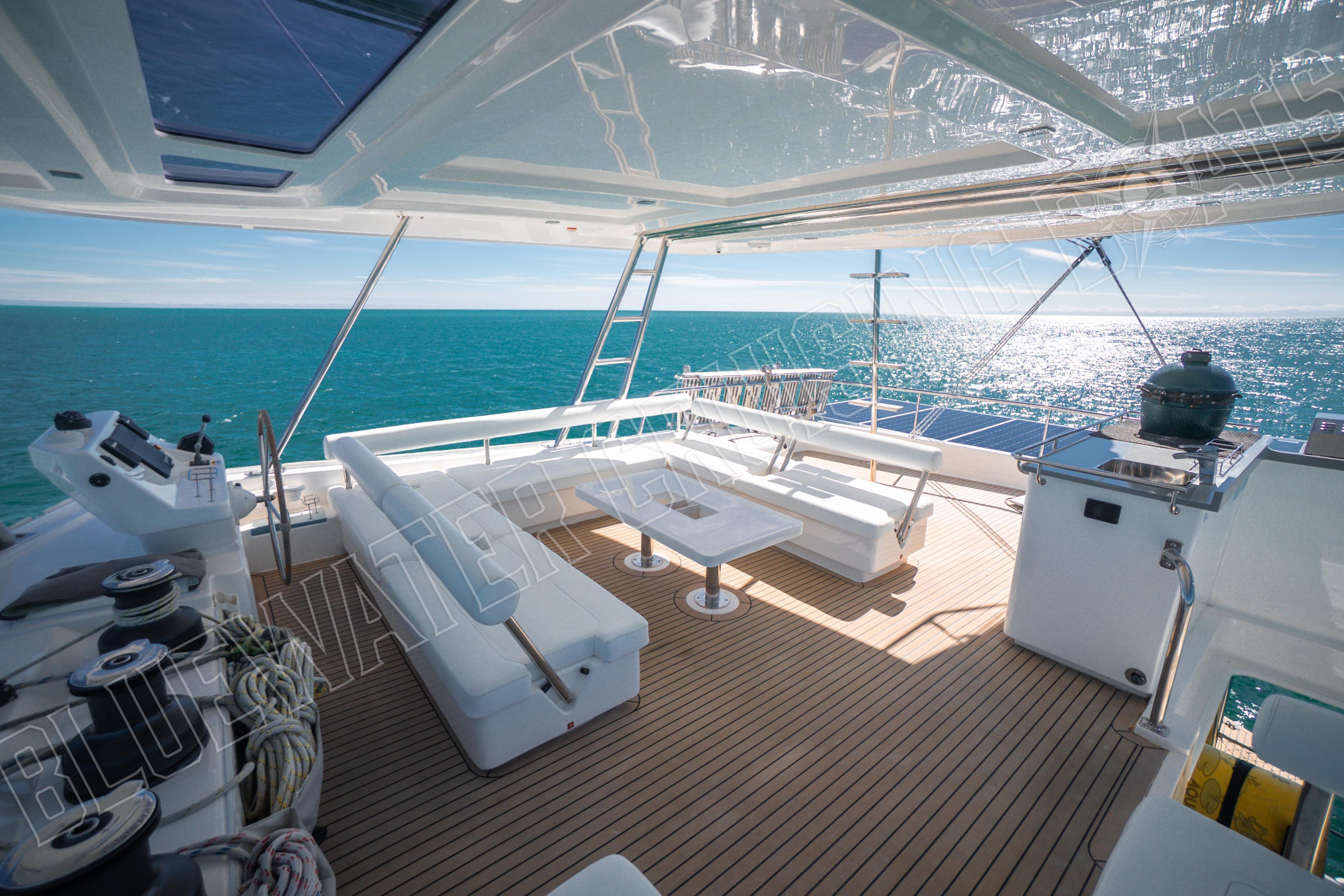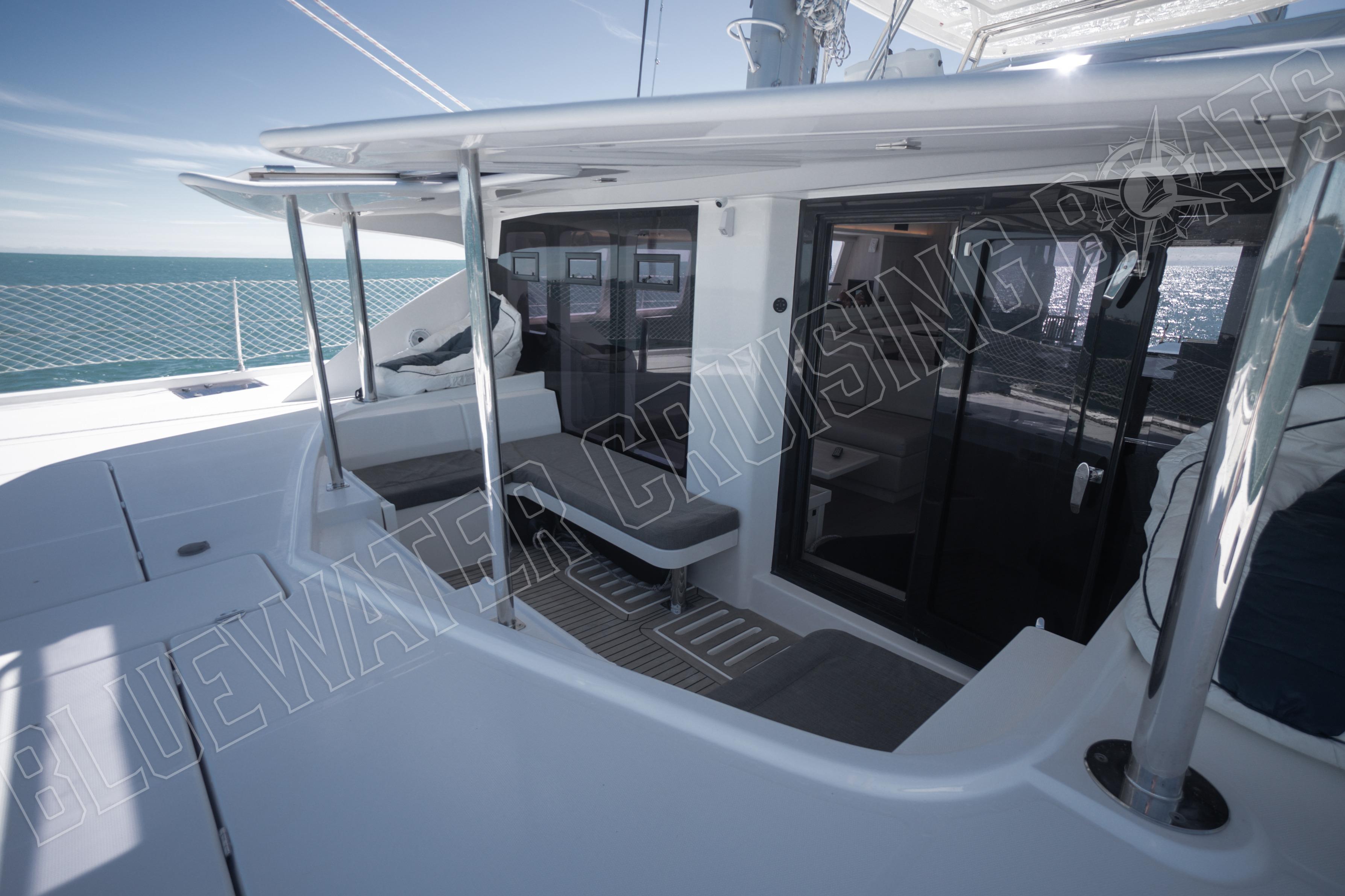 The cockpit is open and spacious, with the ability to move furniture where you please. Not only does it serve as a functional space, but it is also a social space that connects directly to the saloon via a large glass sliding door. With 4 shallow storage lockers beneath the cockpit in the lazarettes, there is even more space for toys and gear aboard.